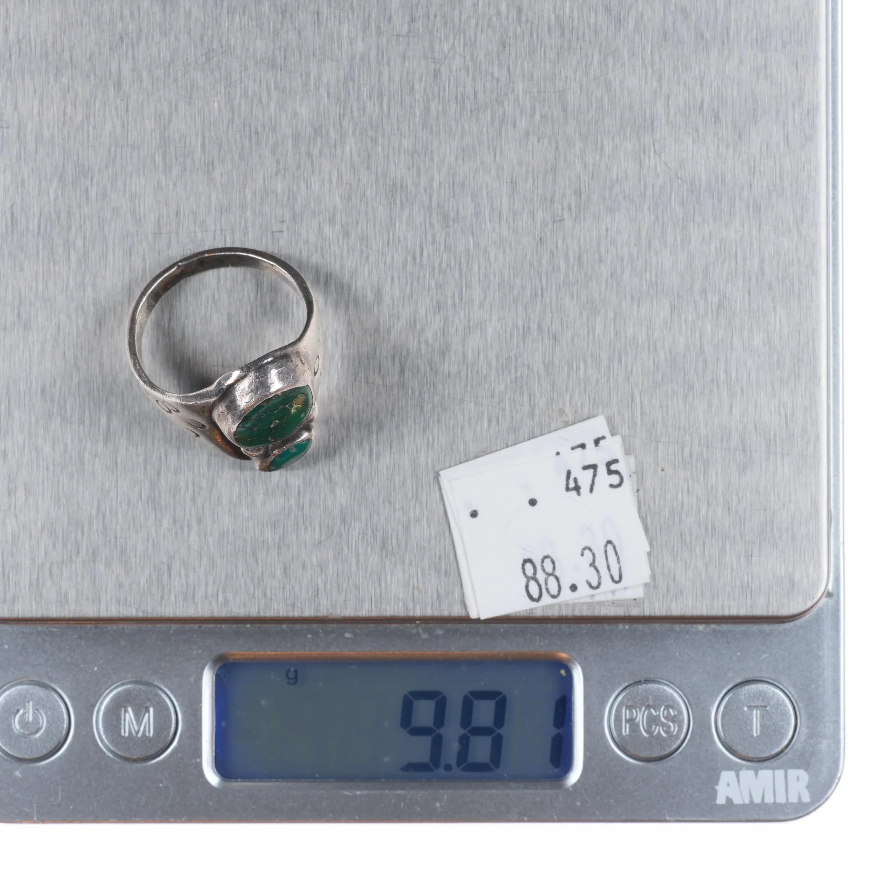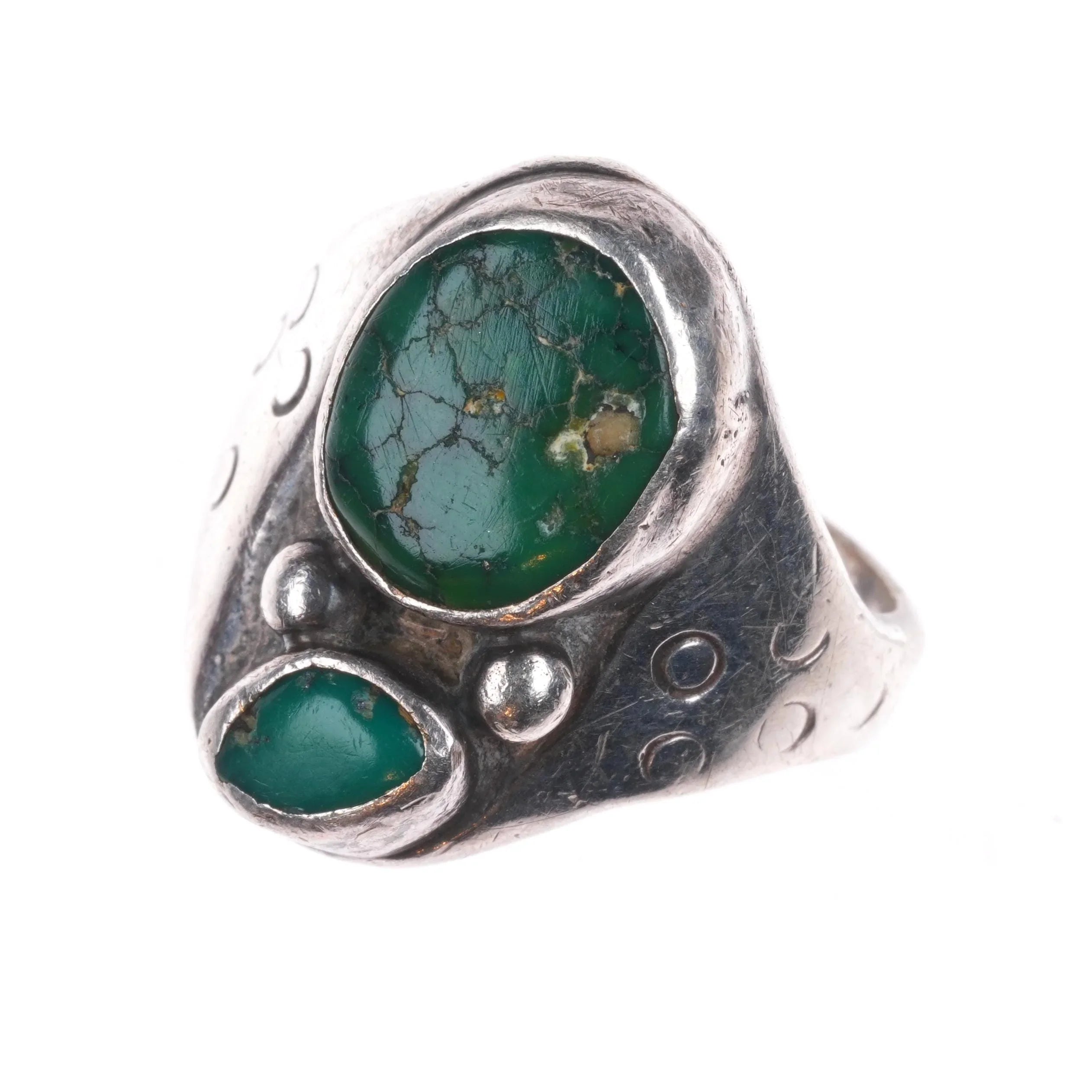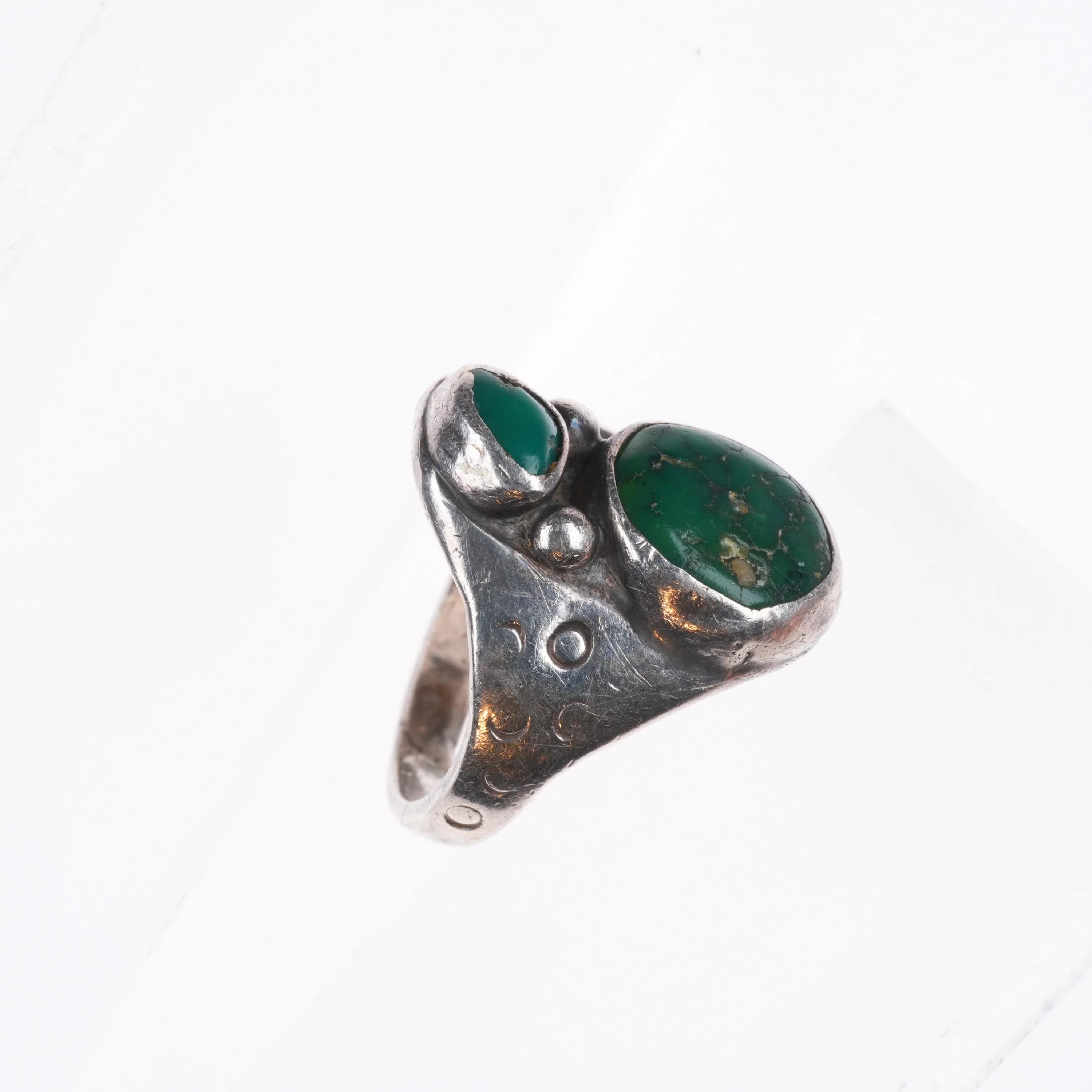 sz9 Vintage Navajo sterling silver ring with green turquoise