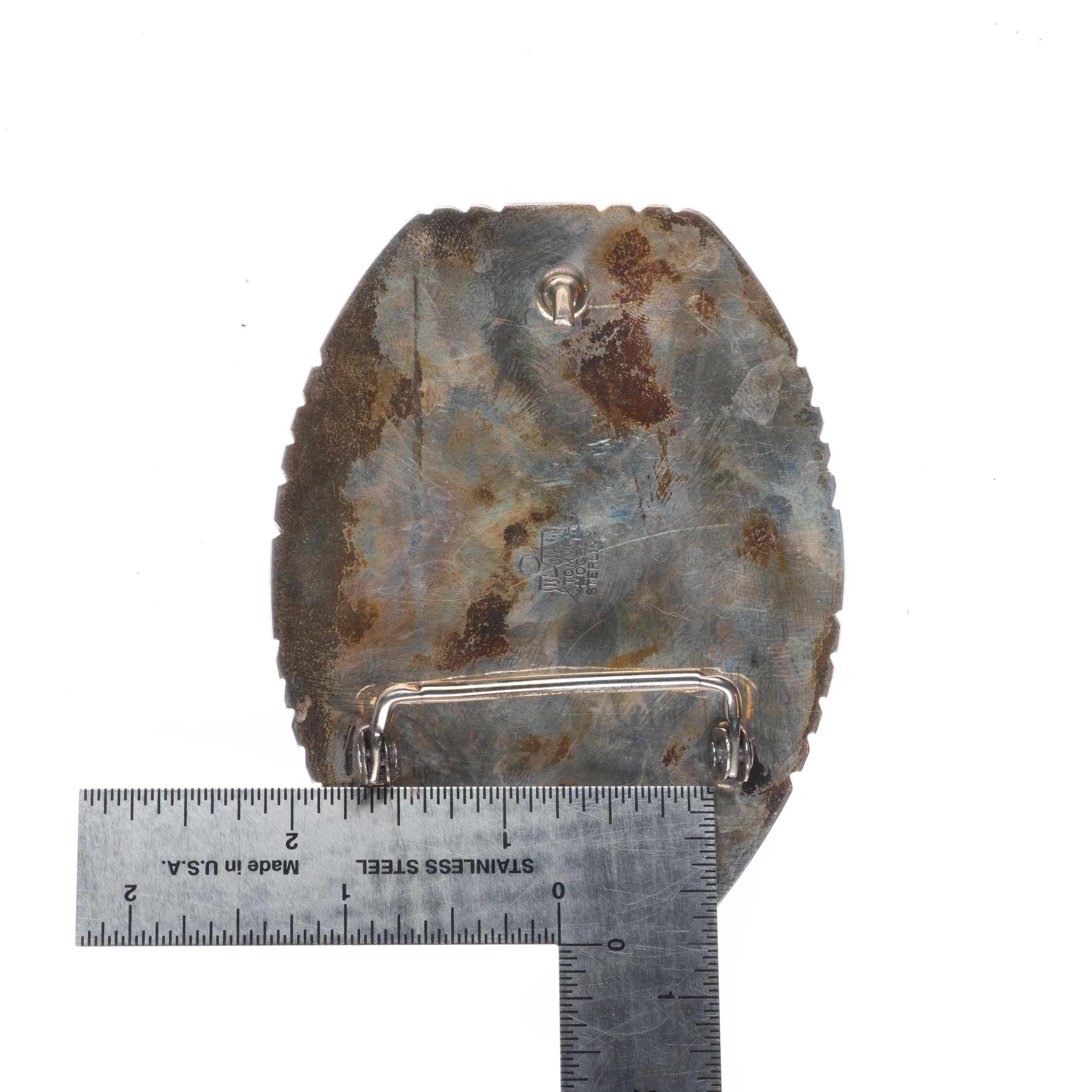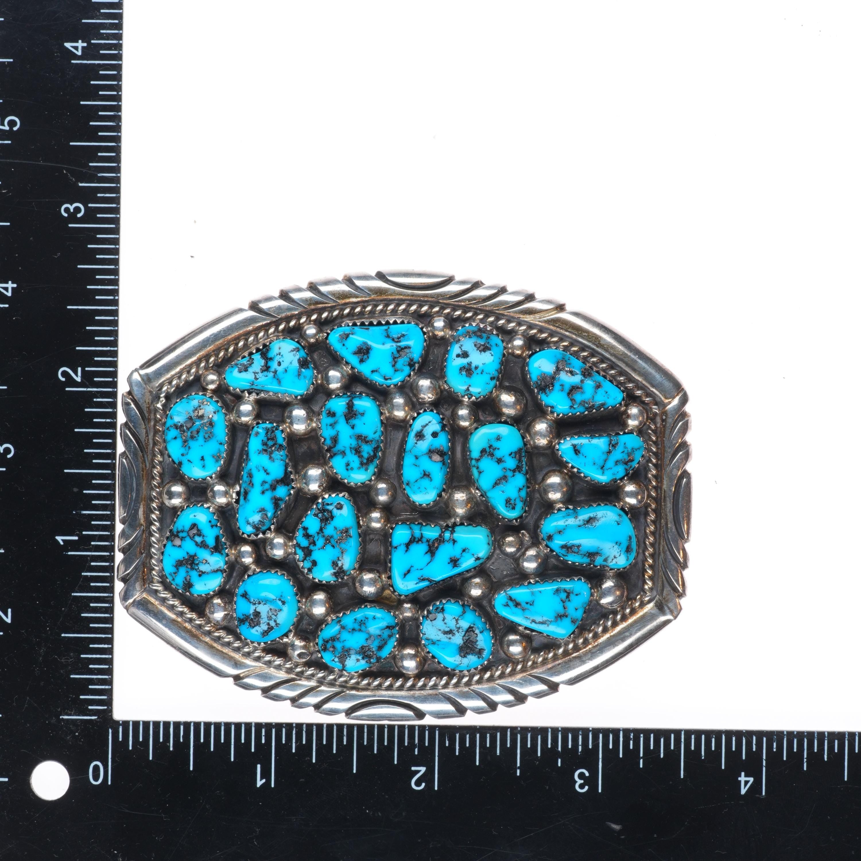 Tommy Moore Navajo sterling silver Kingman turquoise cluster belt buckle