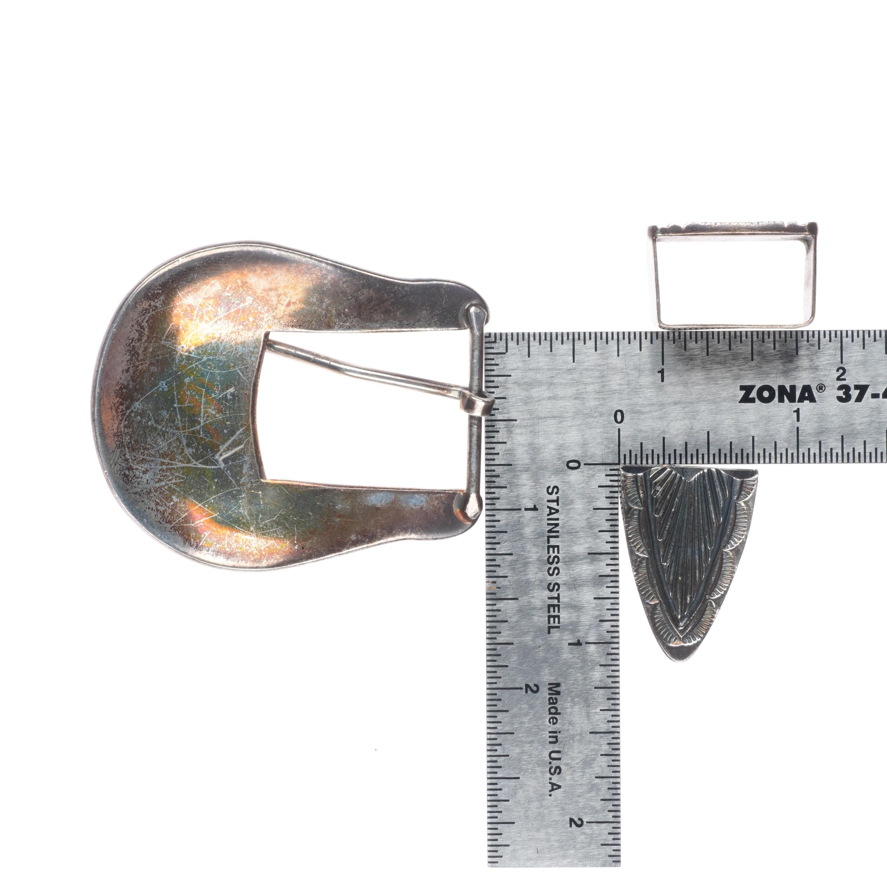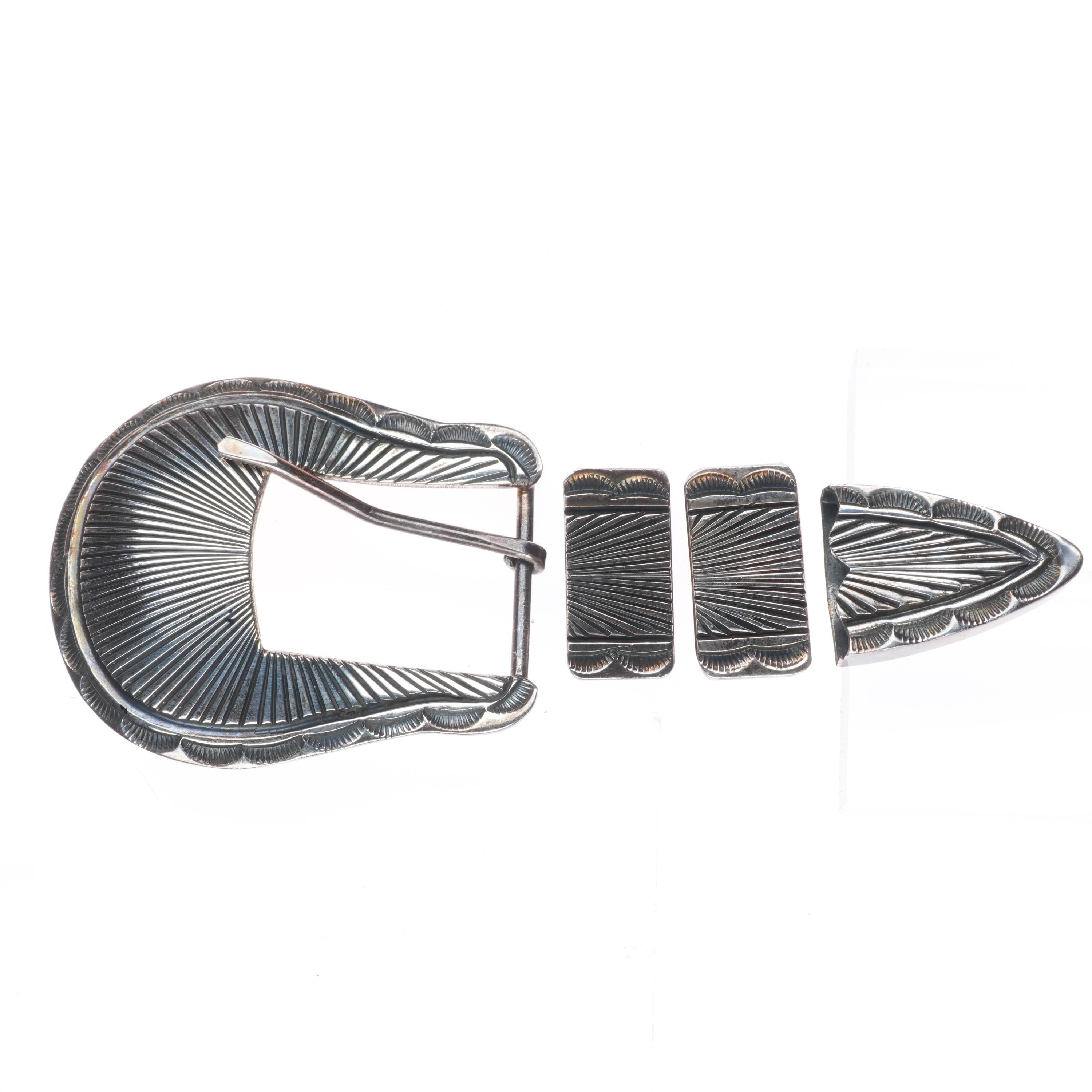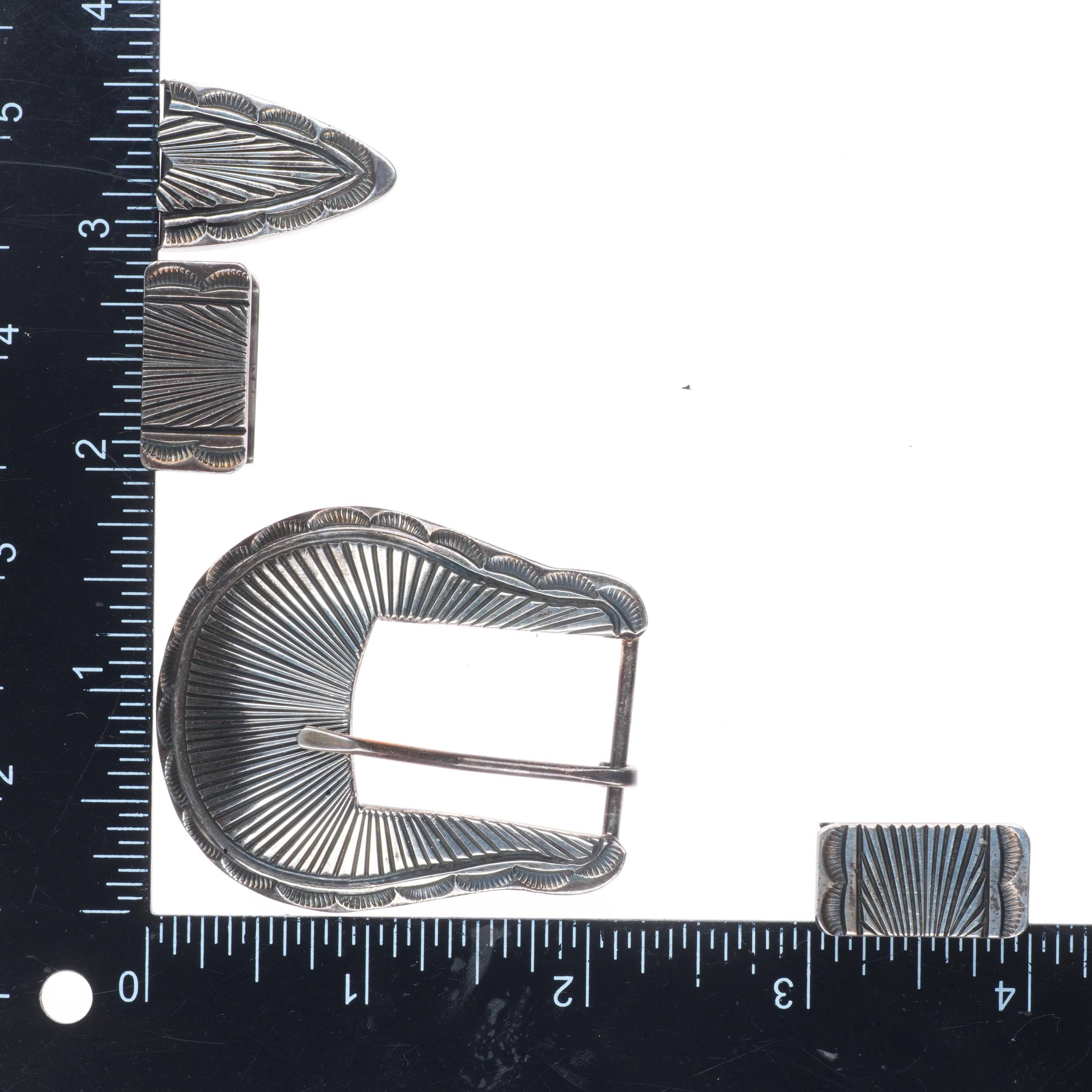 Uncle Sam W Navajo sterling silver chiseled design 3/4" ranger belt buckle set. Tested and guaranteed solid sterling silver with weight and measurements in pictures. Fully functional. All items will likely have some age appropriate/expected wear, the older they are the more wear they should have. Circa last quarter of the 20th century..
