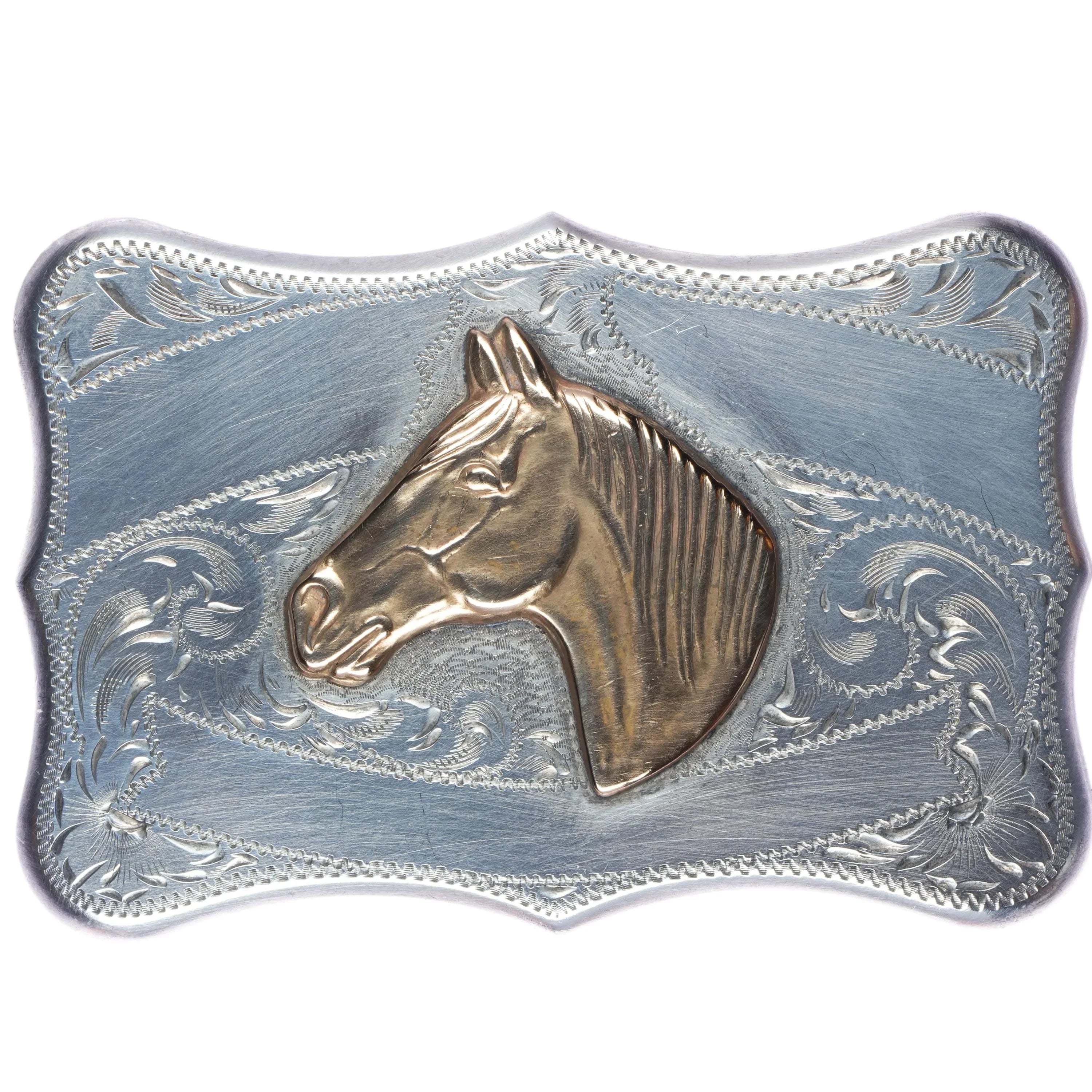 Vintage Diablo Sterling hand engraved horse head belt buckle