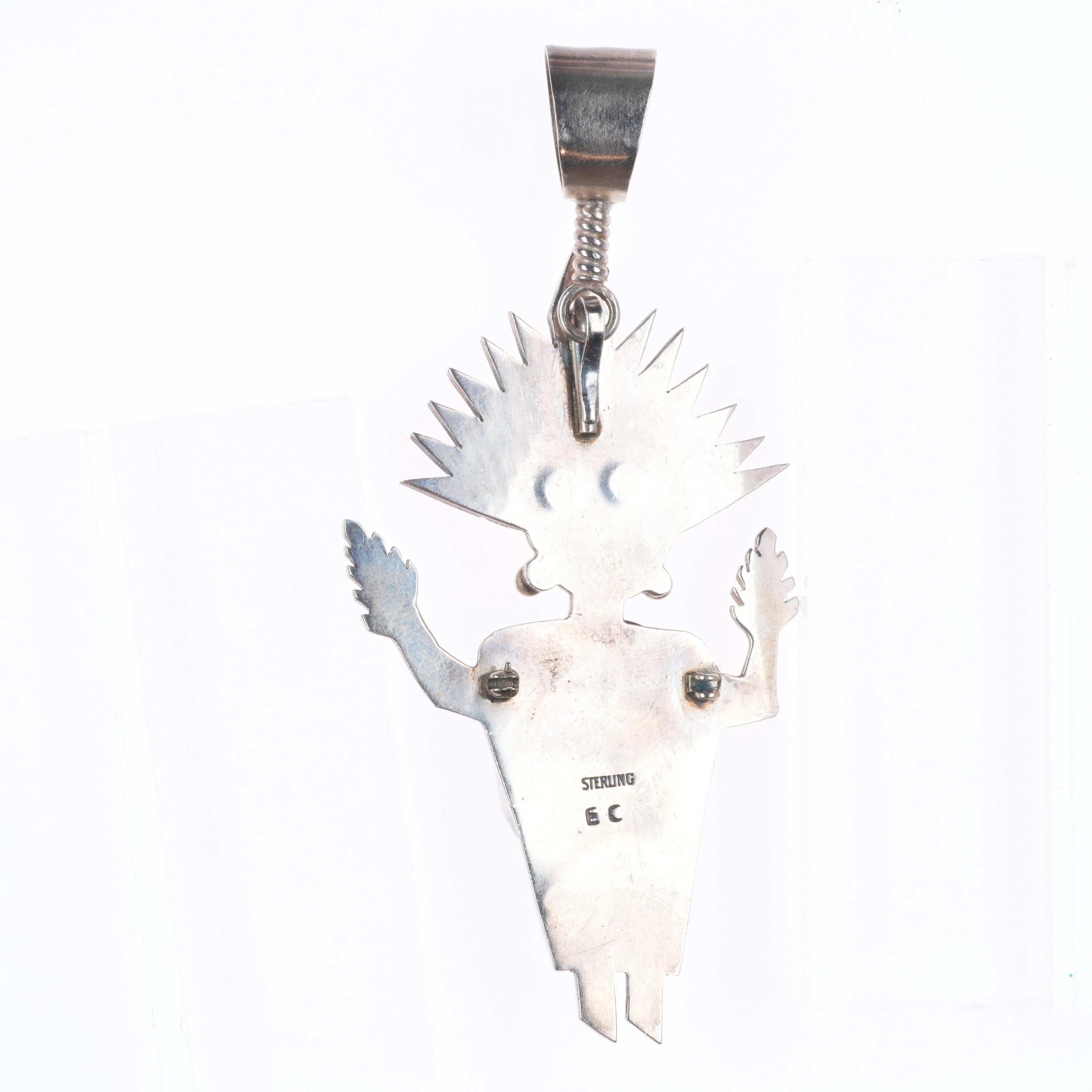 Vintage EC Navajo sterling silver kachina pendant with high grade turquoise. Pin removed from back, I could cut the hardware that holds the pin flush upon request, circa last quarter of the 20th century. Selling the pendant shown in good condition with measurements in pictures.