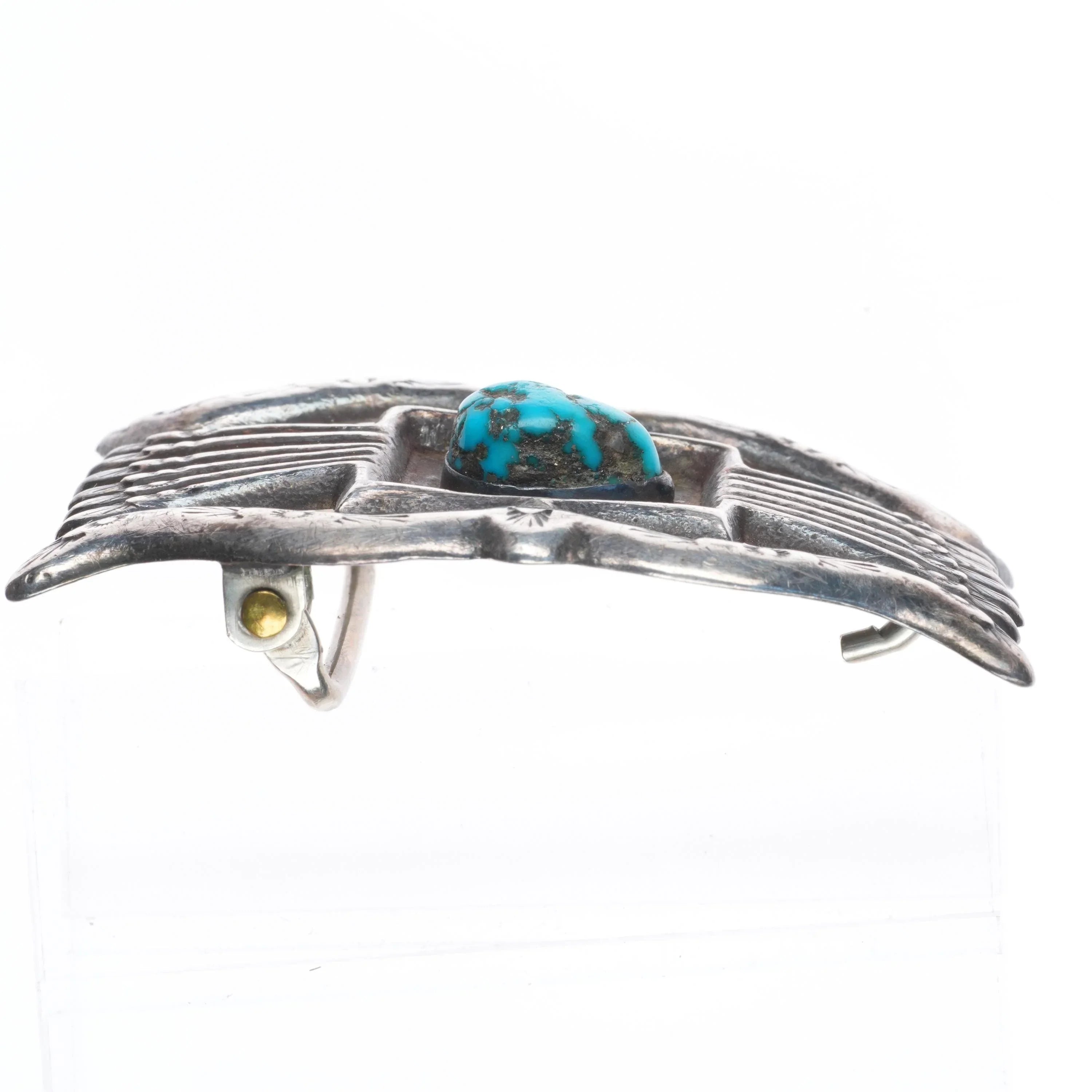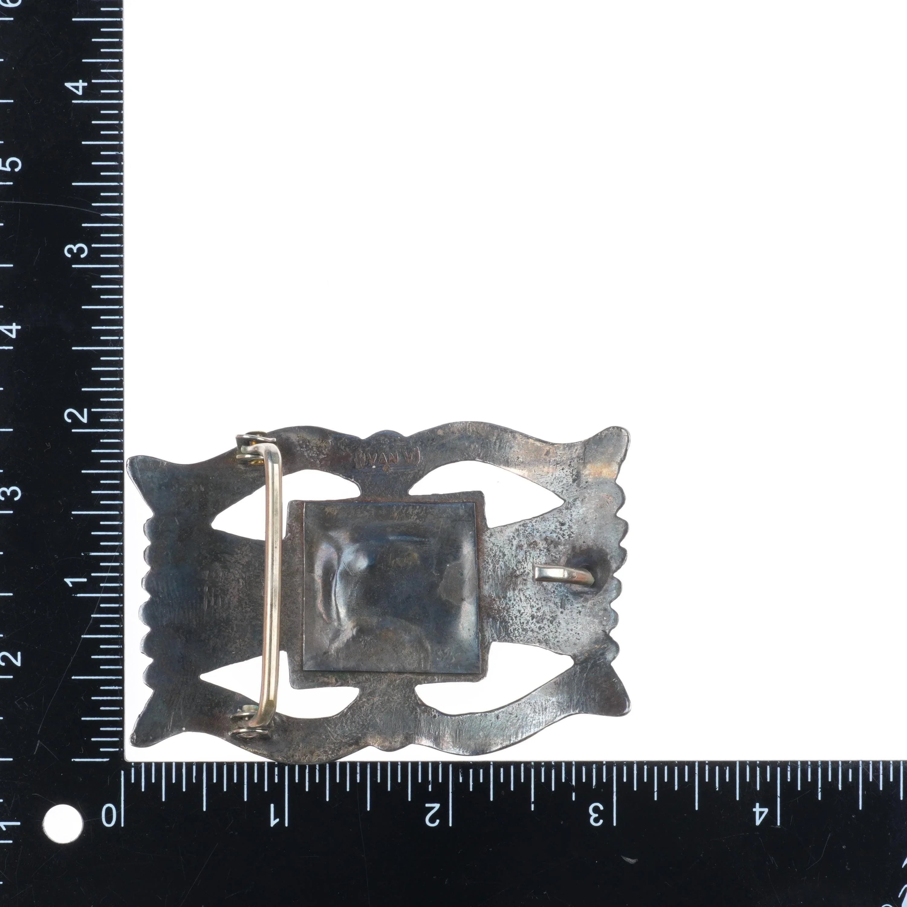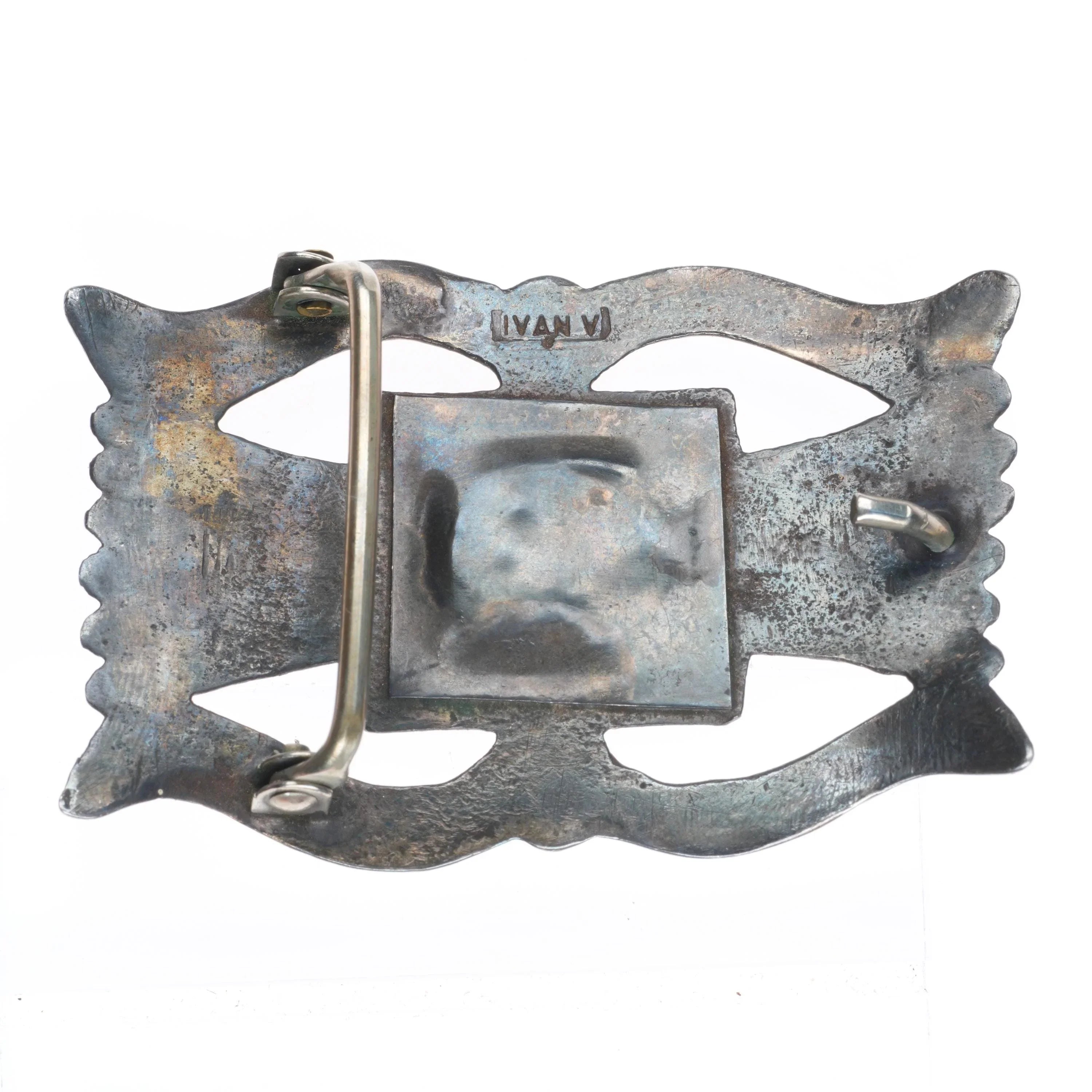 Vintage Ivan V Navajo cast sterling silver belt buckle nice turquoise stone. Fits up to a 1.5" belt. Tested and guaranteed solid sterling silver with weight and measurements in pictures. Fully functional, stone(s) are secure with no issues. All items will likely have some expected wear, the older they are the more wear they should have. circa third quarter of the 20th century.