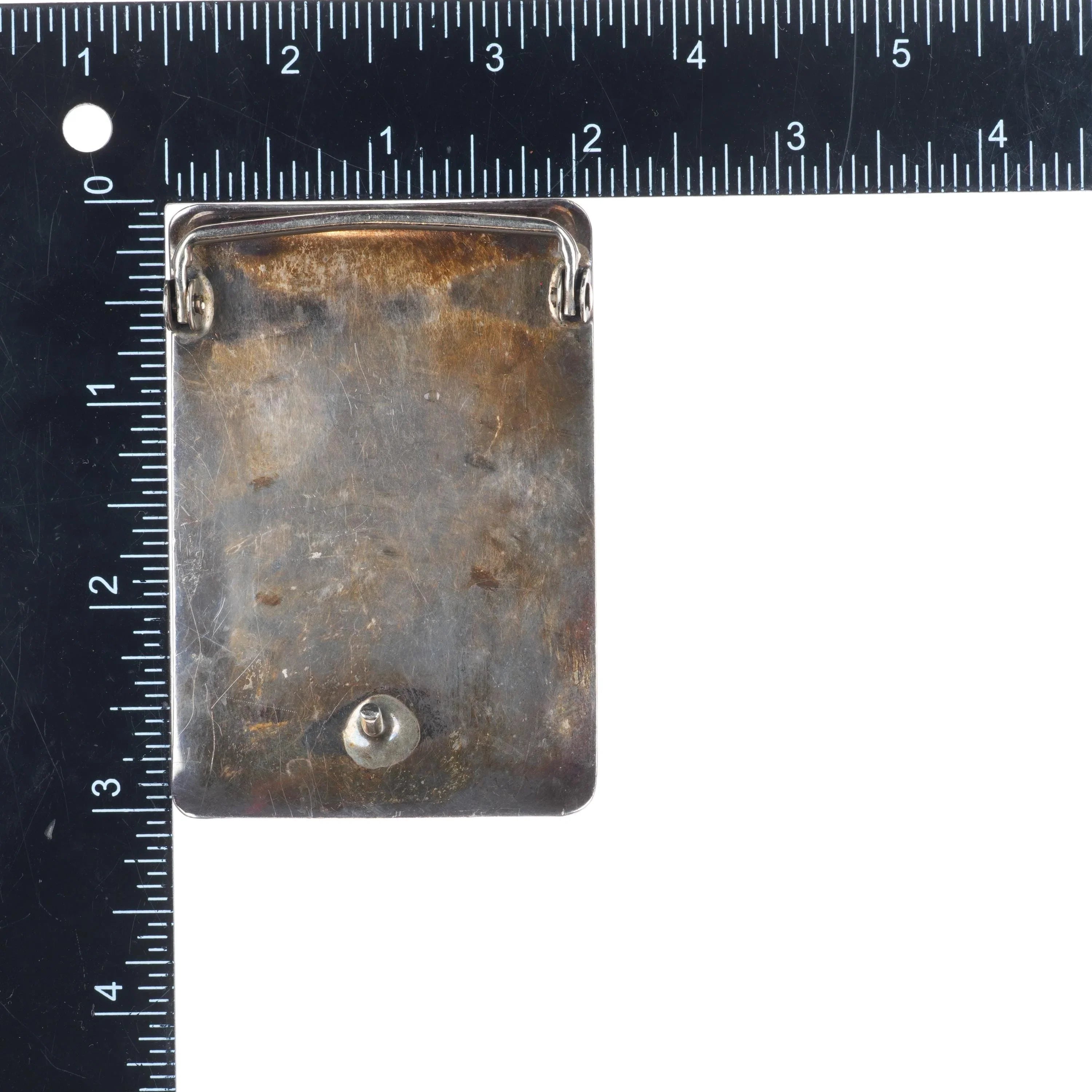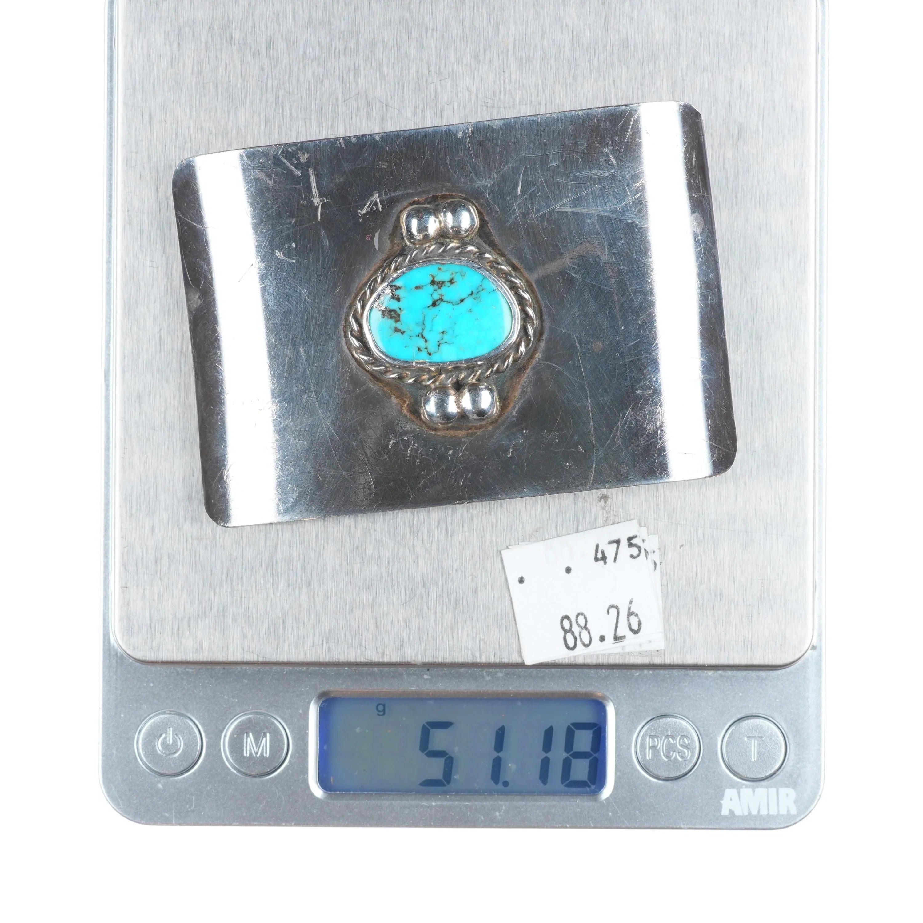 Vintage modernist sterling silver belt buckle with turquoise. Tested and guaranteed solid sterling silver, fits up to a 1.5" wide belt. Weight and measurements in pictures, circa third quarter of the 20th century.