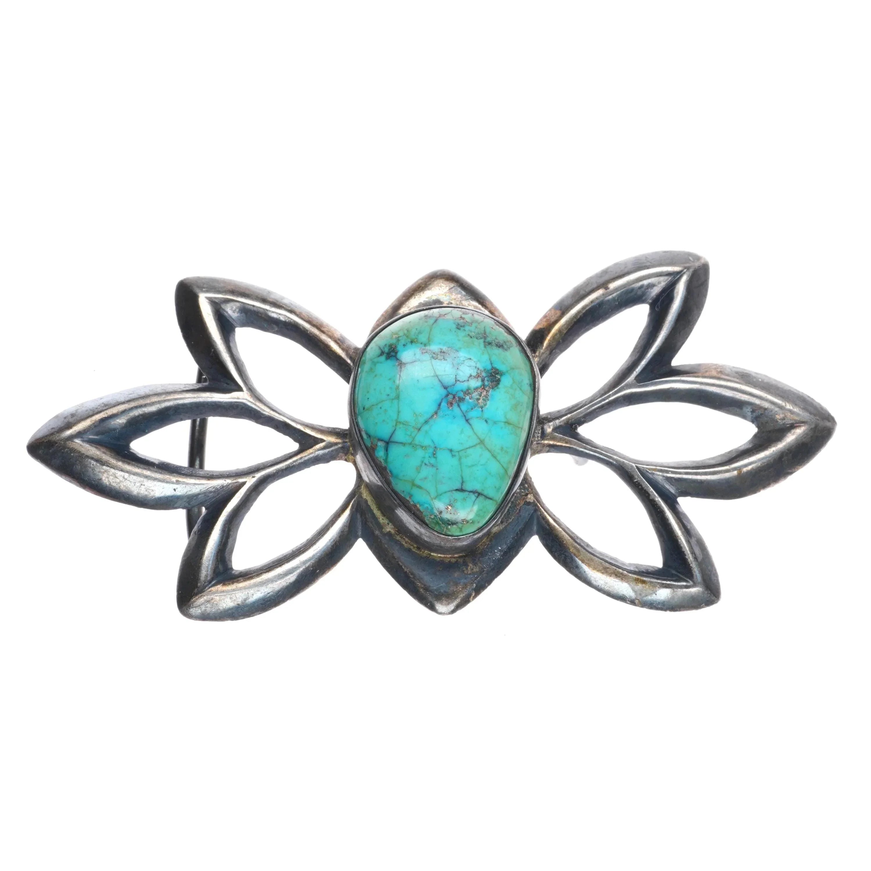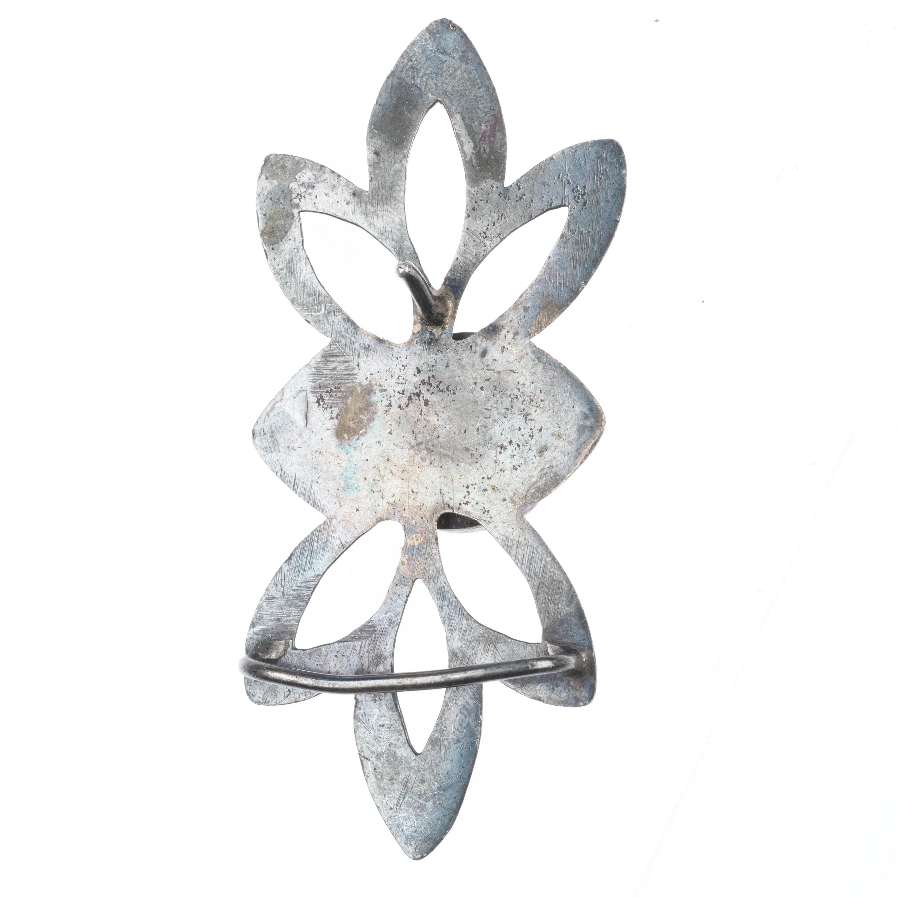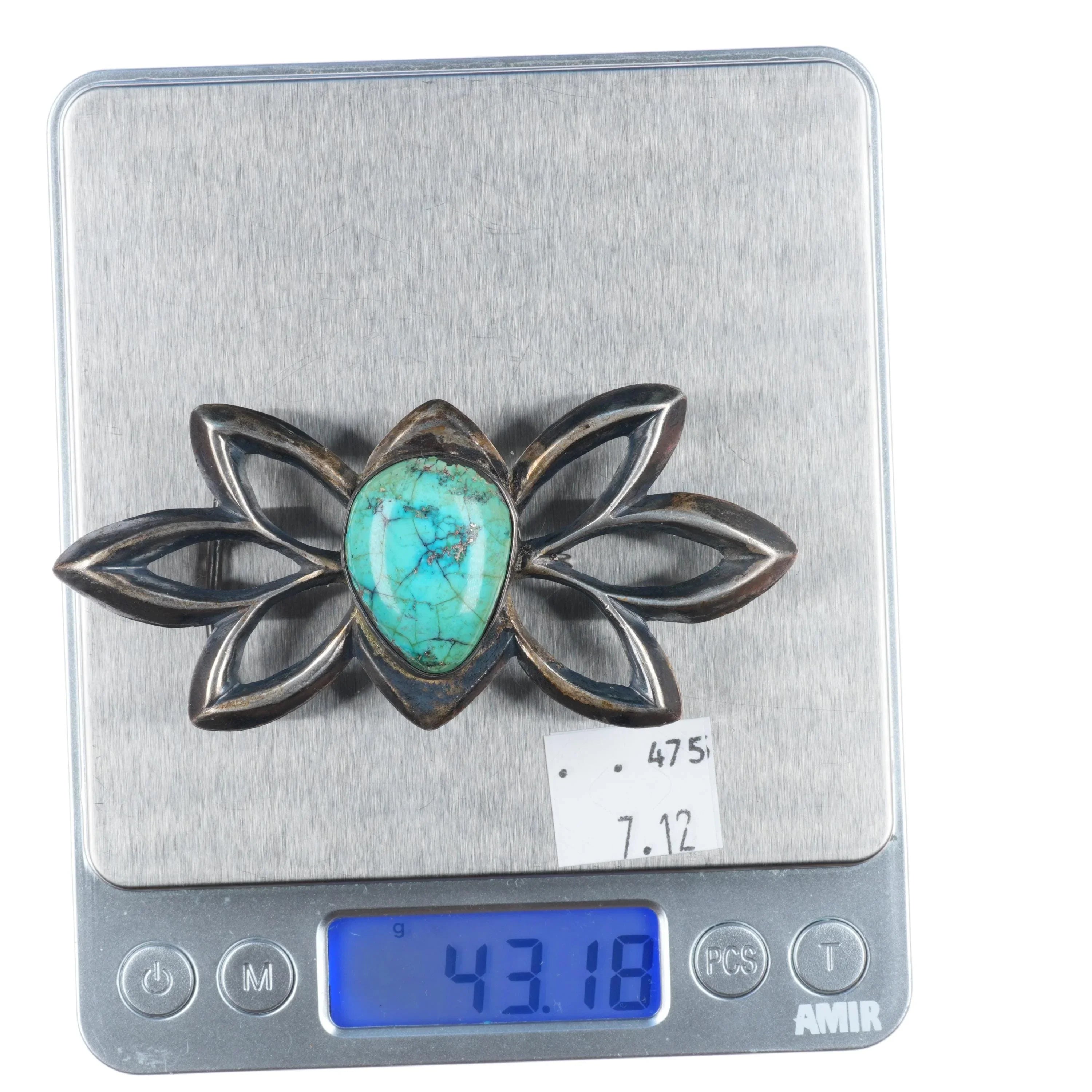 Vintage Navajo cast sterling silver belt buckle w/ nice center turquoise stone