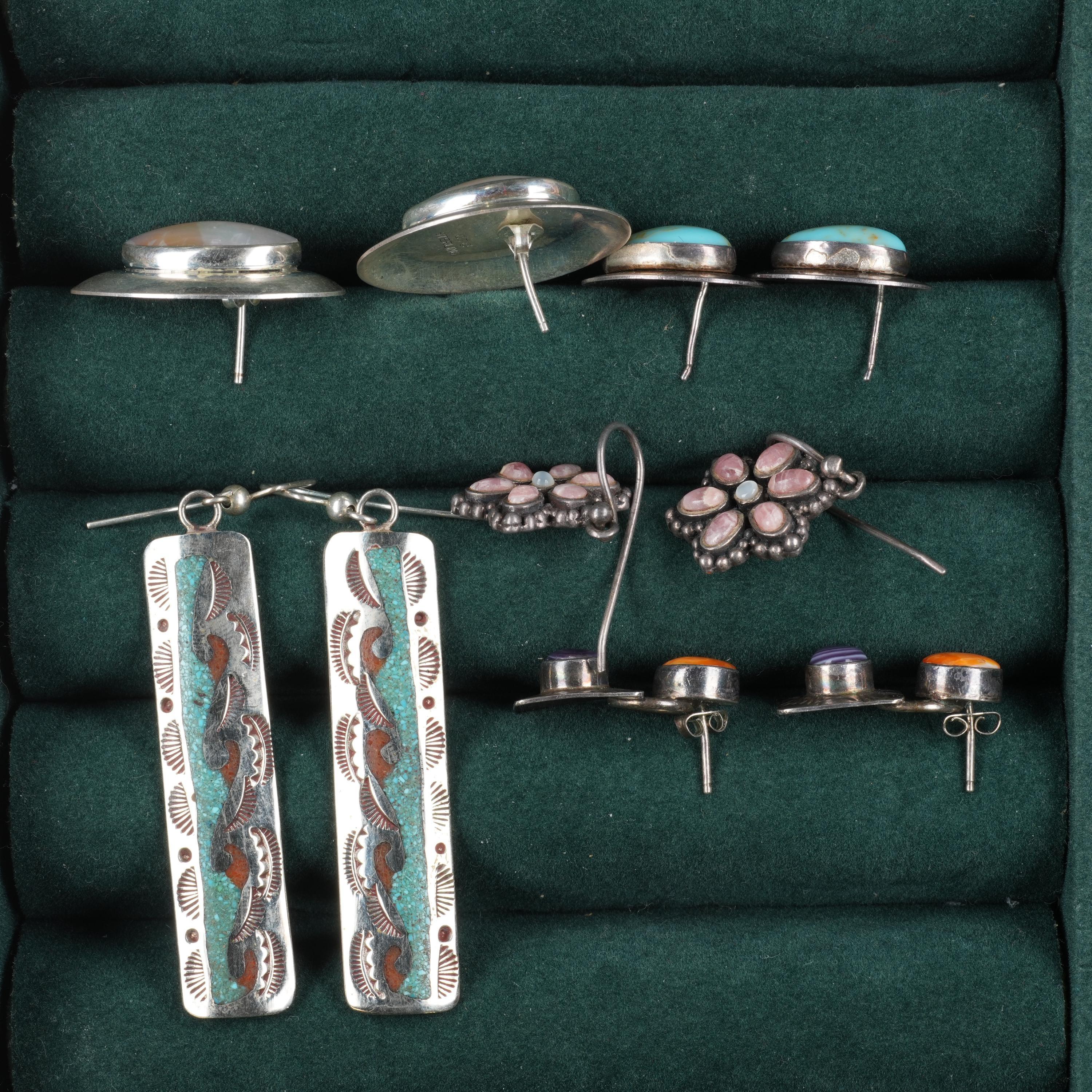 Vintage Navajo/Southwestern sterling silver multi-stone earrings collection lot