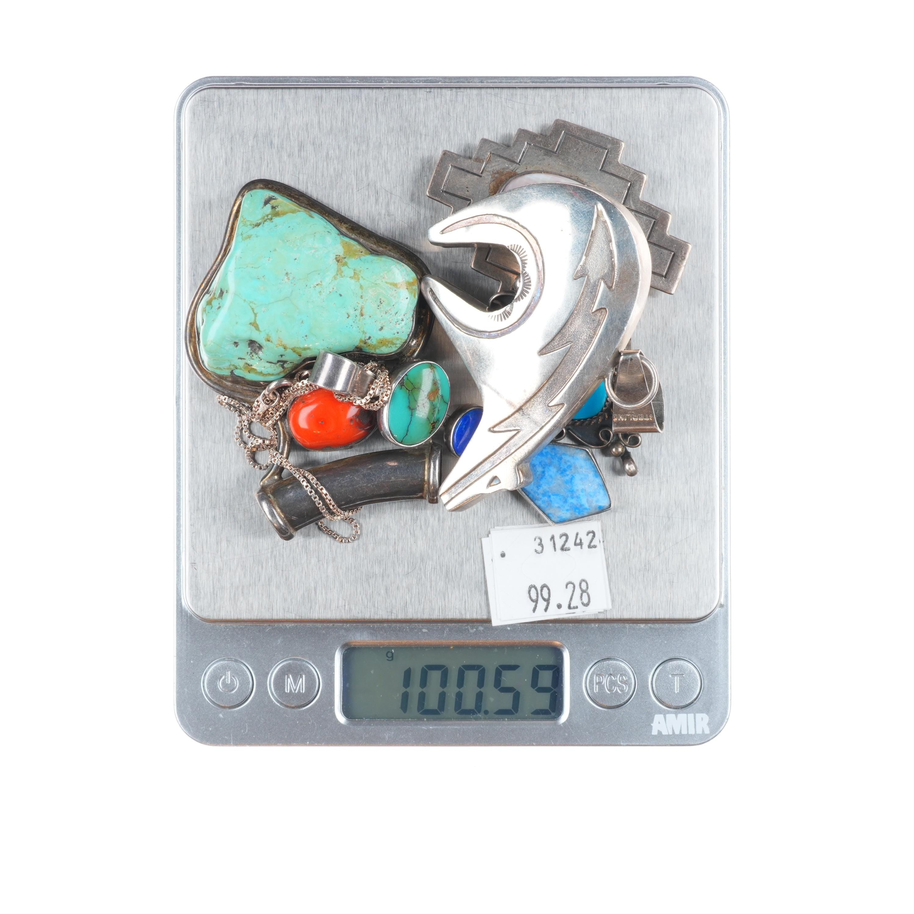 Vintage Navajo/southwestern sterling silver pendant collection lot turquoise