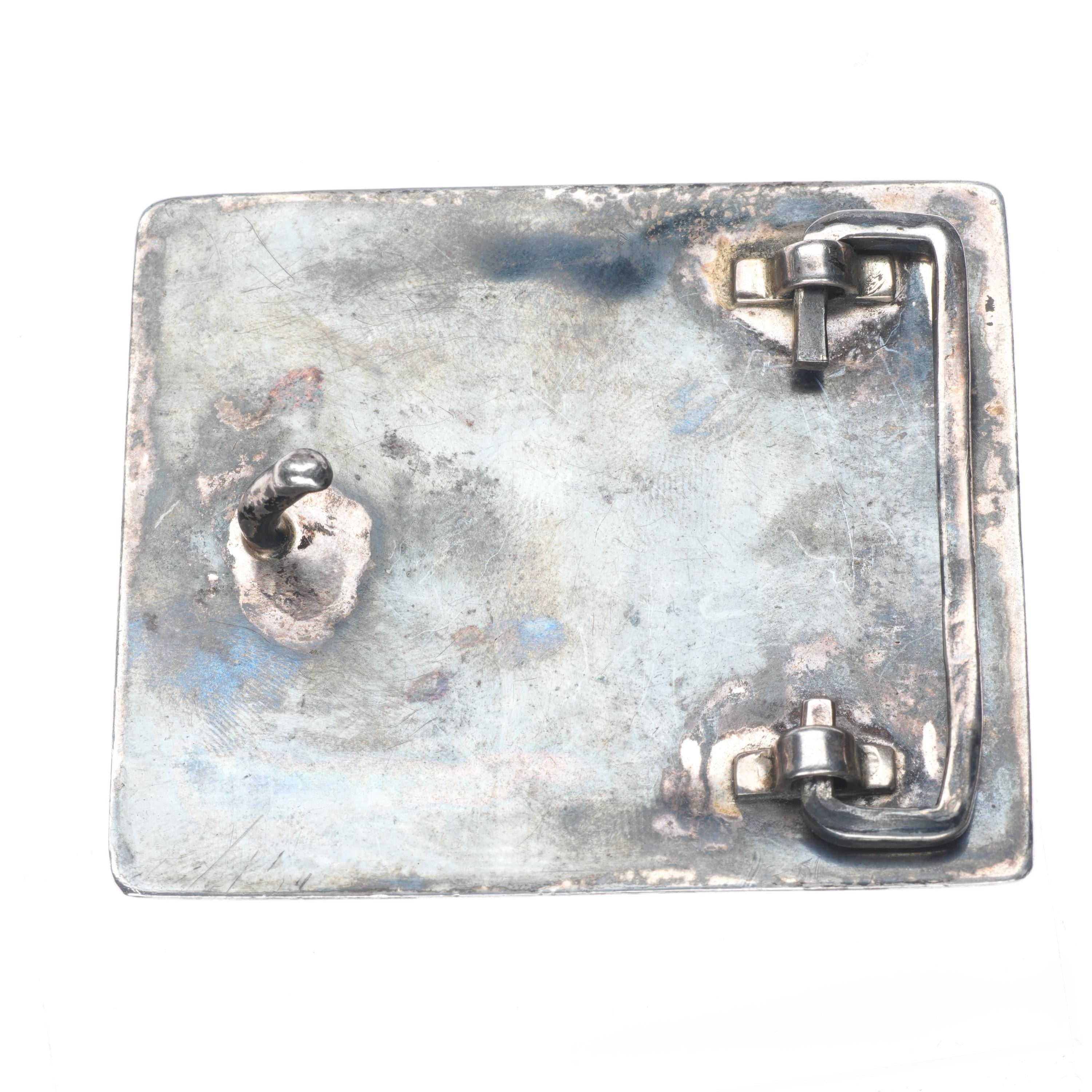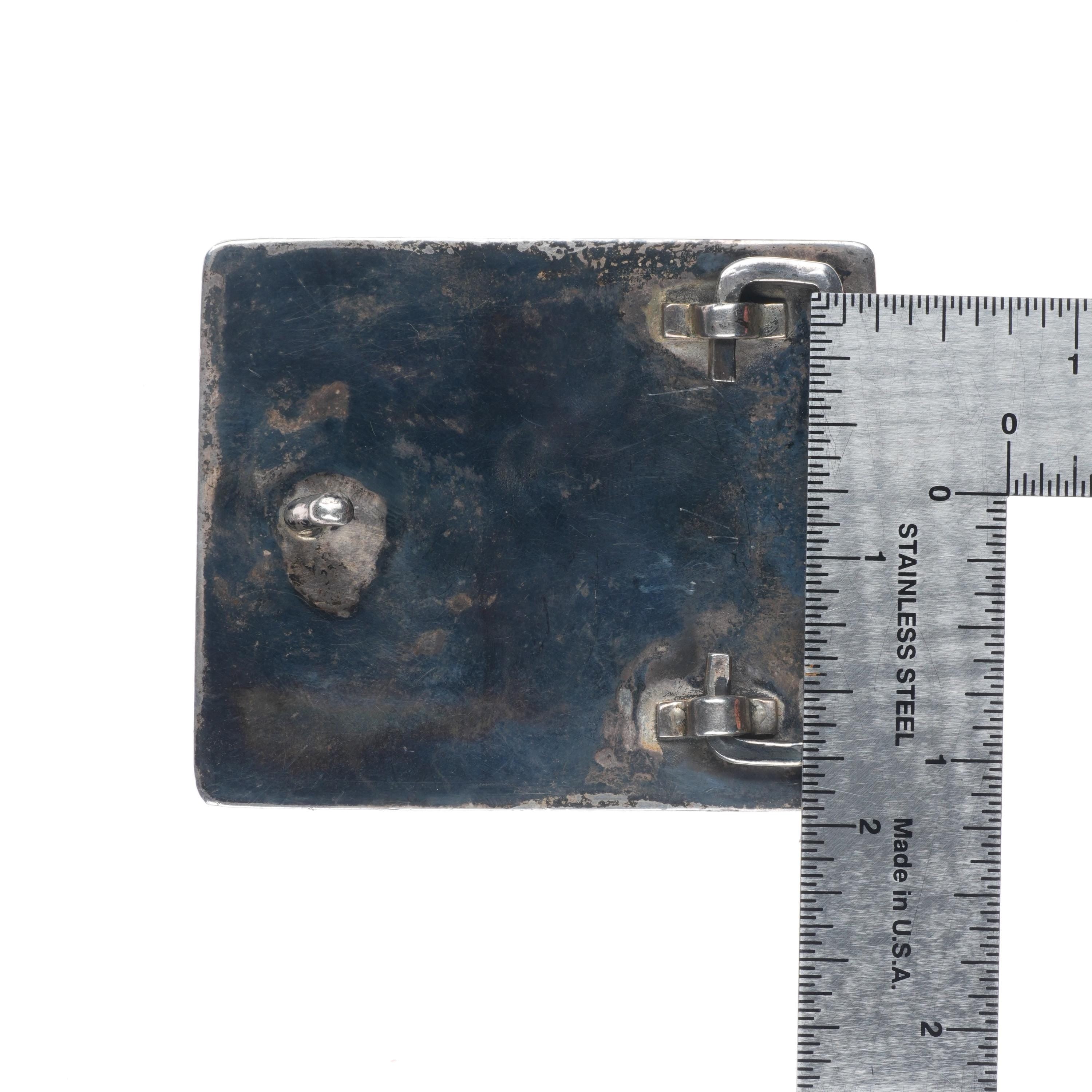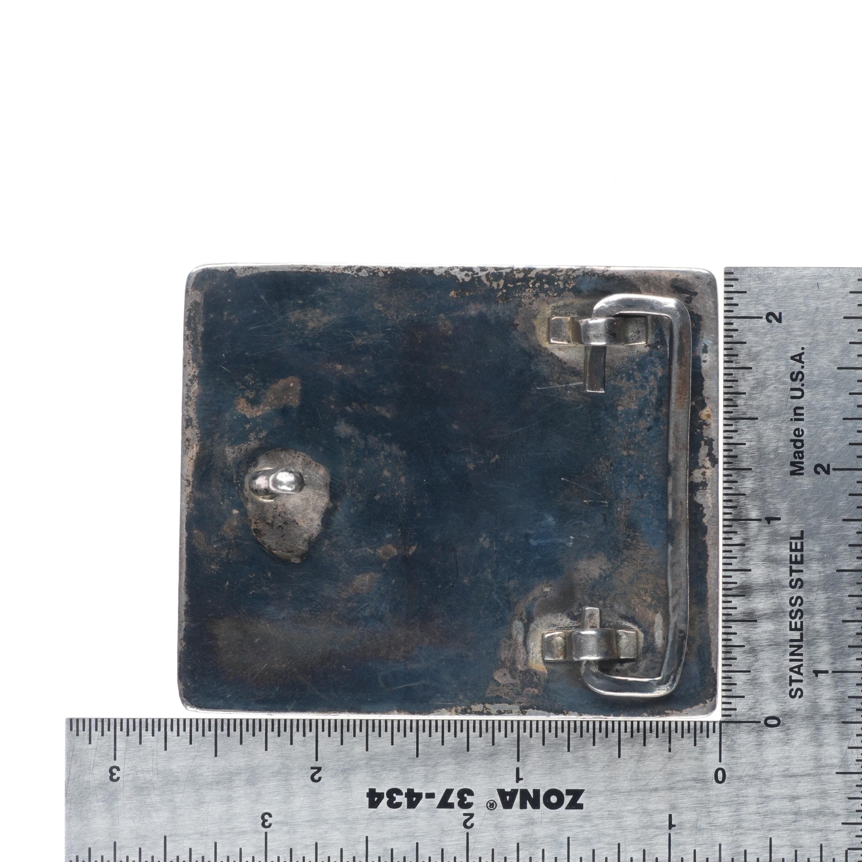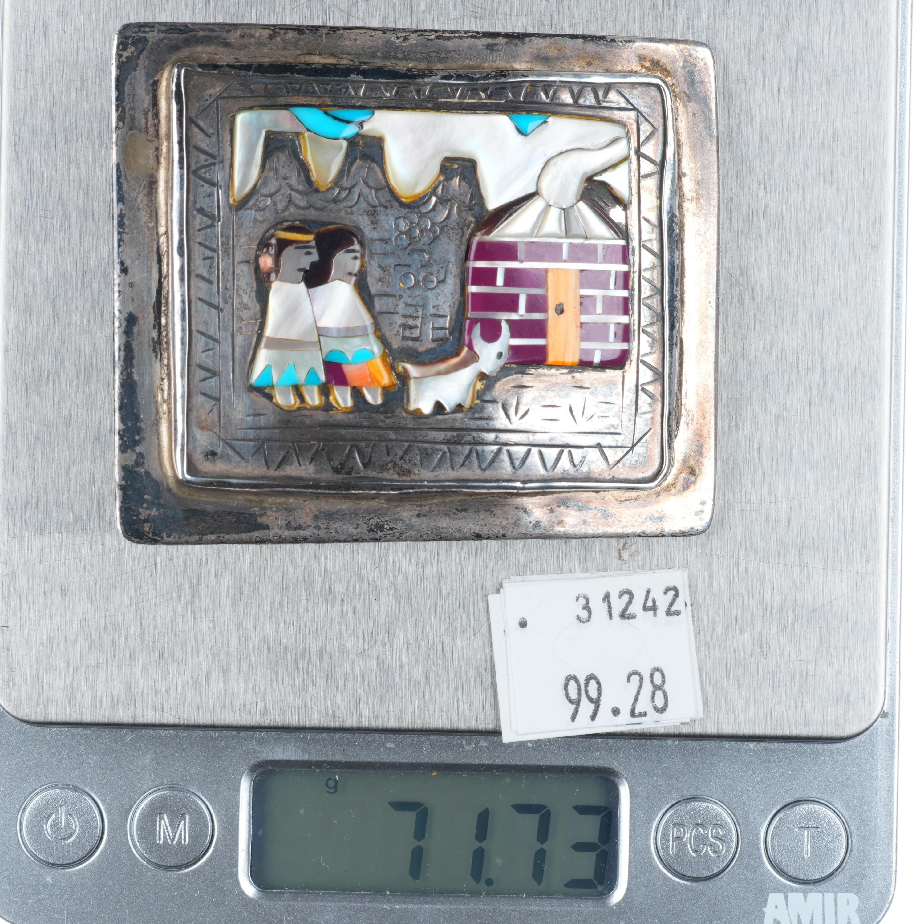 Vintage Navajo sterling inlay storyteller belt buckle shell/turquoise
