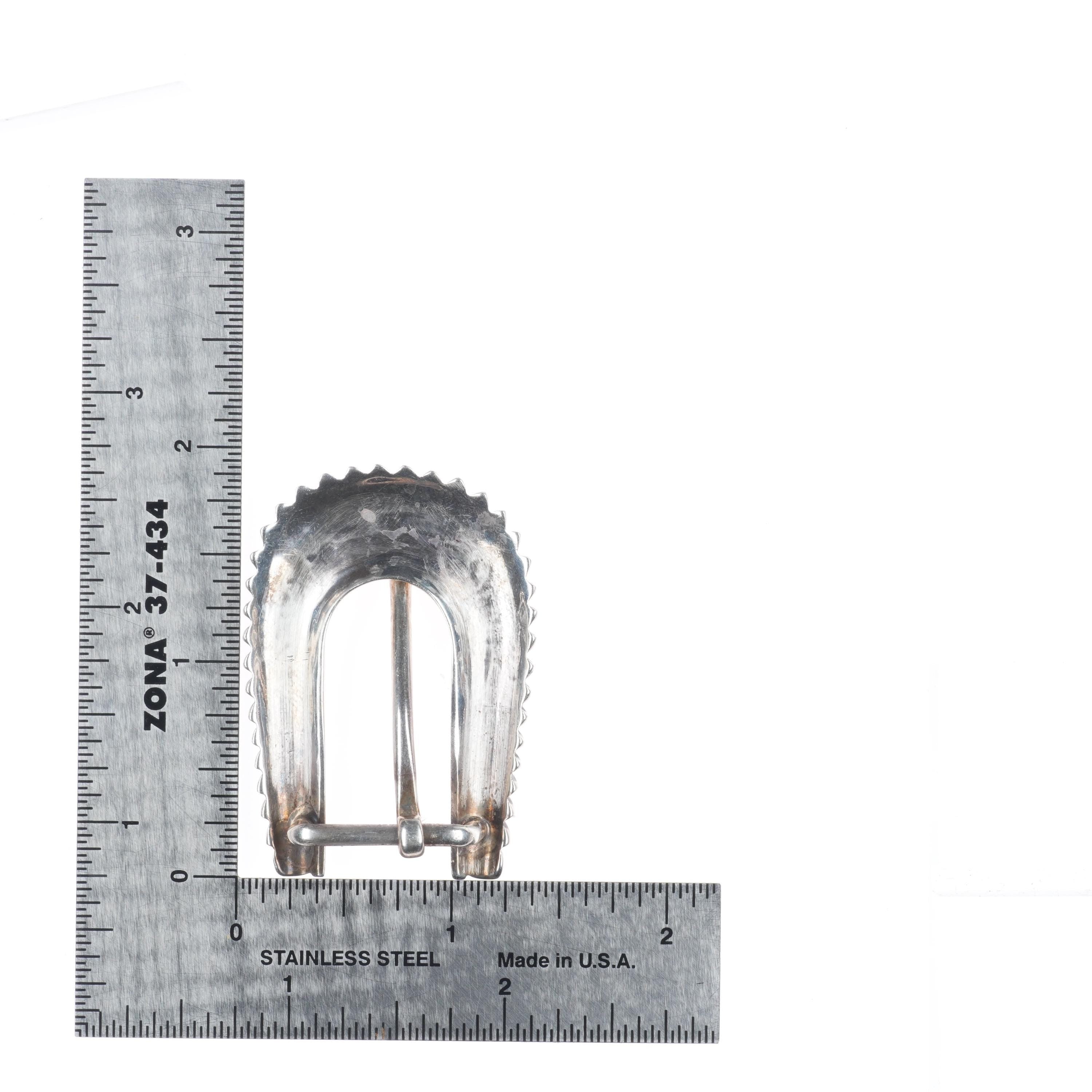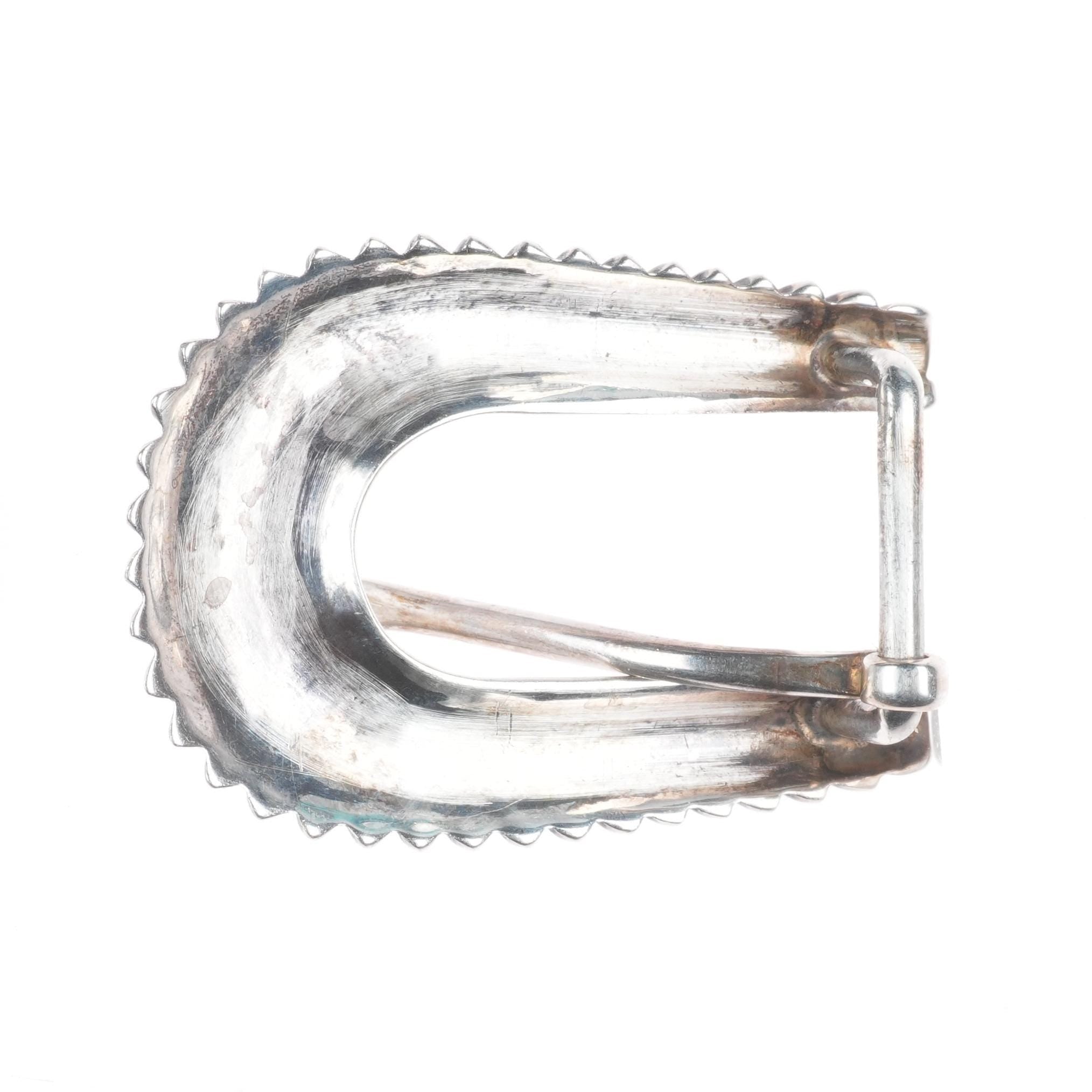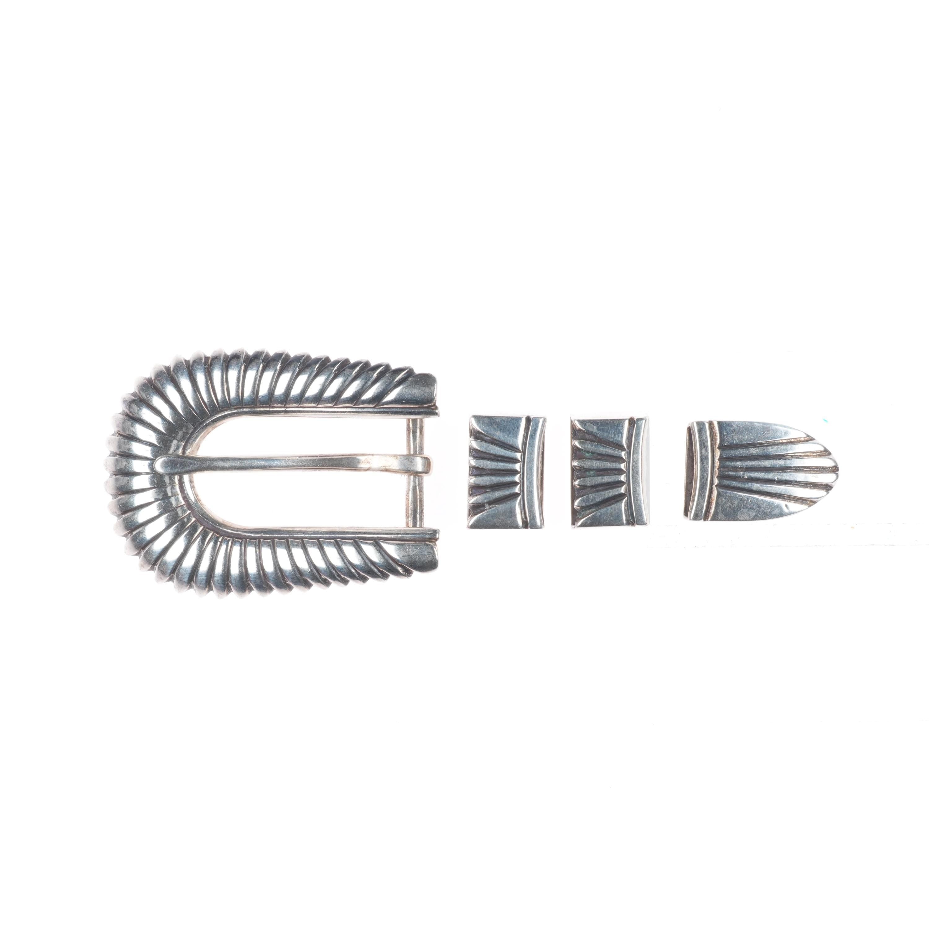 Vintage Navajo sterling silver chiseled design 5/8" ranger belt buckle set