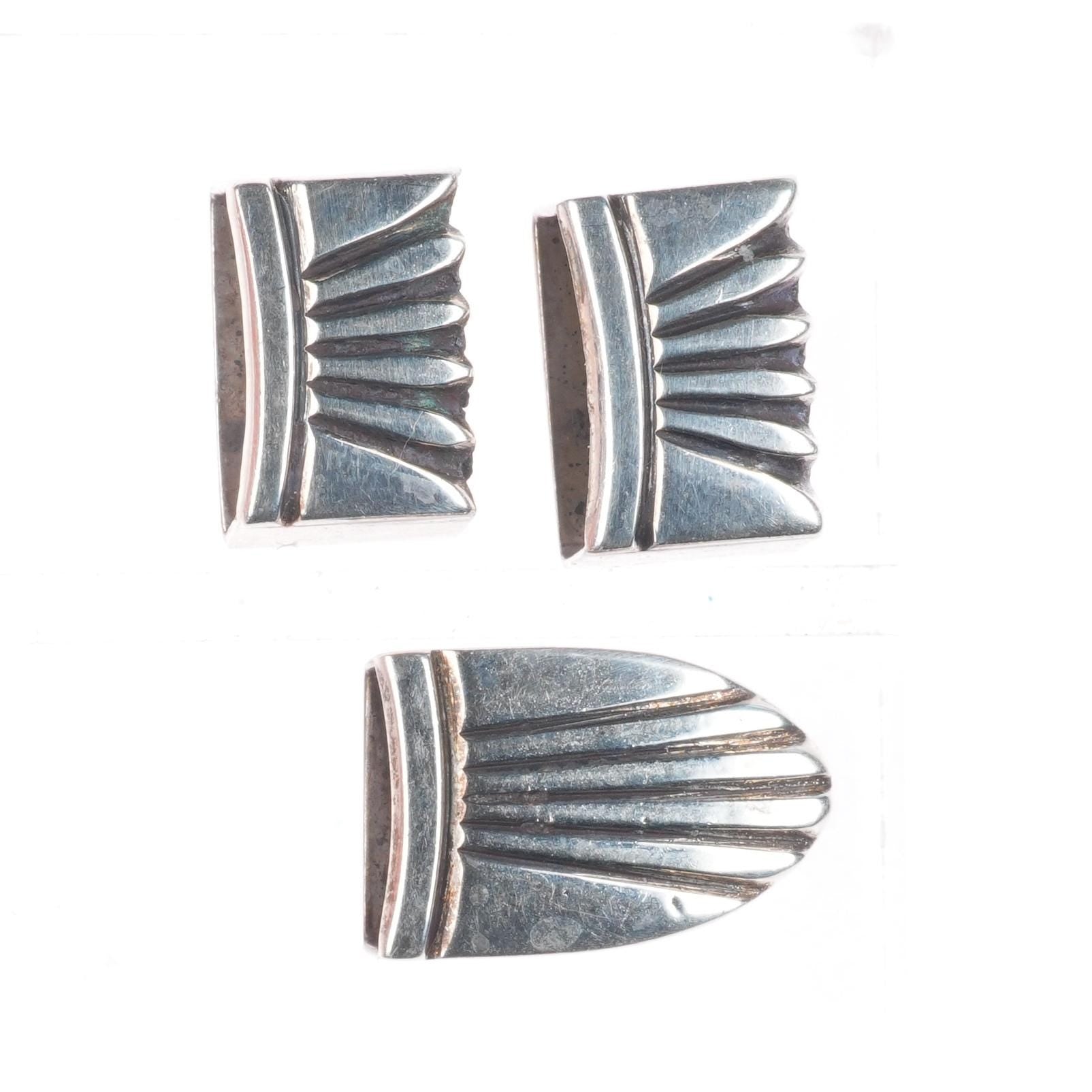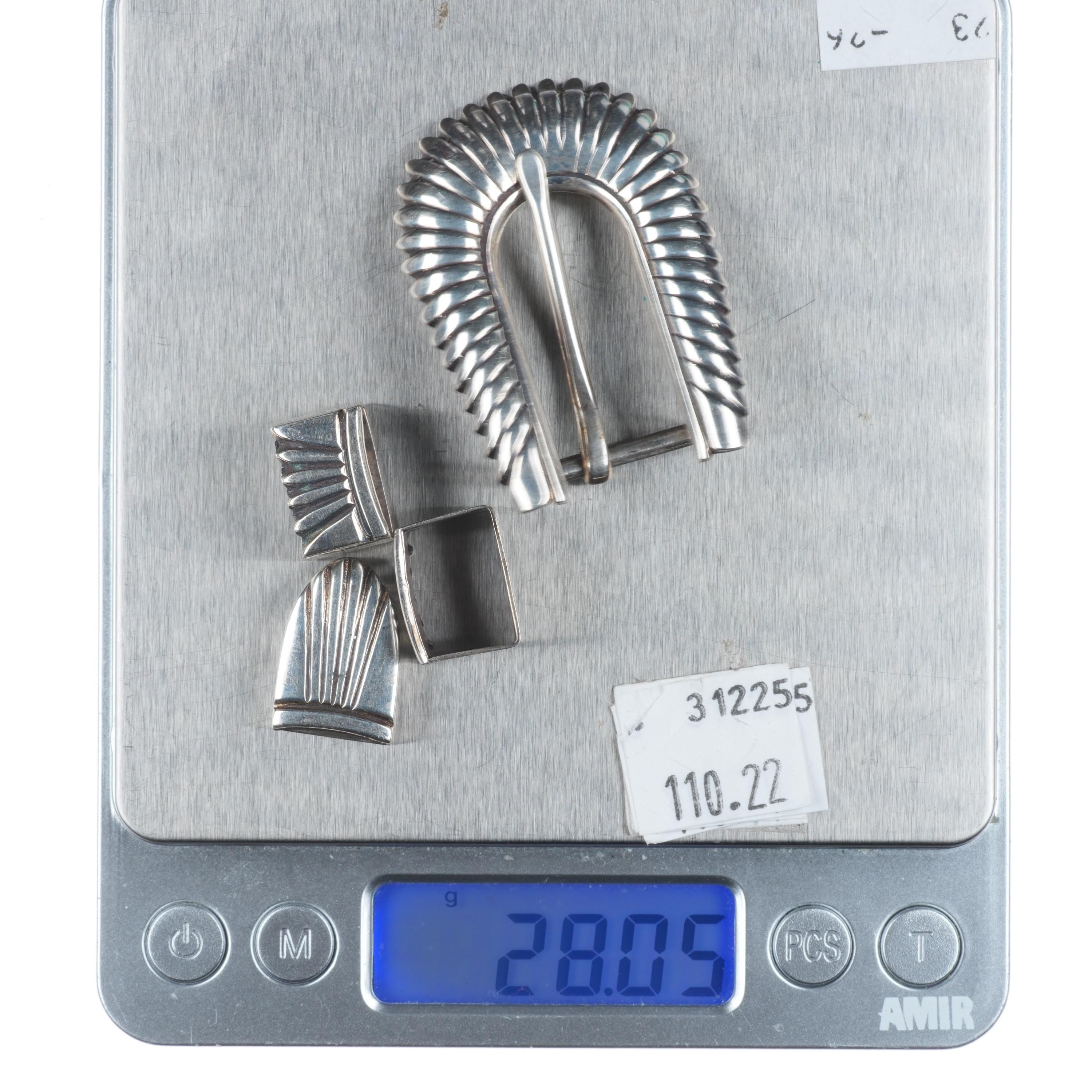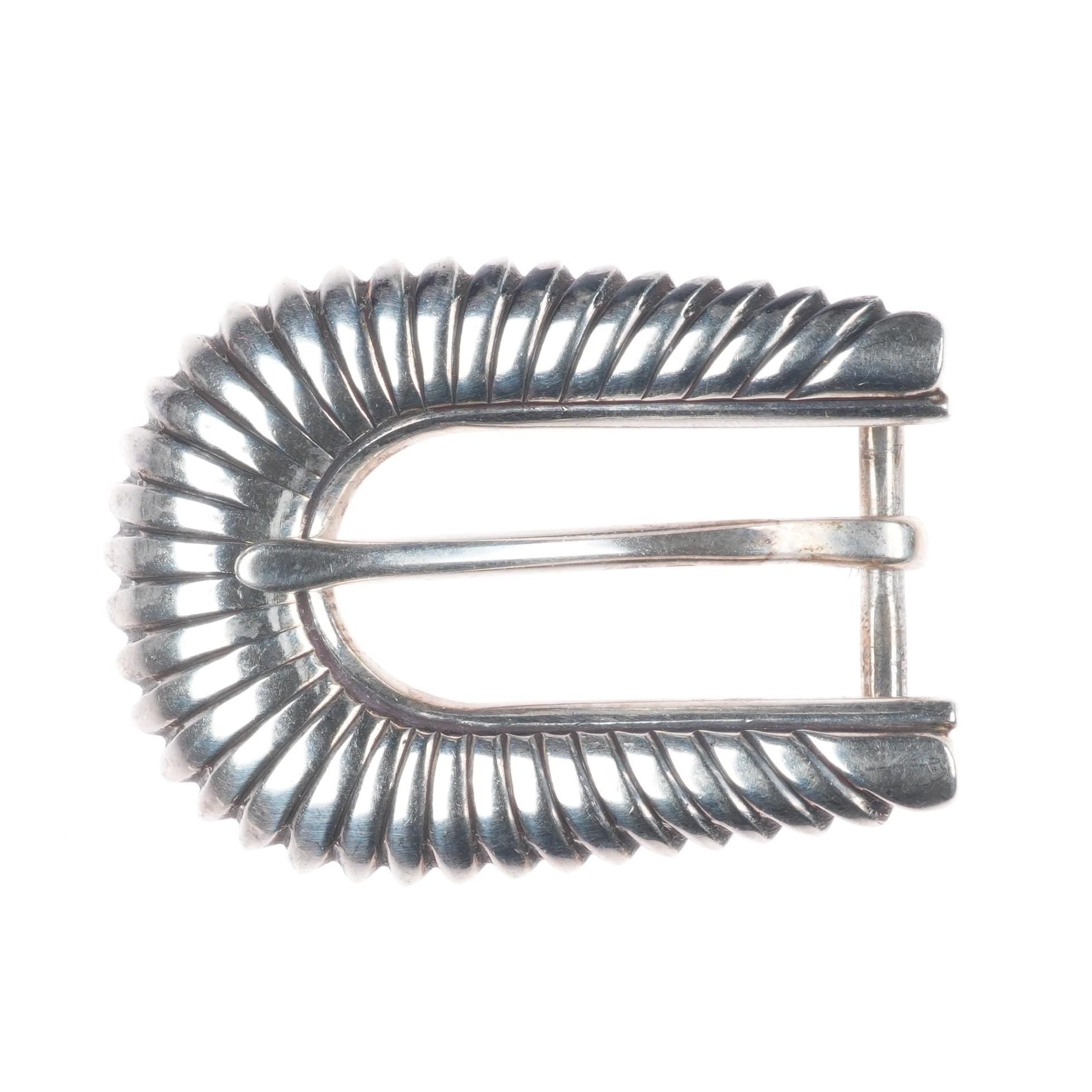 Vintage Navajo sterling silver chiseled design 5/8" ranger belt buckle set