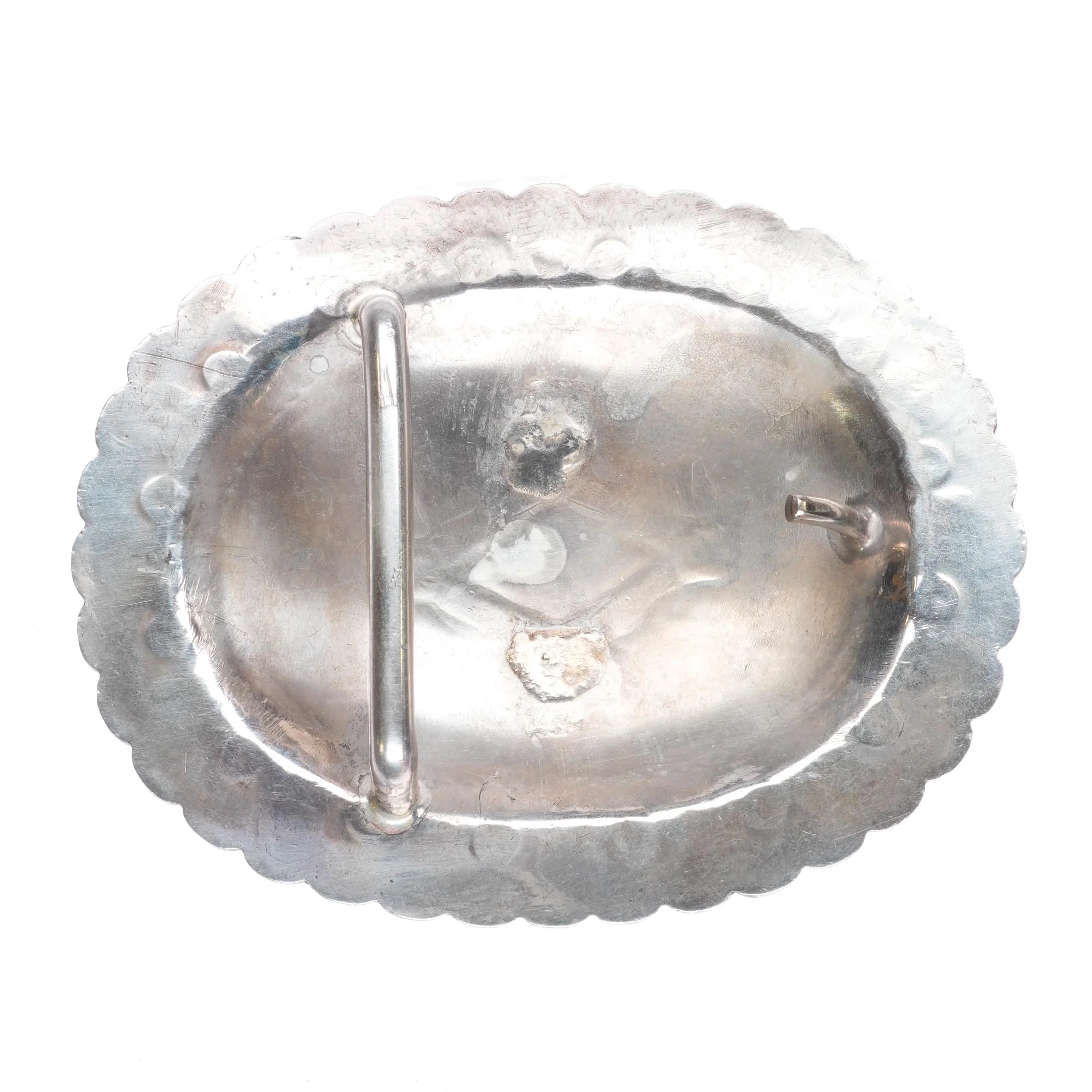 Vintage Navajo sterling silver concho style hand stamped belt buckle