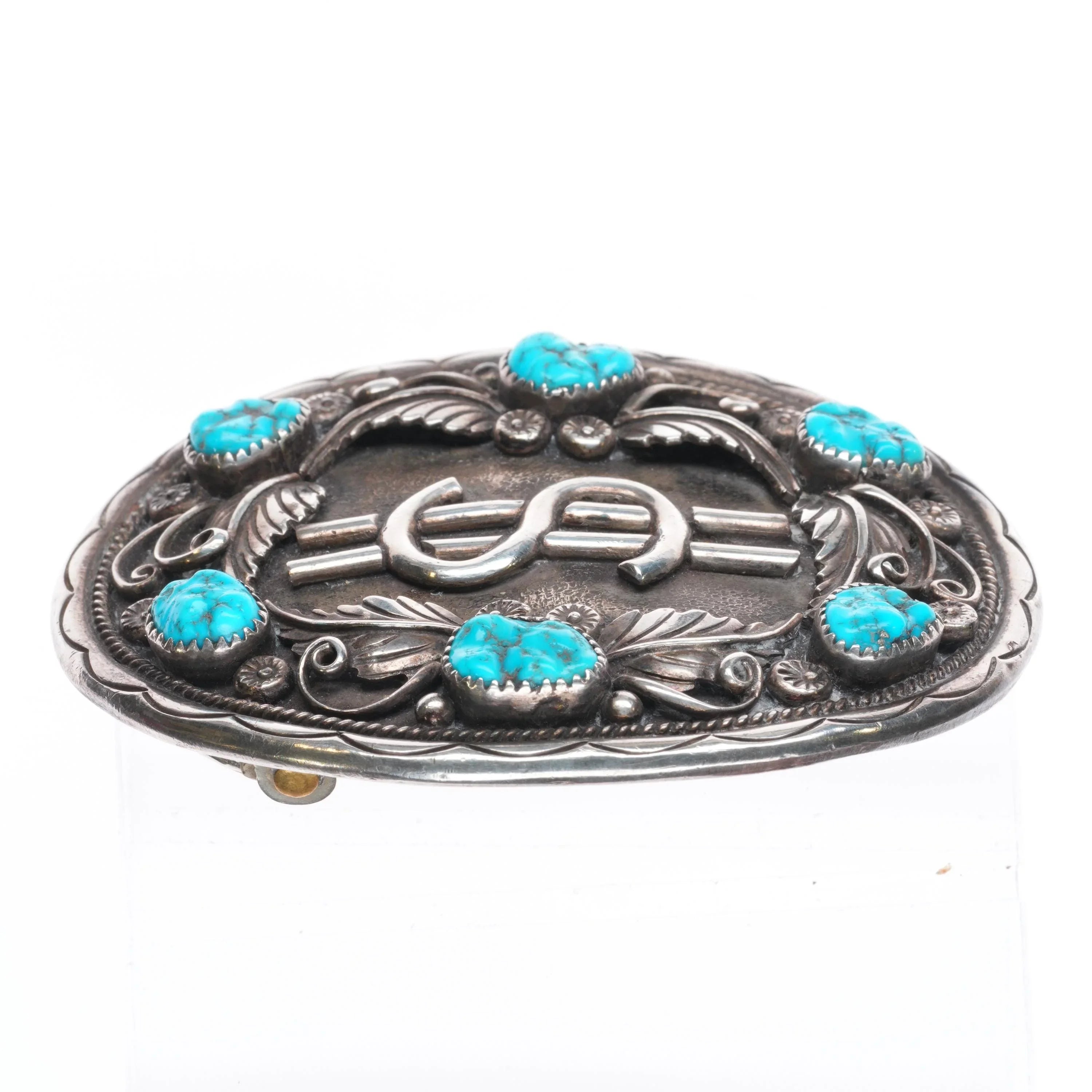 Vintage Navajo sterling silver dollar sign turquoise belt buckle