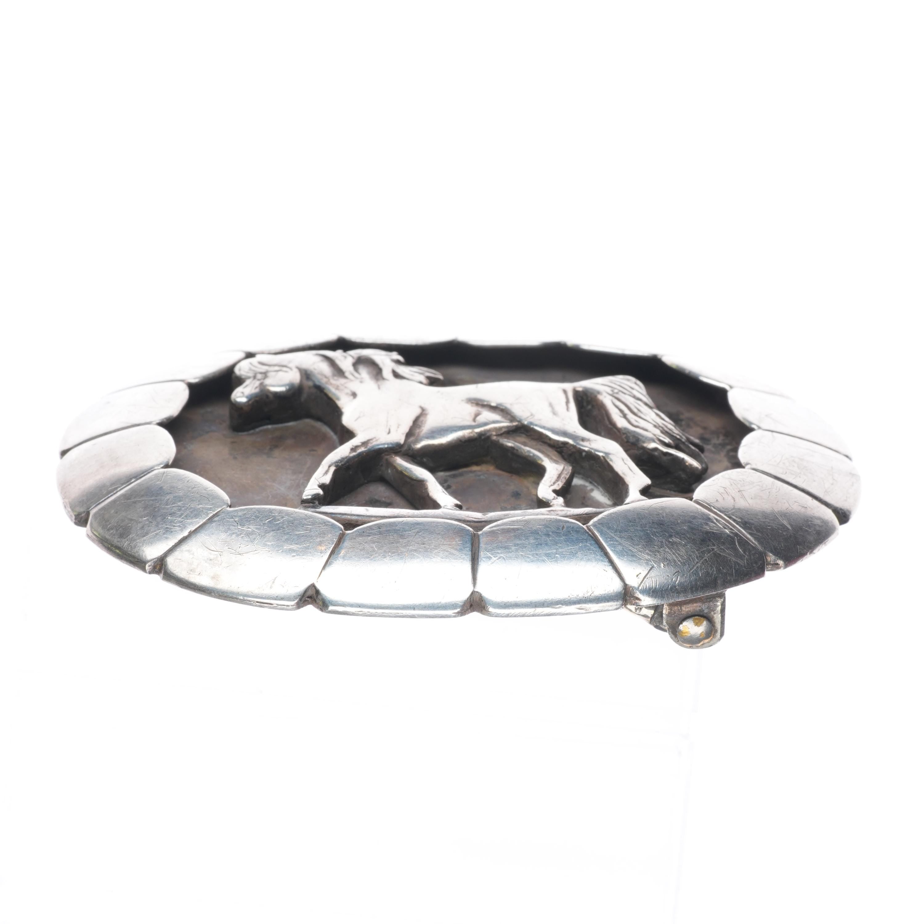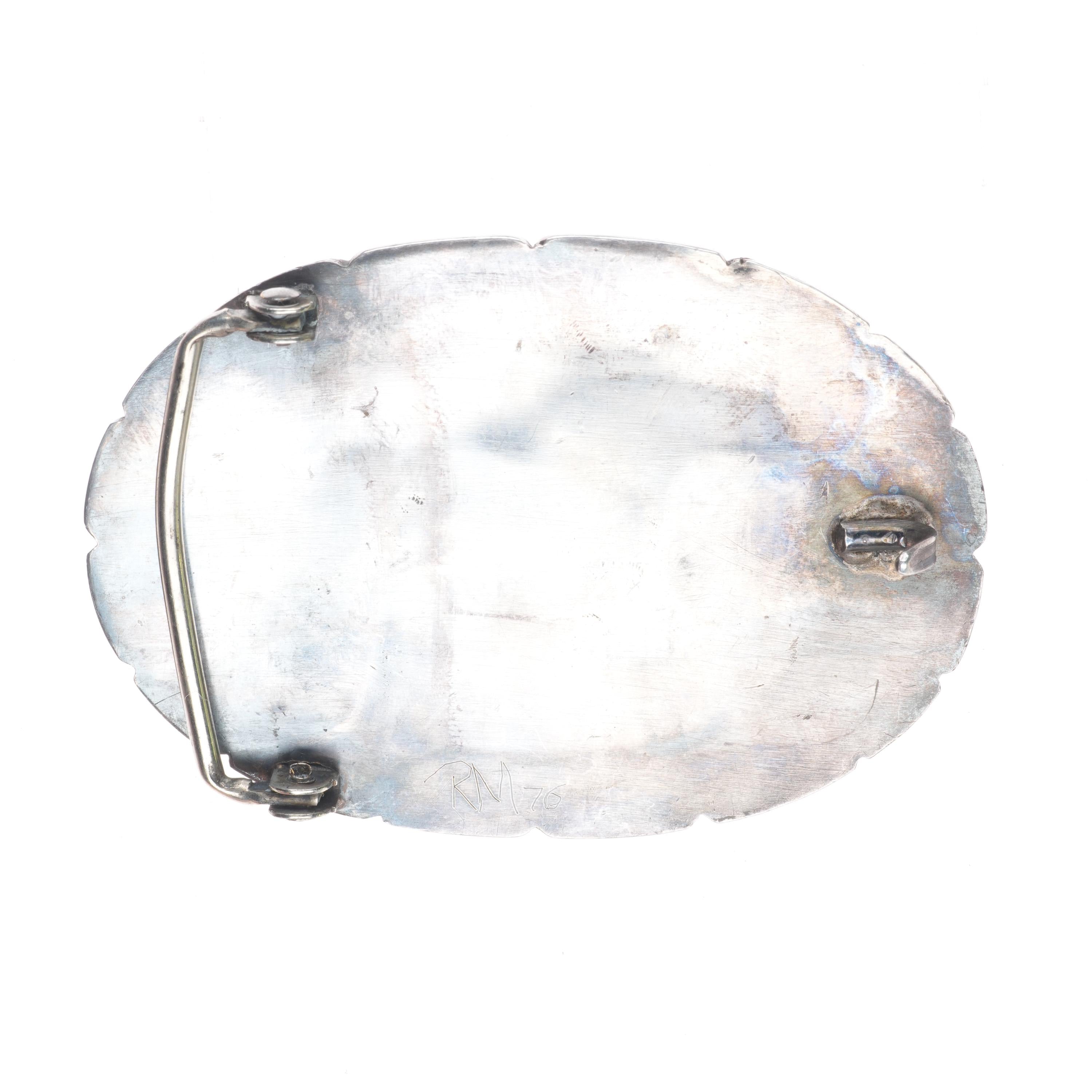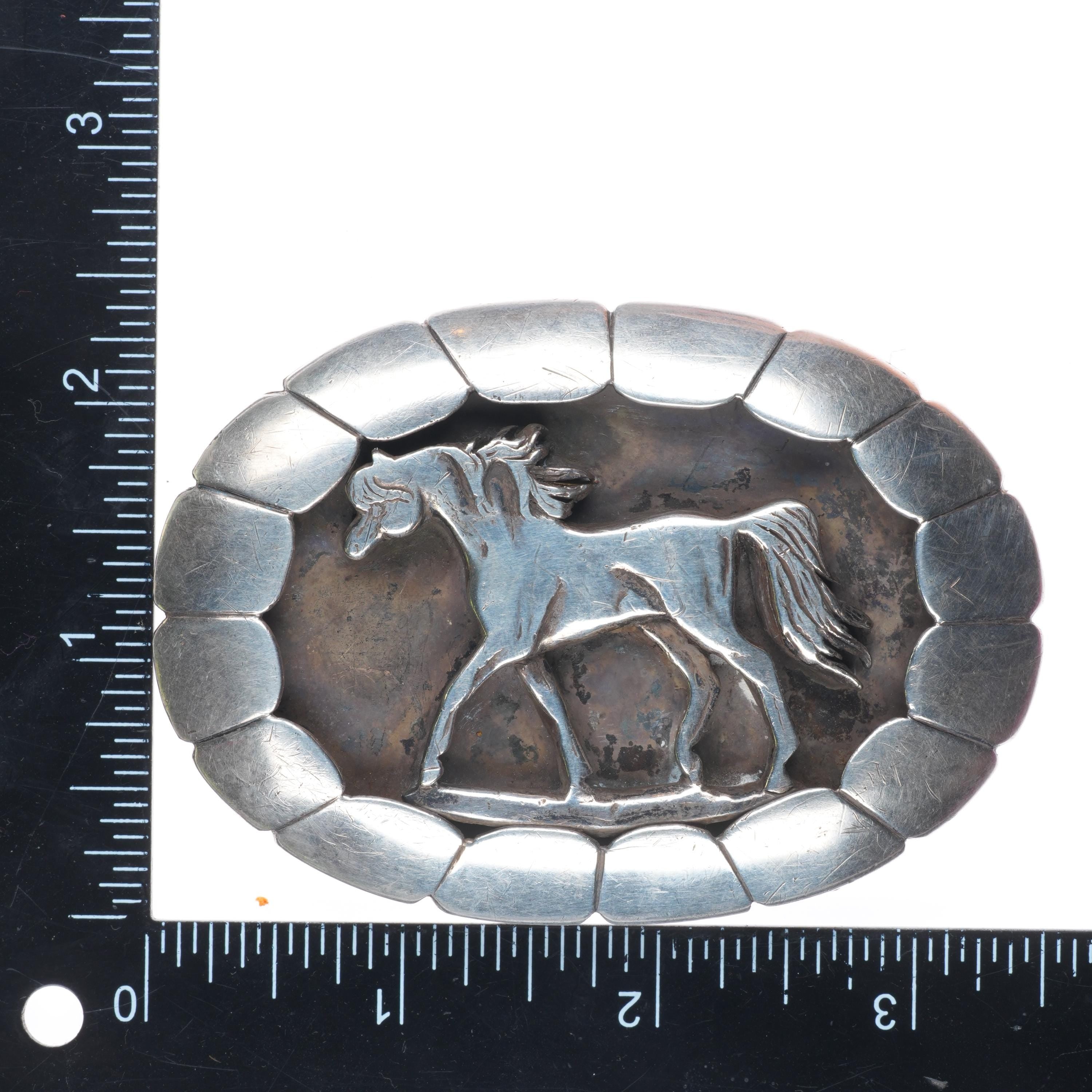 Vintage Navajo sterling silver horse shadowbox belt buckle