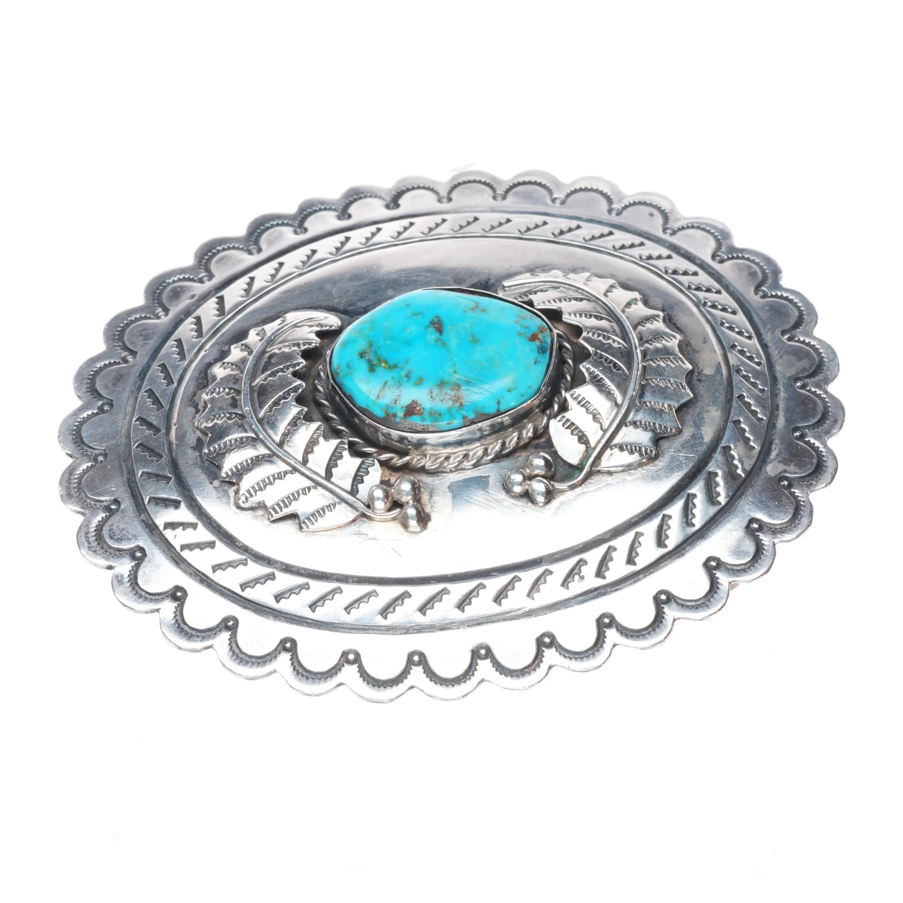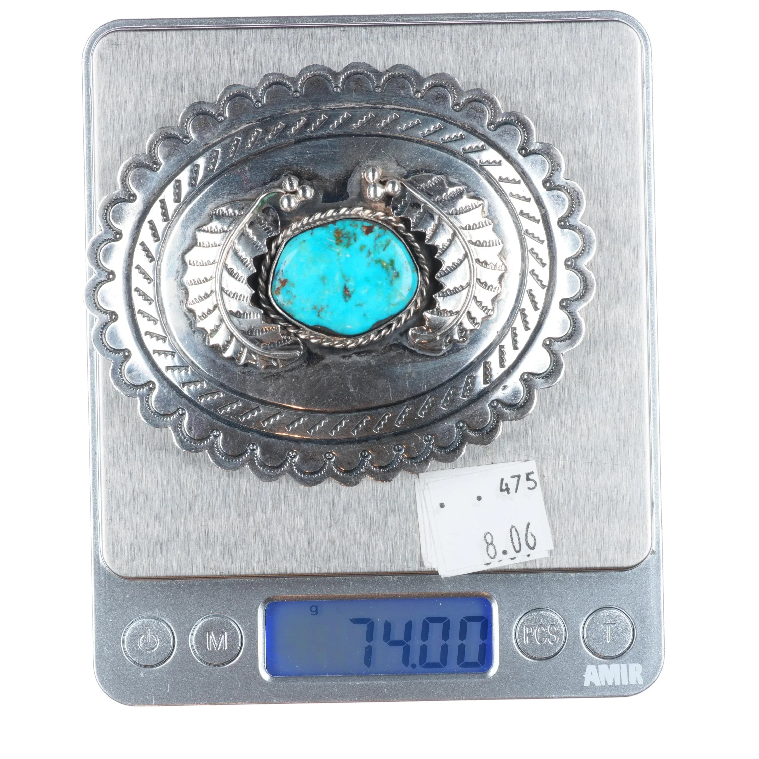 Vintage Navajo sterling silver nicely hand stamped belt buckle w/turquoise