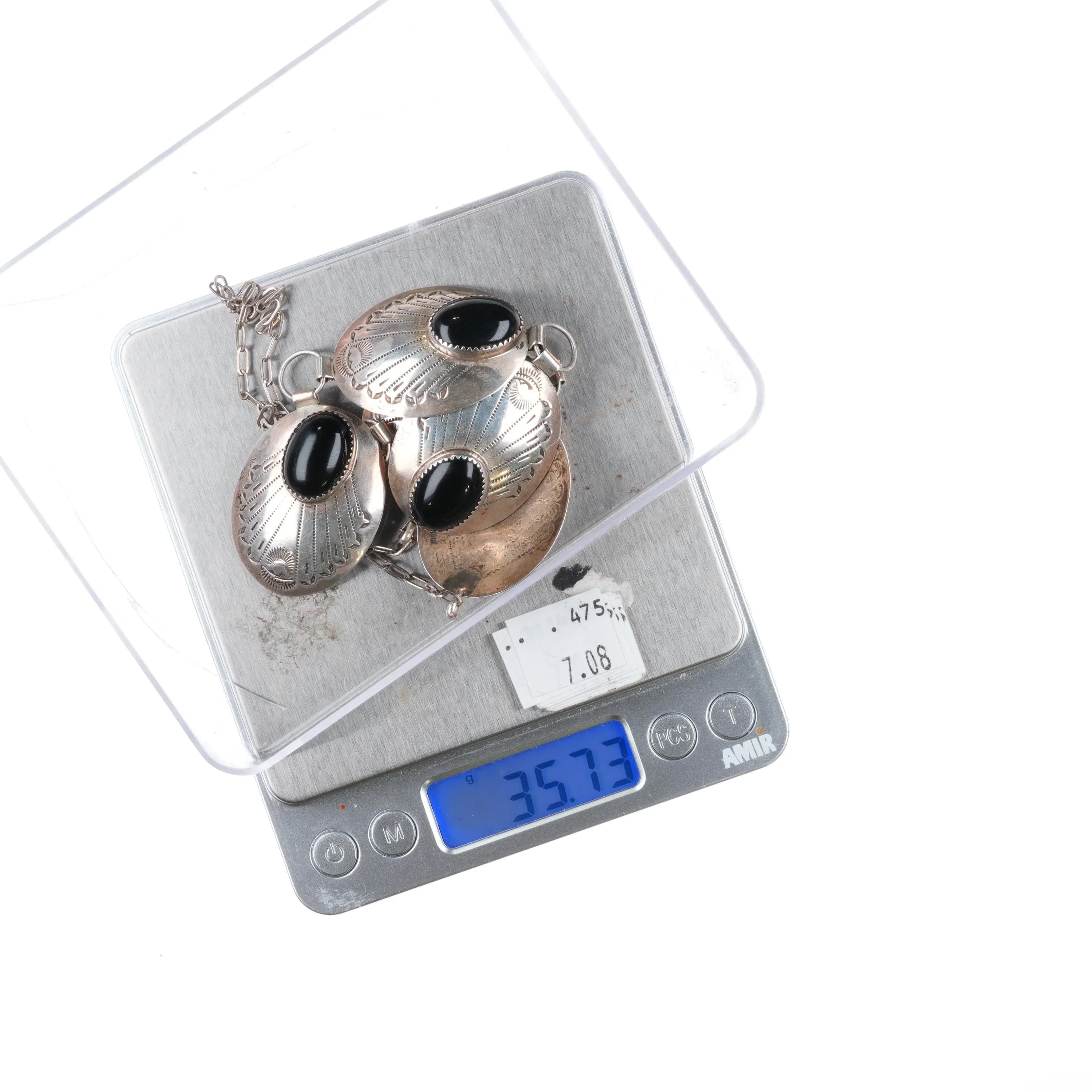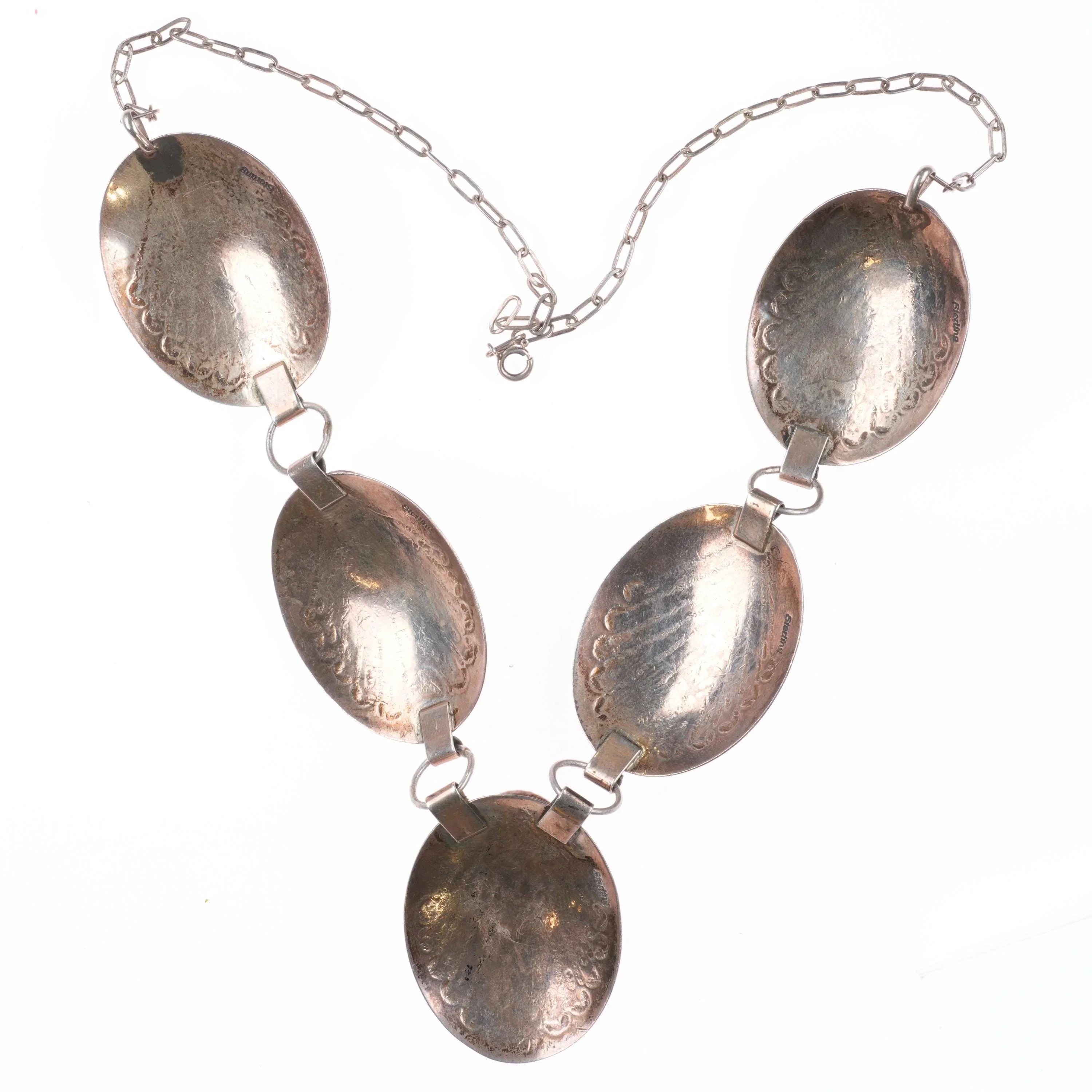 Vintage Navajo sterling silver/onyx conchos bib link necklace