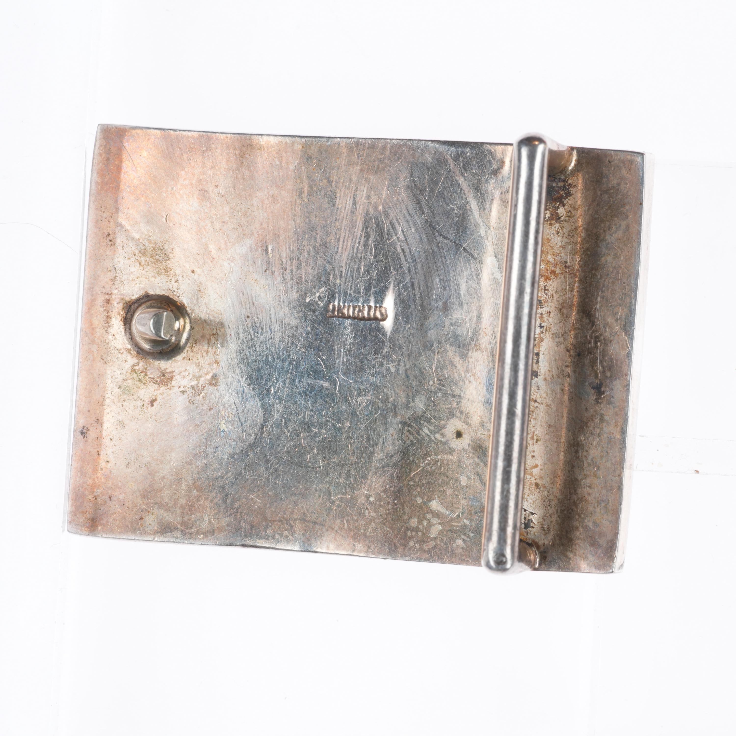 Vintage Navajo Sterling silver spiderweb turquoise channel inlay belt buckle