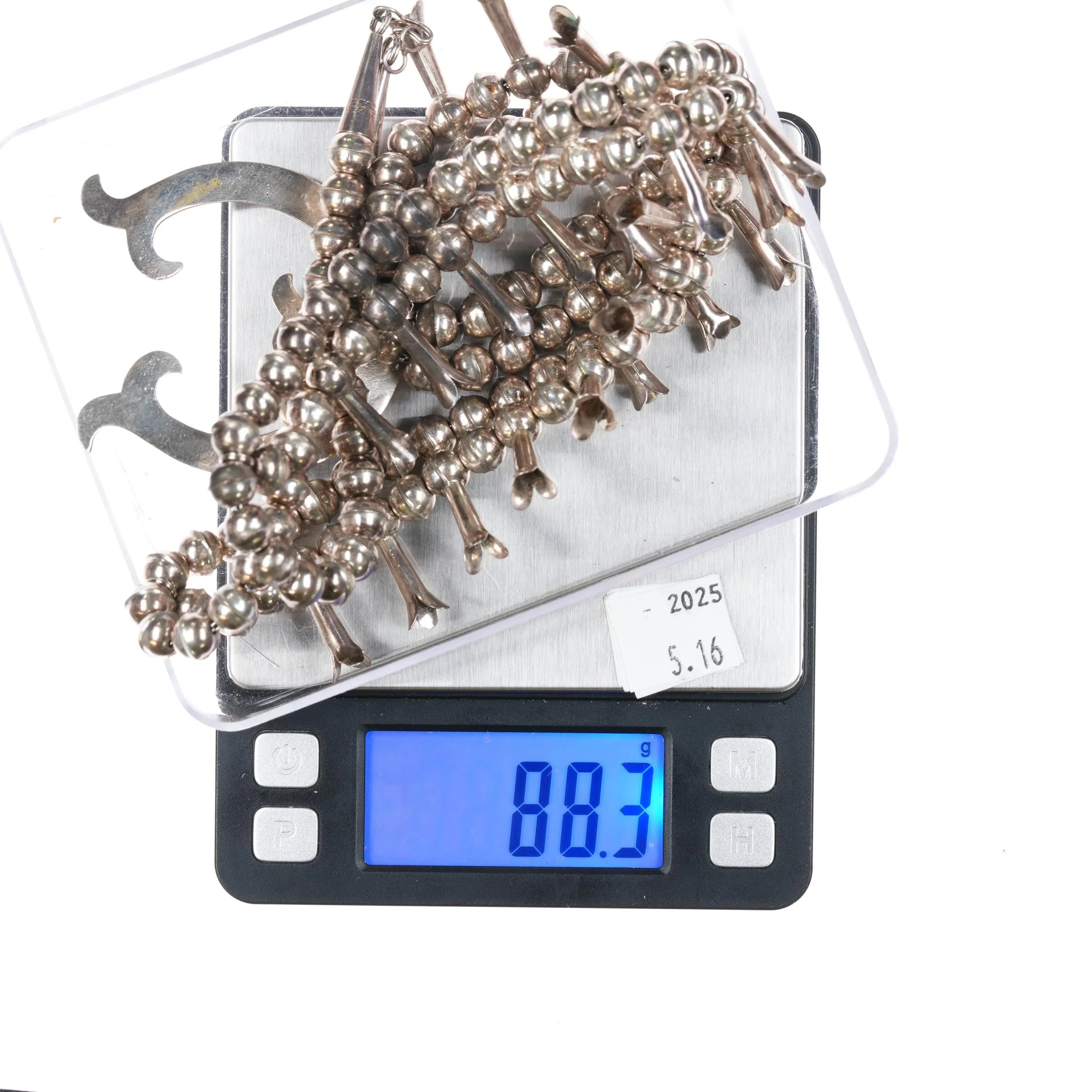 Vintage Navajo sterling silver squash blossom necklace w/cast naja. Tested and guaranteed solid sterling silver, nice large piece with weight and measurements in pictures. No damage or detectable markings.