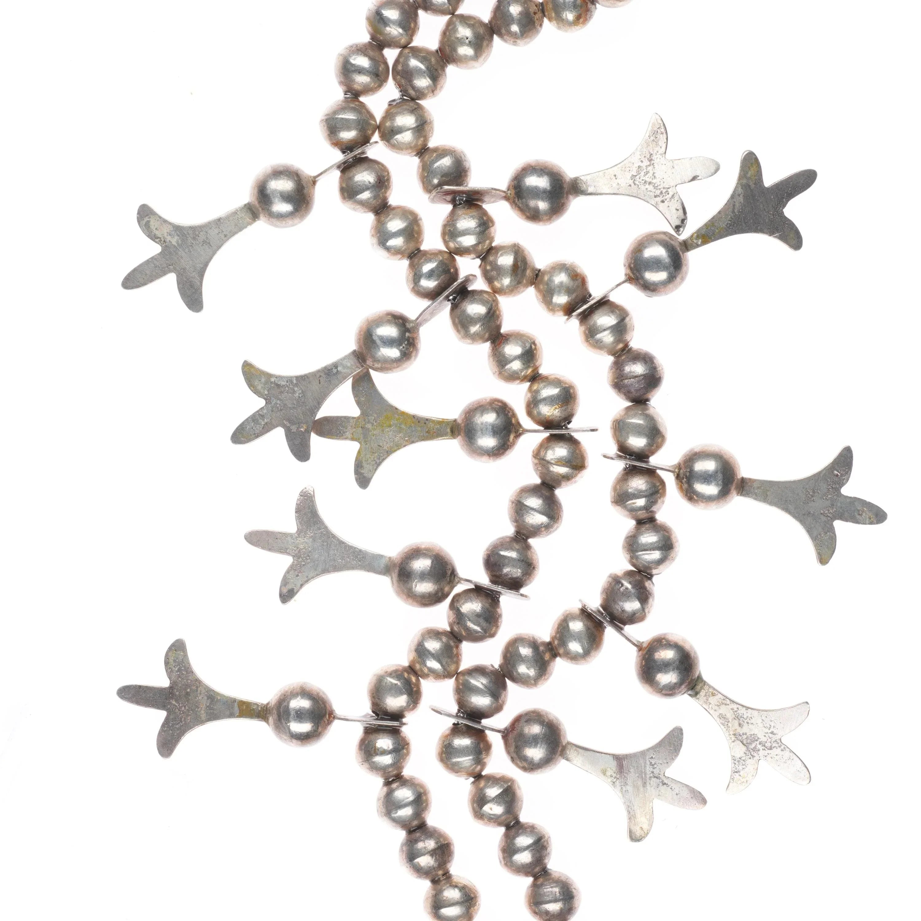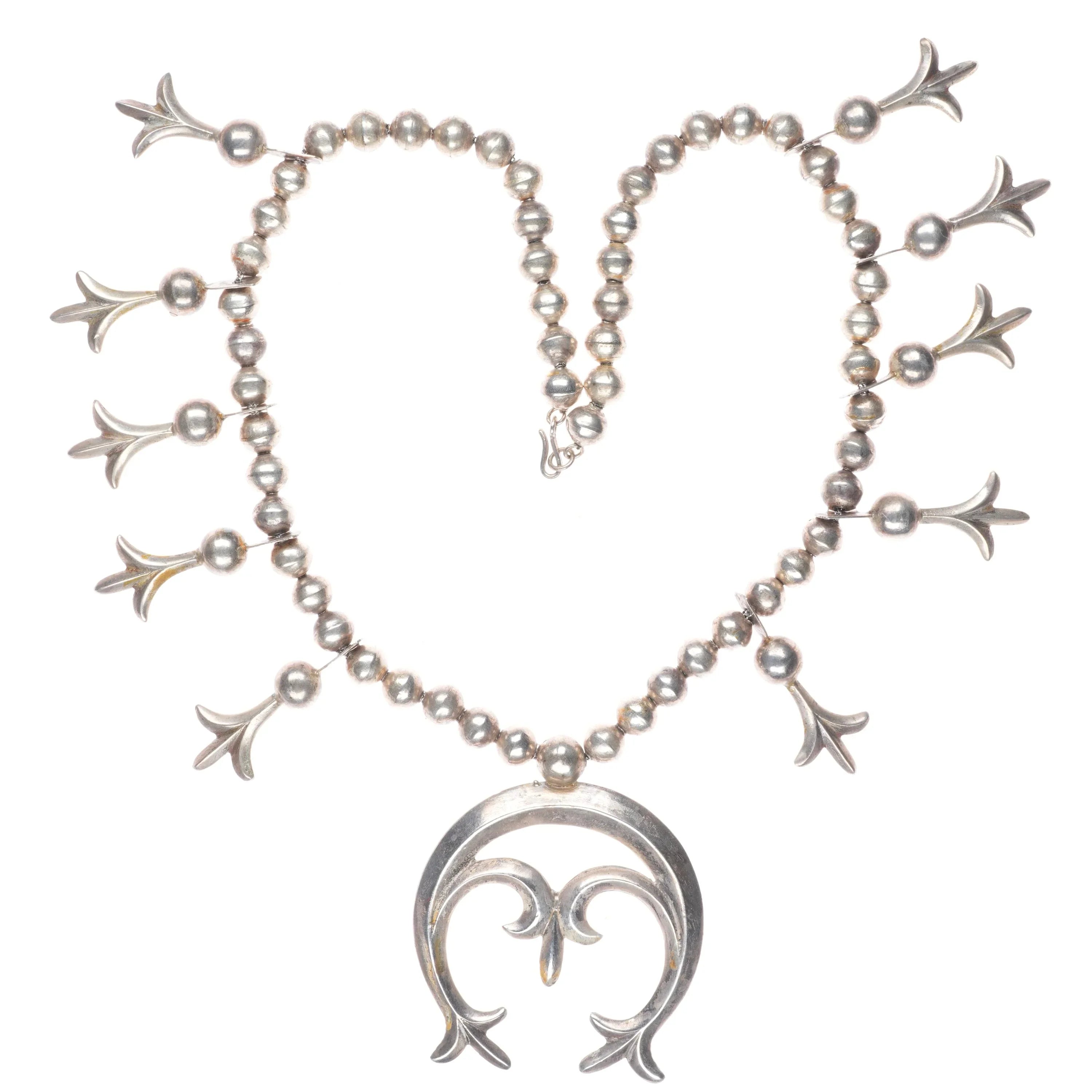 Vintage Navajo sterling silver squash blossom necklace w/cast naja and blossoms
