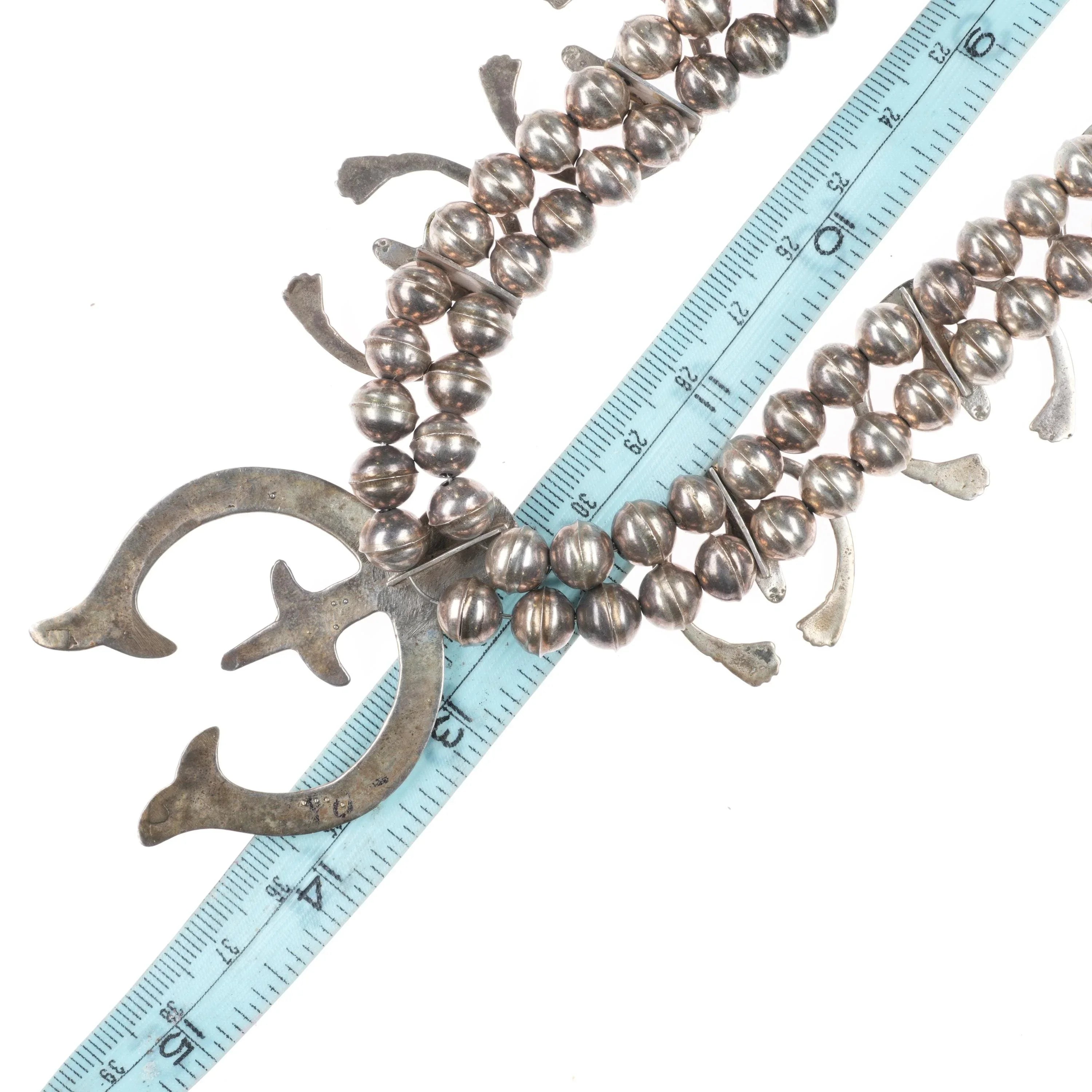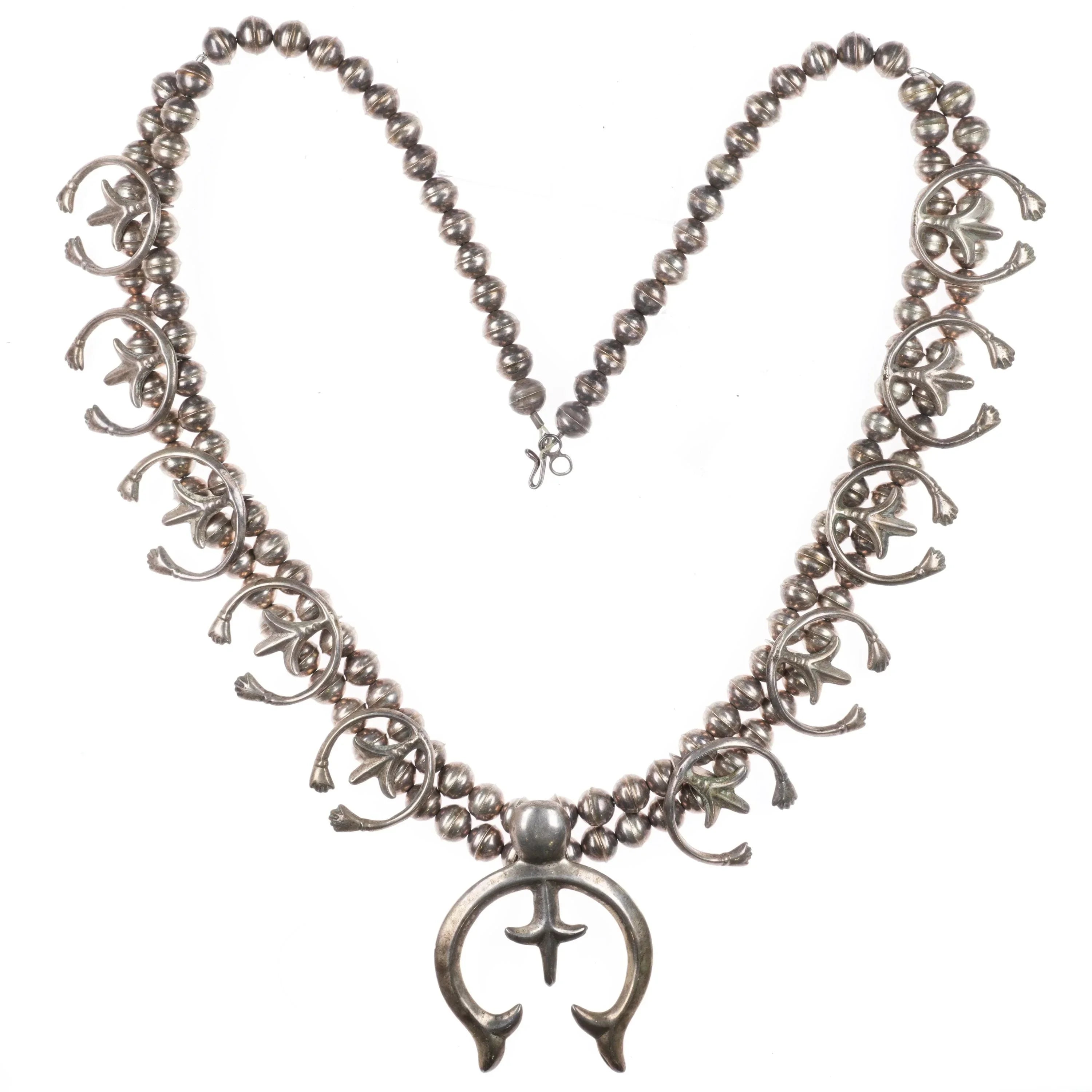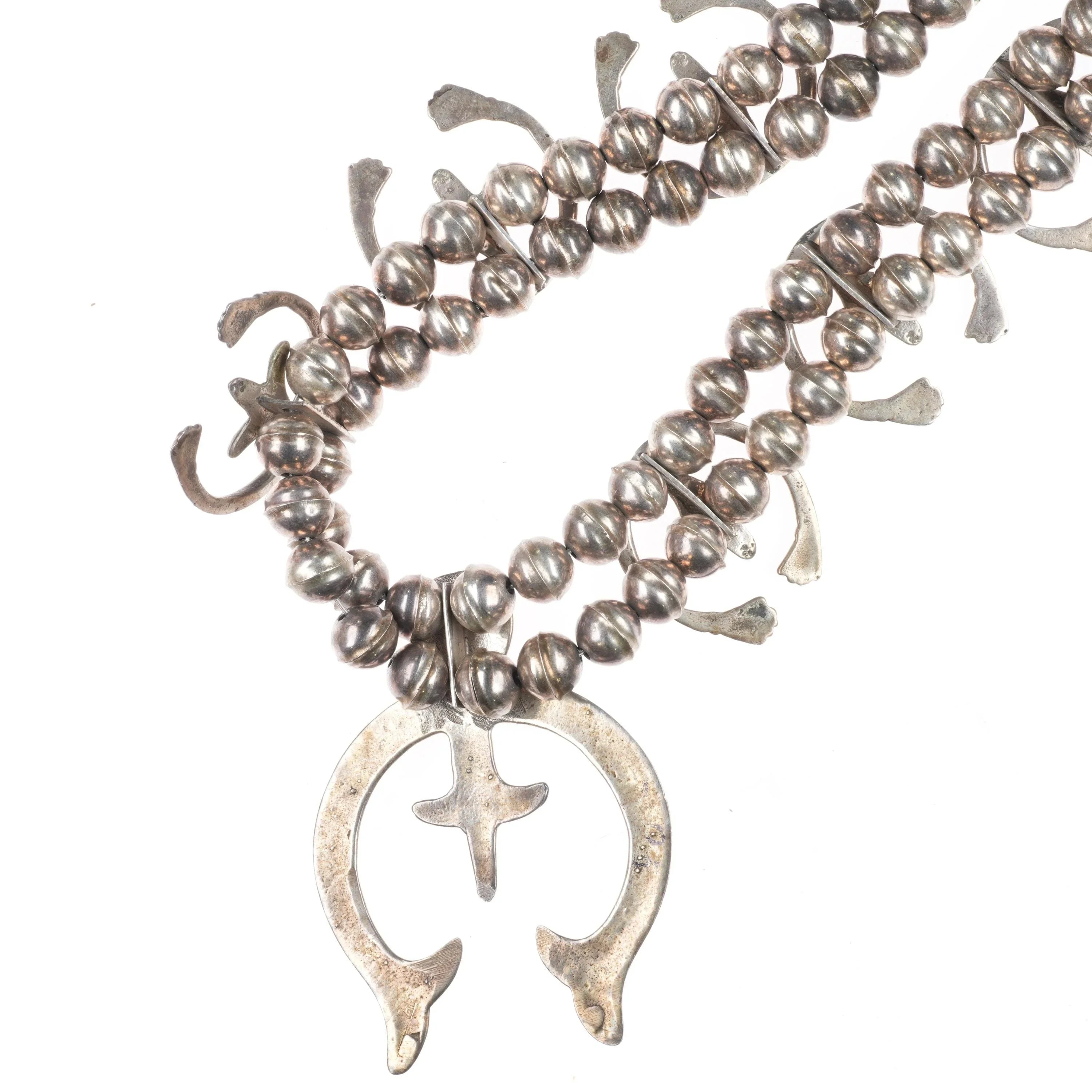 Vintage Navajo sterling silver squash blossom necklace w/cast naja's