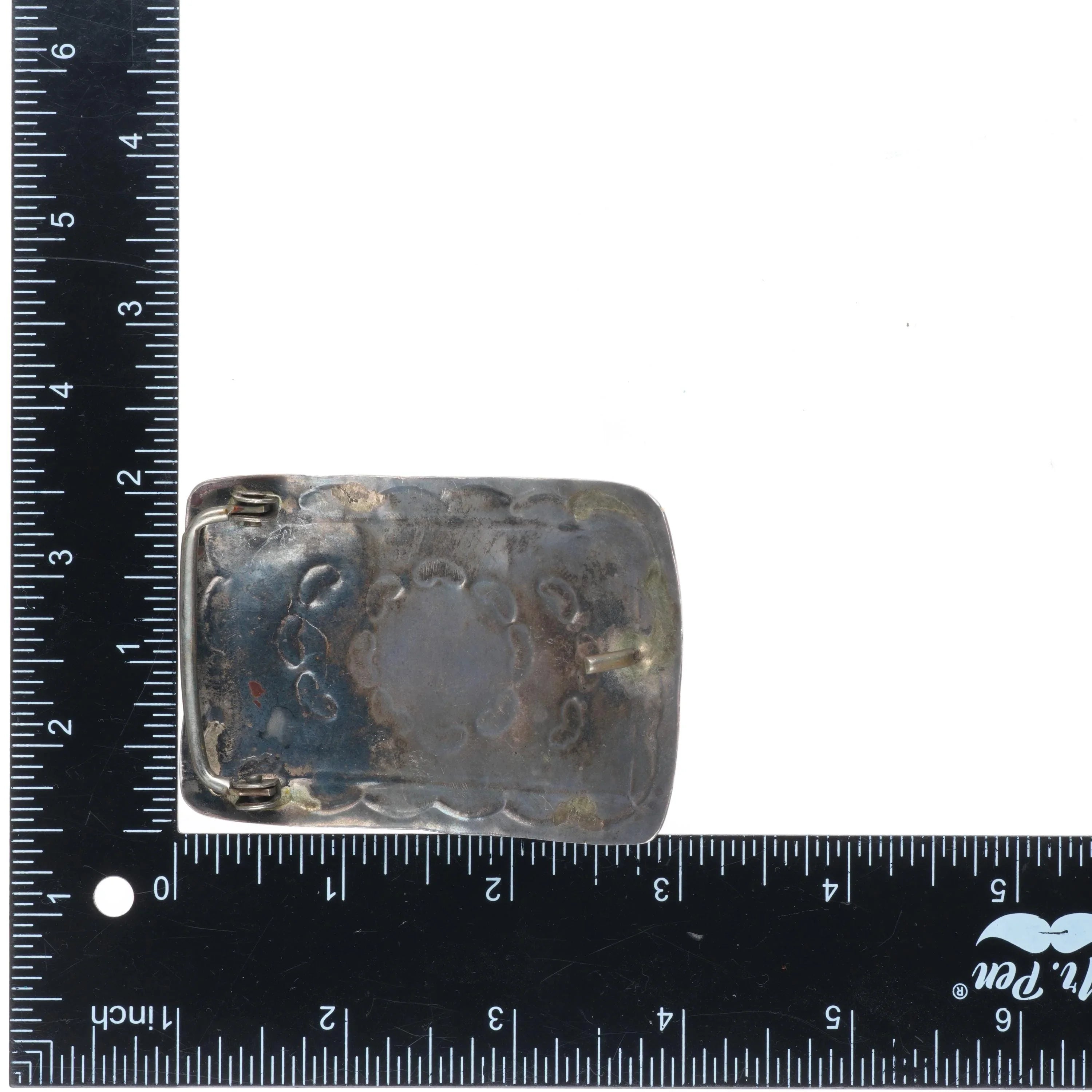 Vintage Navajo Sterling silver turquoise belt buckle stamped design. Fits up to a 1.5" belt. Tested and guaranteed solid sterling silver with weight and measurements in pictures. Fully functional, stone(s) are secure. All items will likely have some expected wear, the older they are the more wear they should have. Circa 1970‘s.