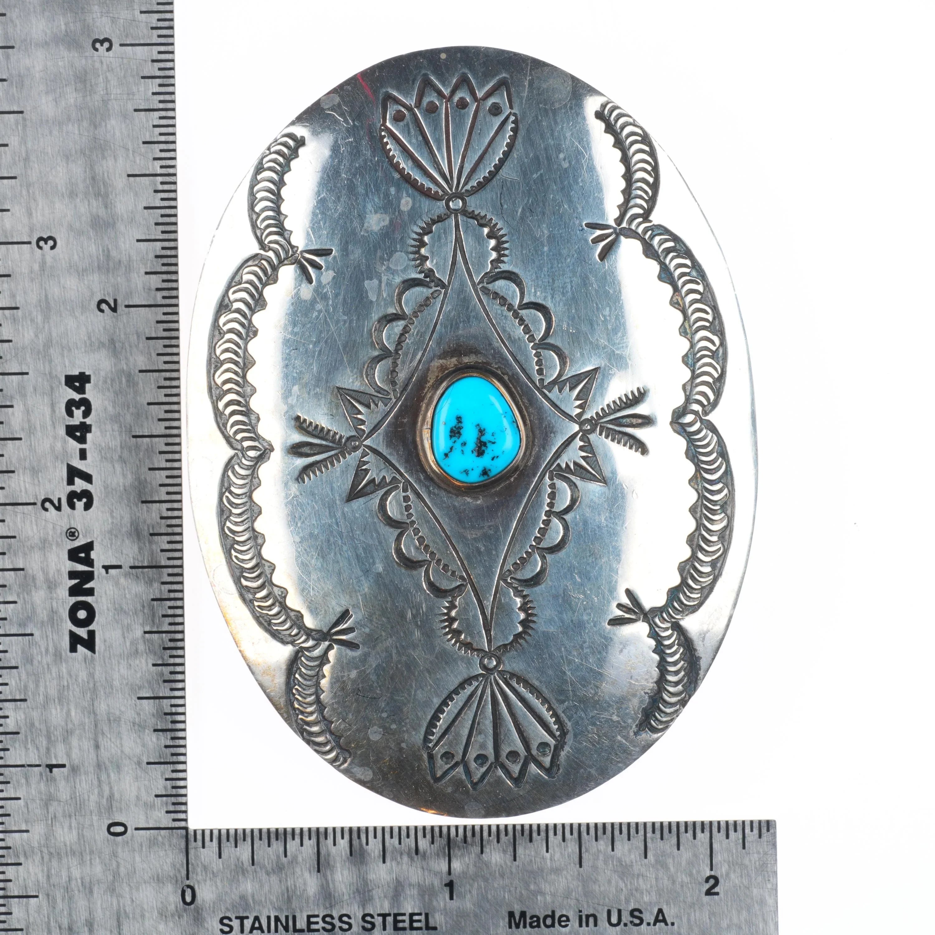 Vintage Navajo sterling silver turquoise belt buckle w/nice stampings
