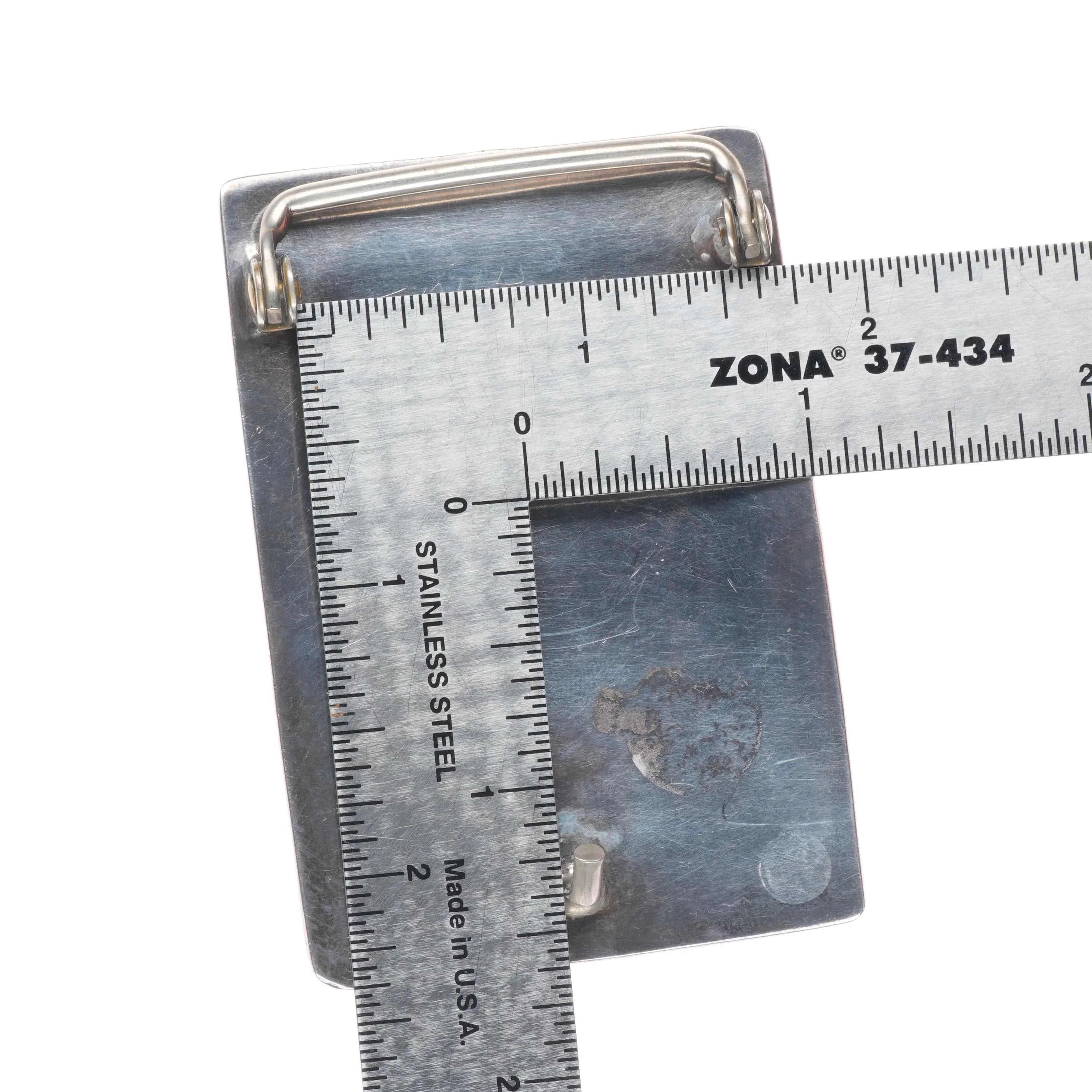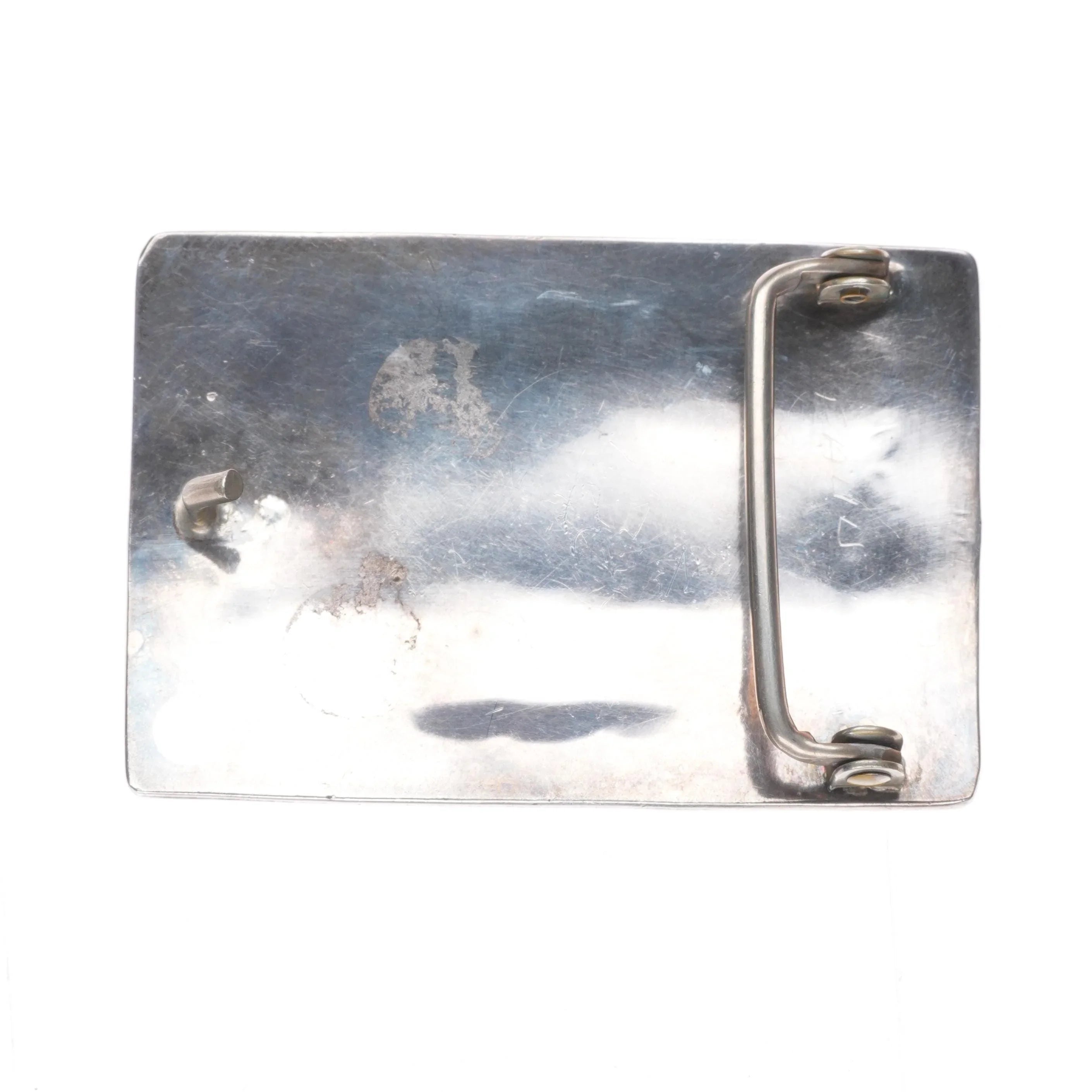 Vintage Navajo sterling silver turquoise belt buckle with turquoise/feathers. Tested and guaranteed solid sterling silver, fits up to a 1.5" wide belt. Weight and measurements in pictures, circa third quarter of the 20th century.