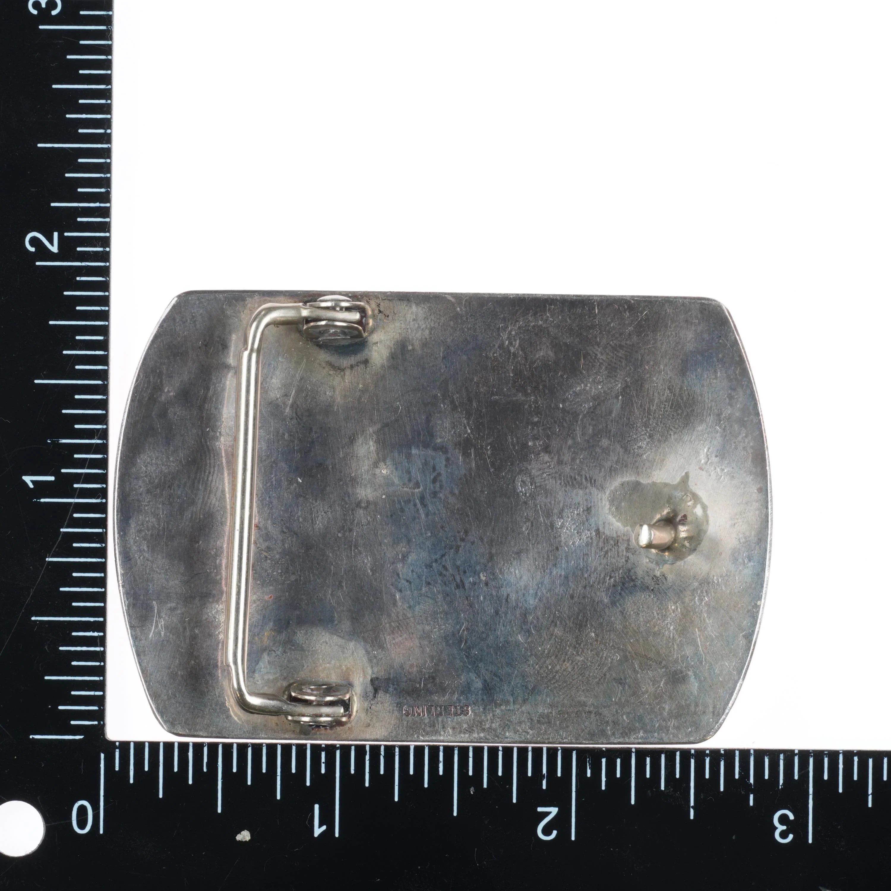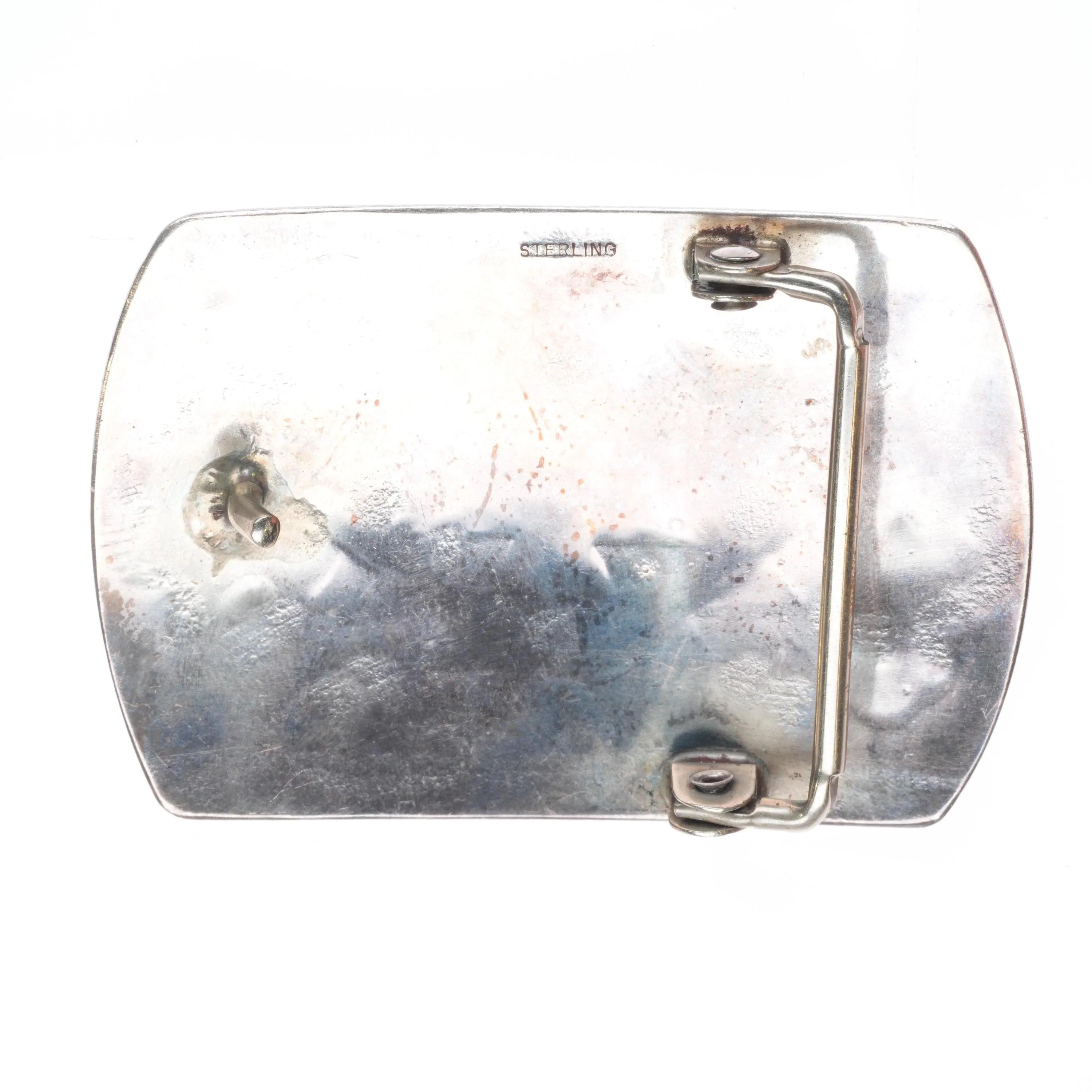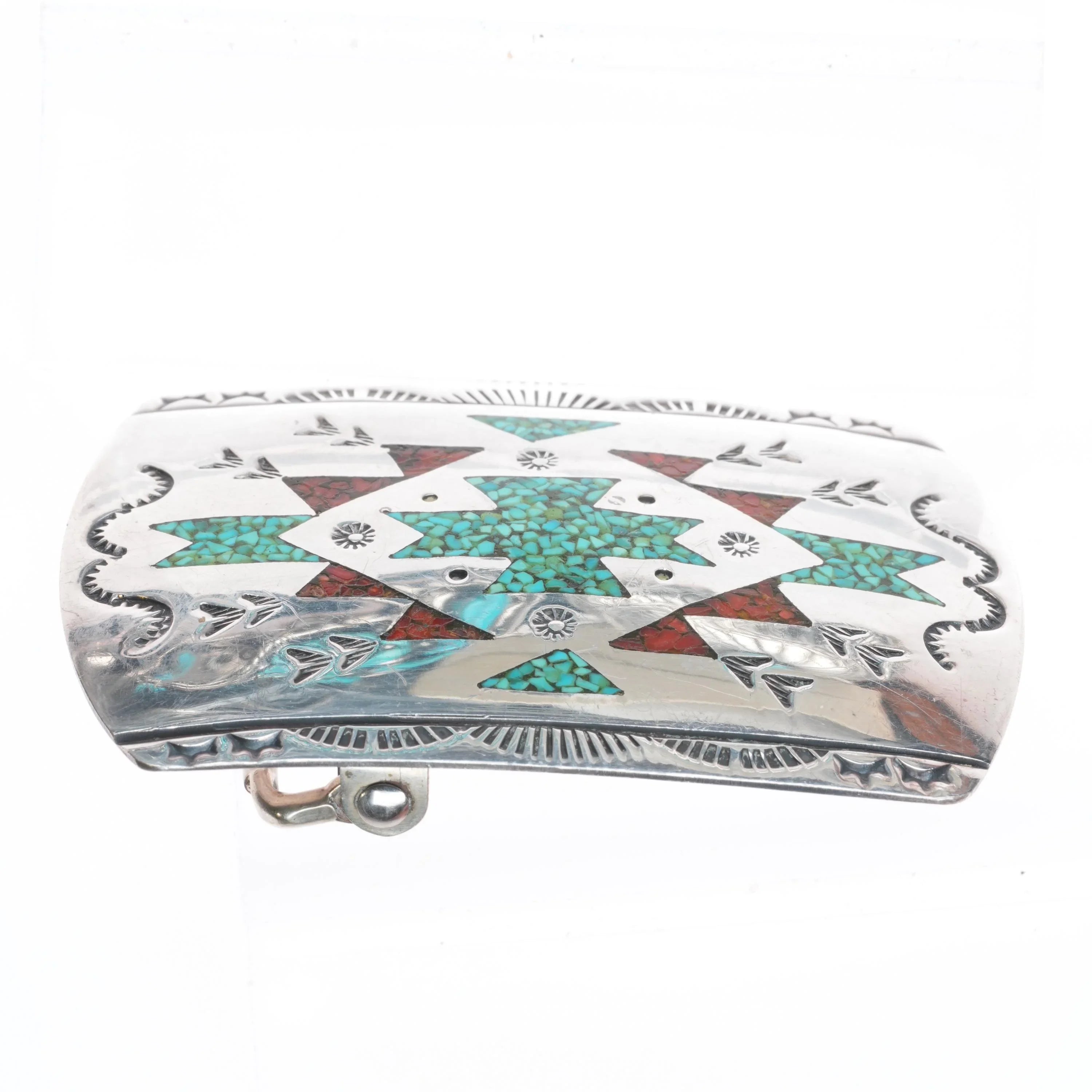 Vintage Navajo sterling silver turquoise chip inlay rug pattern belt buckle