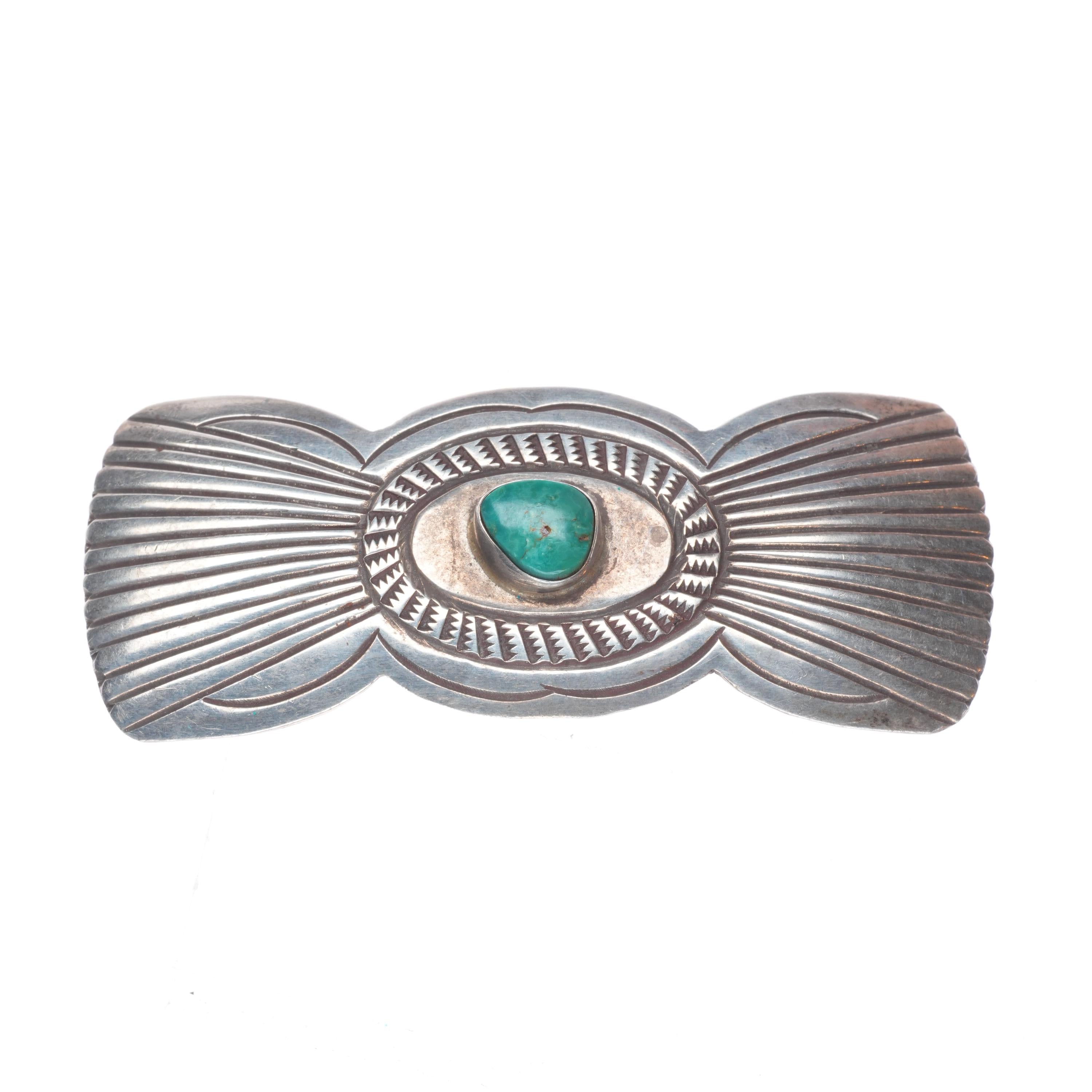 Vintage Navajo sterling silver/turquoise hair clip/Barrette