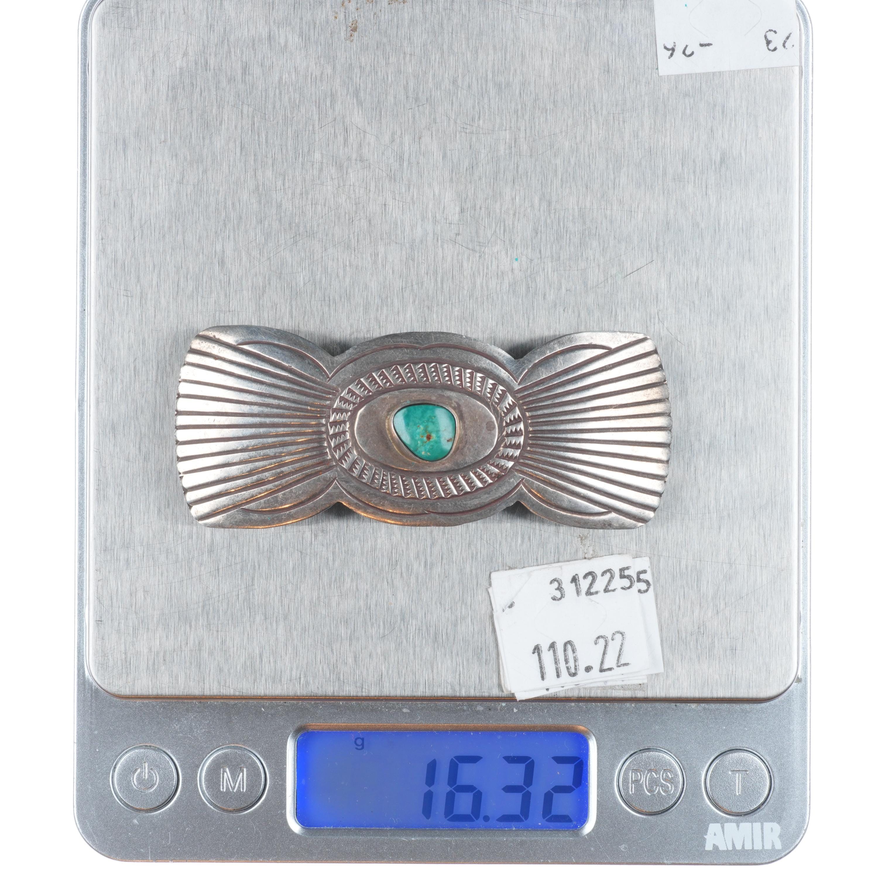 Vintage Navajo sterling silver/turquoise hair clip/Barrette. Tested and guaranteed solid sterling silver with weight and measurements in pictures. Circa third quarter of the 20th century with age appropriate wear..