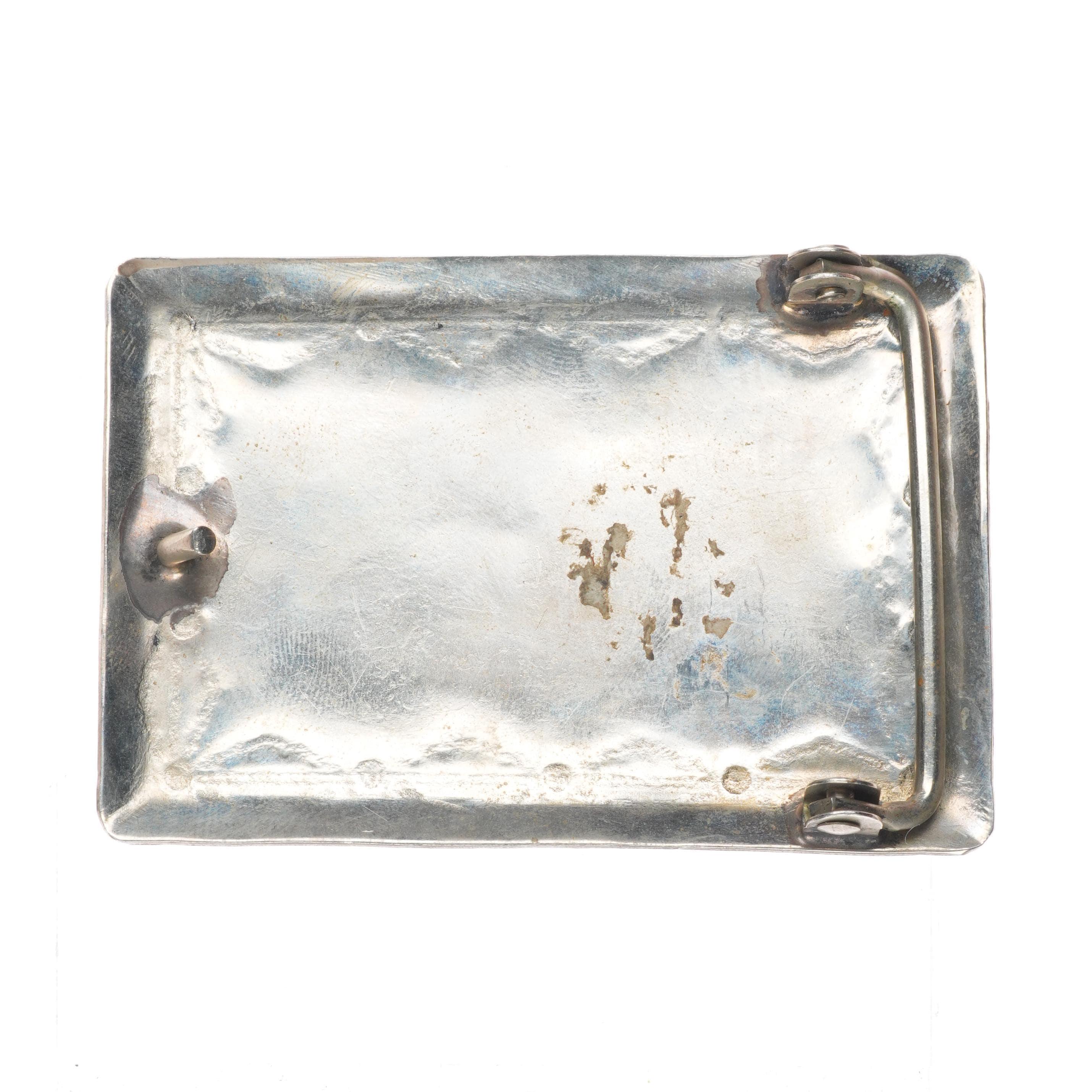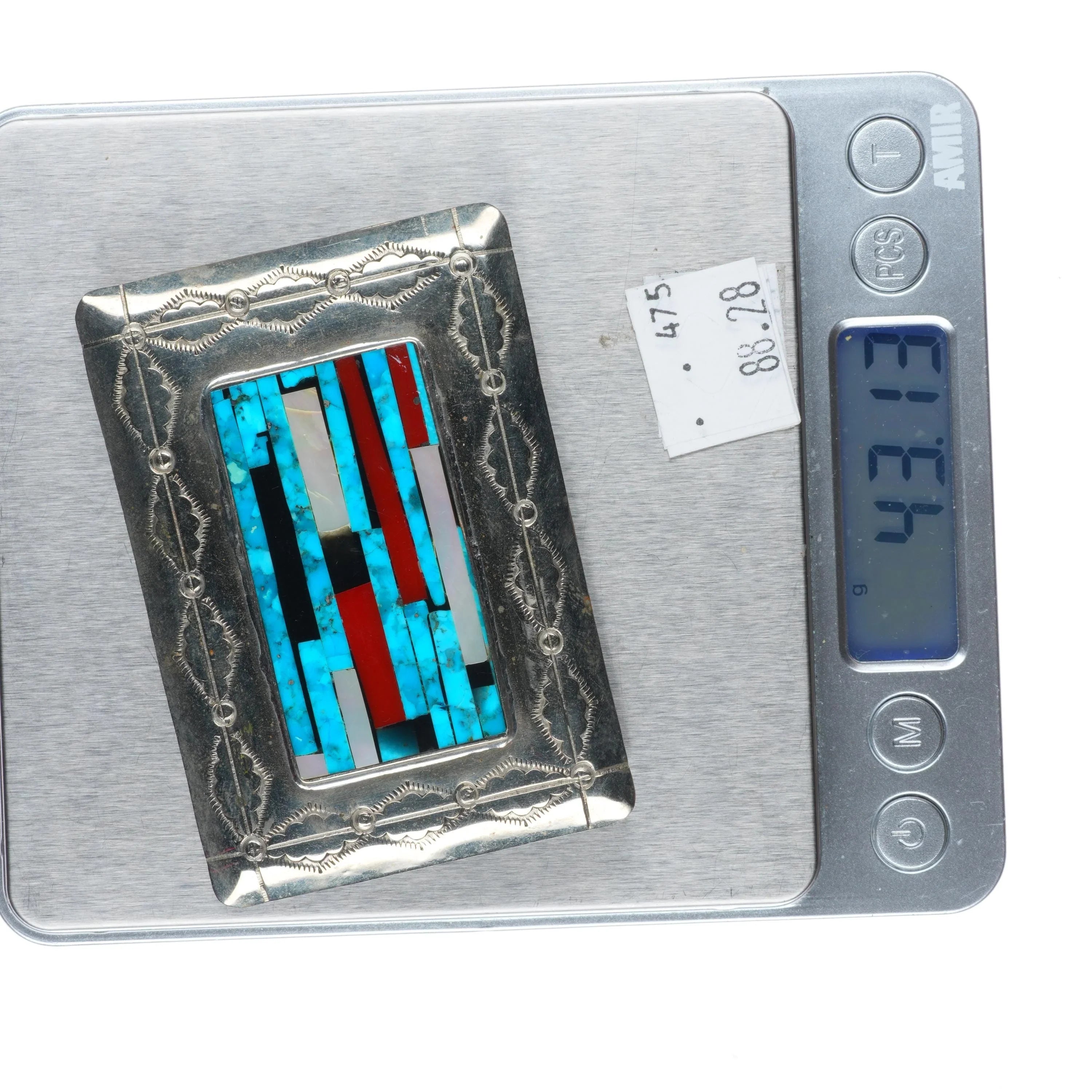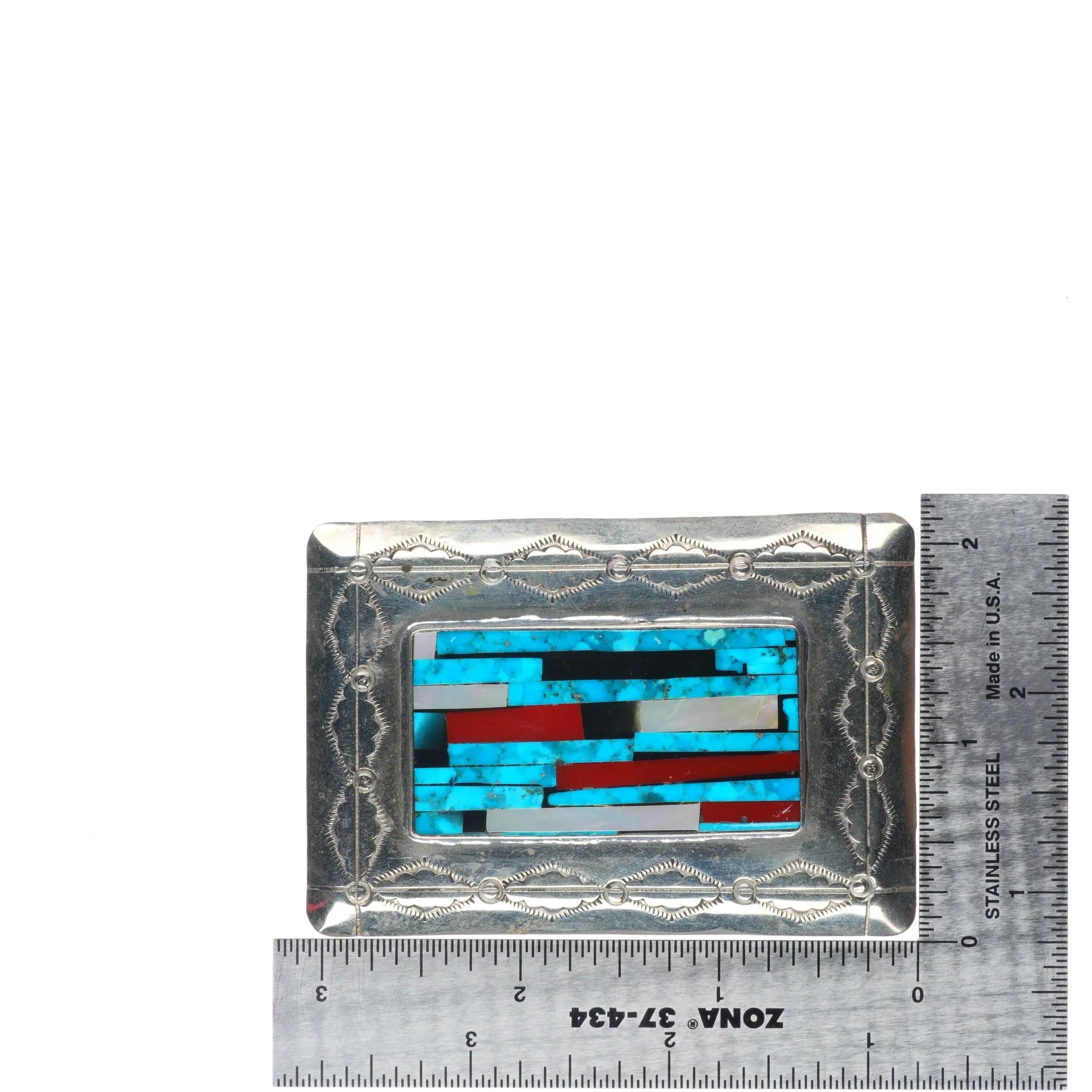 Vintage Navajo sterling silver turquoise/shell intarsia inlay belt buckle