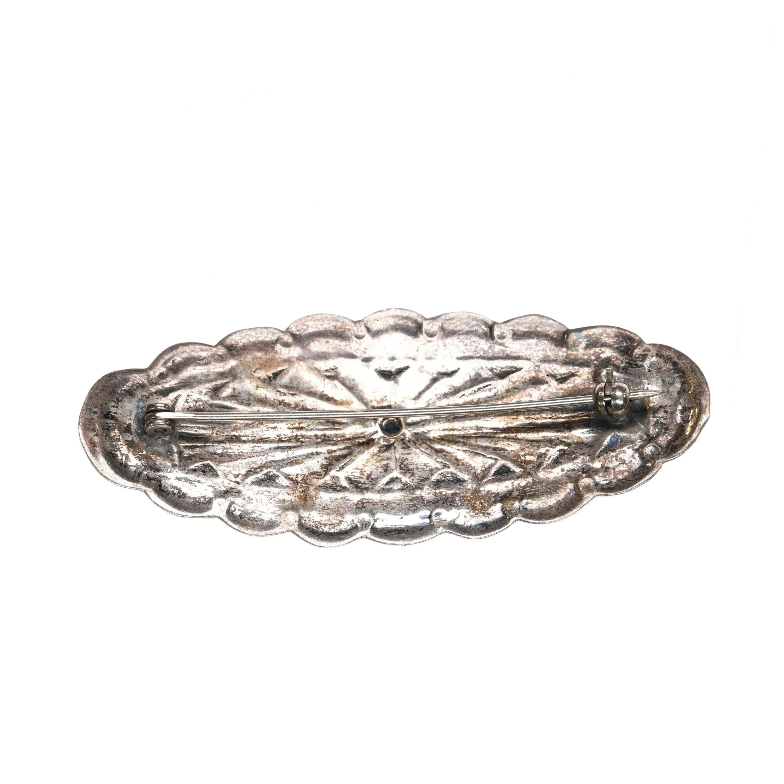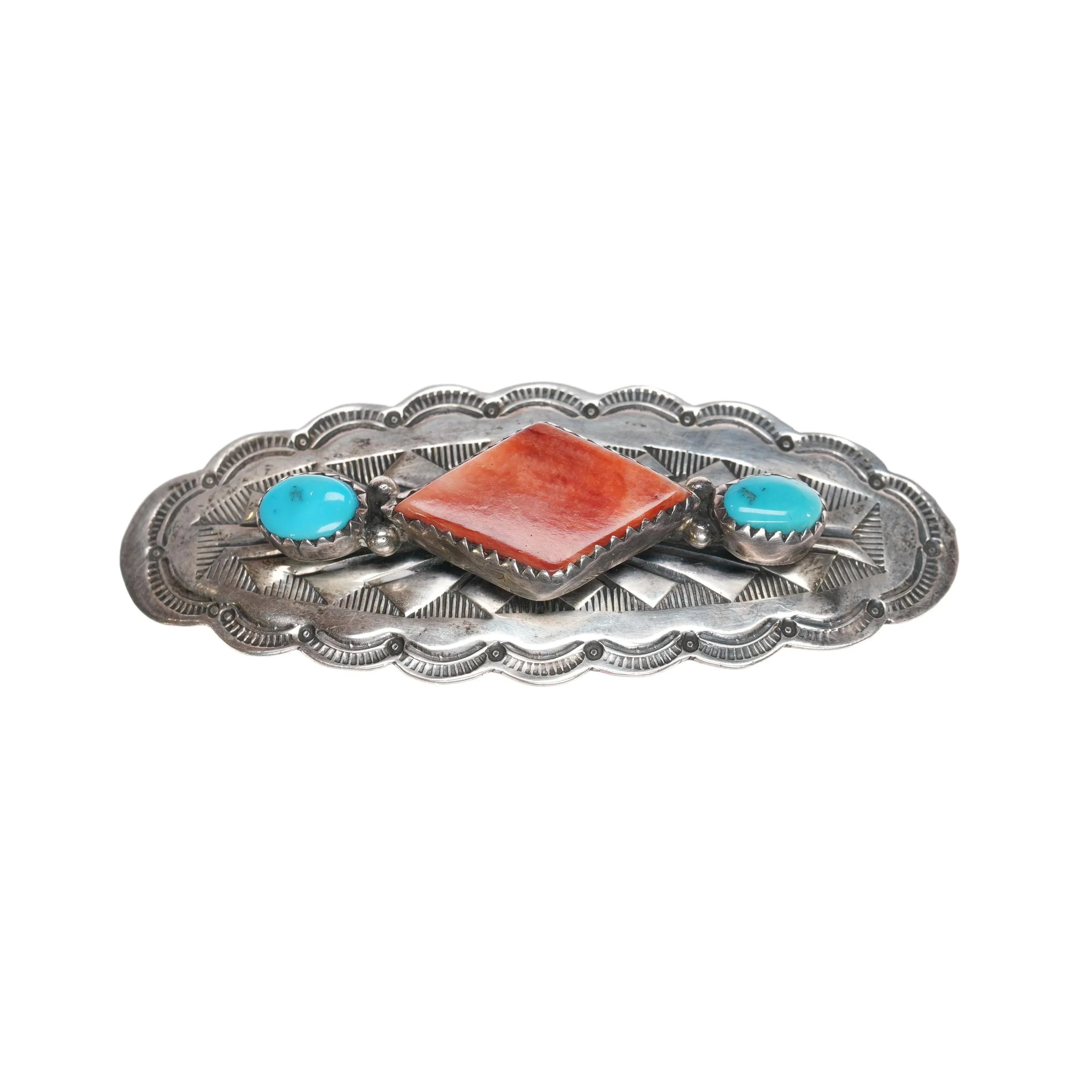 Vintage Navajo sterling spiny oyster and turquoise pin