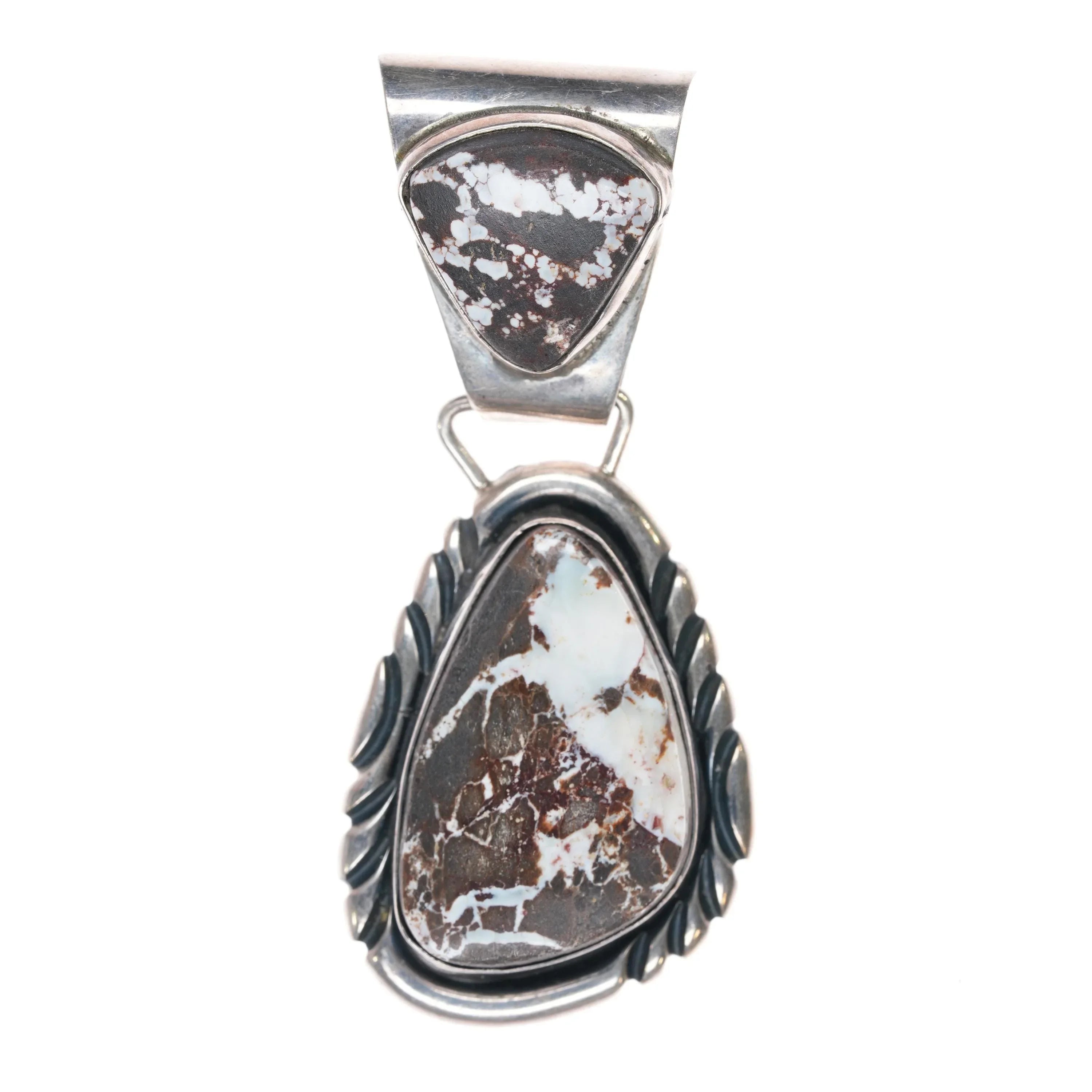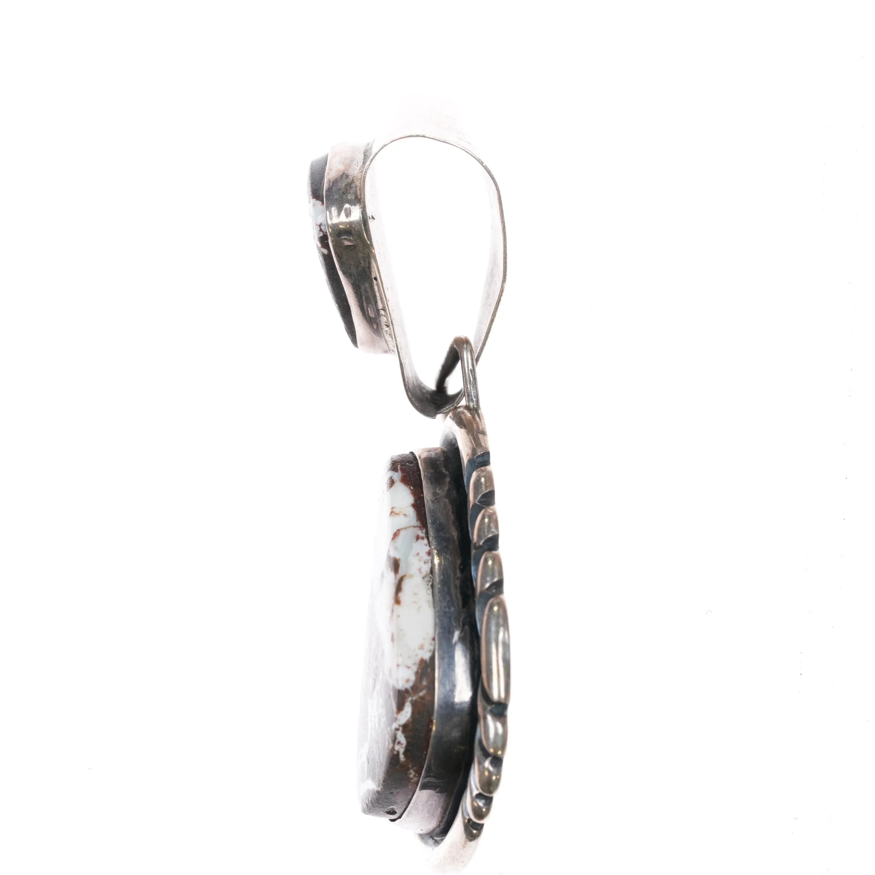 Vintage Navajo sterling wild horse jasper pendant with large bail