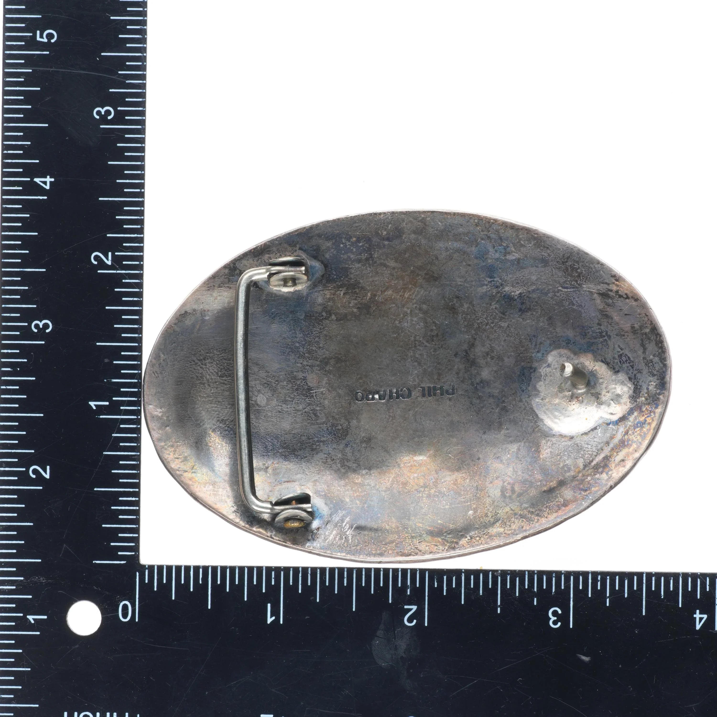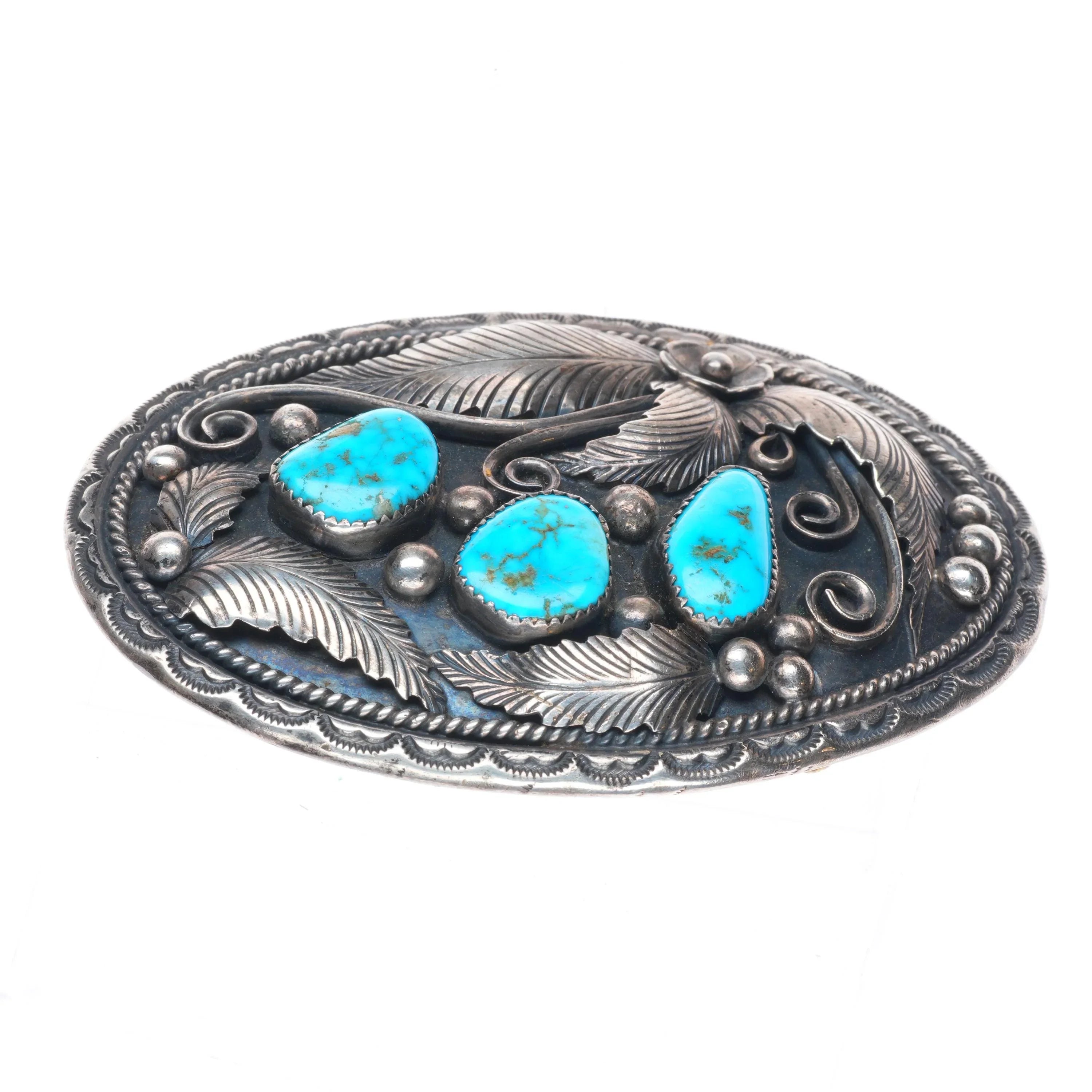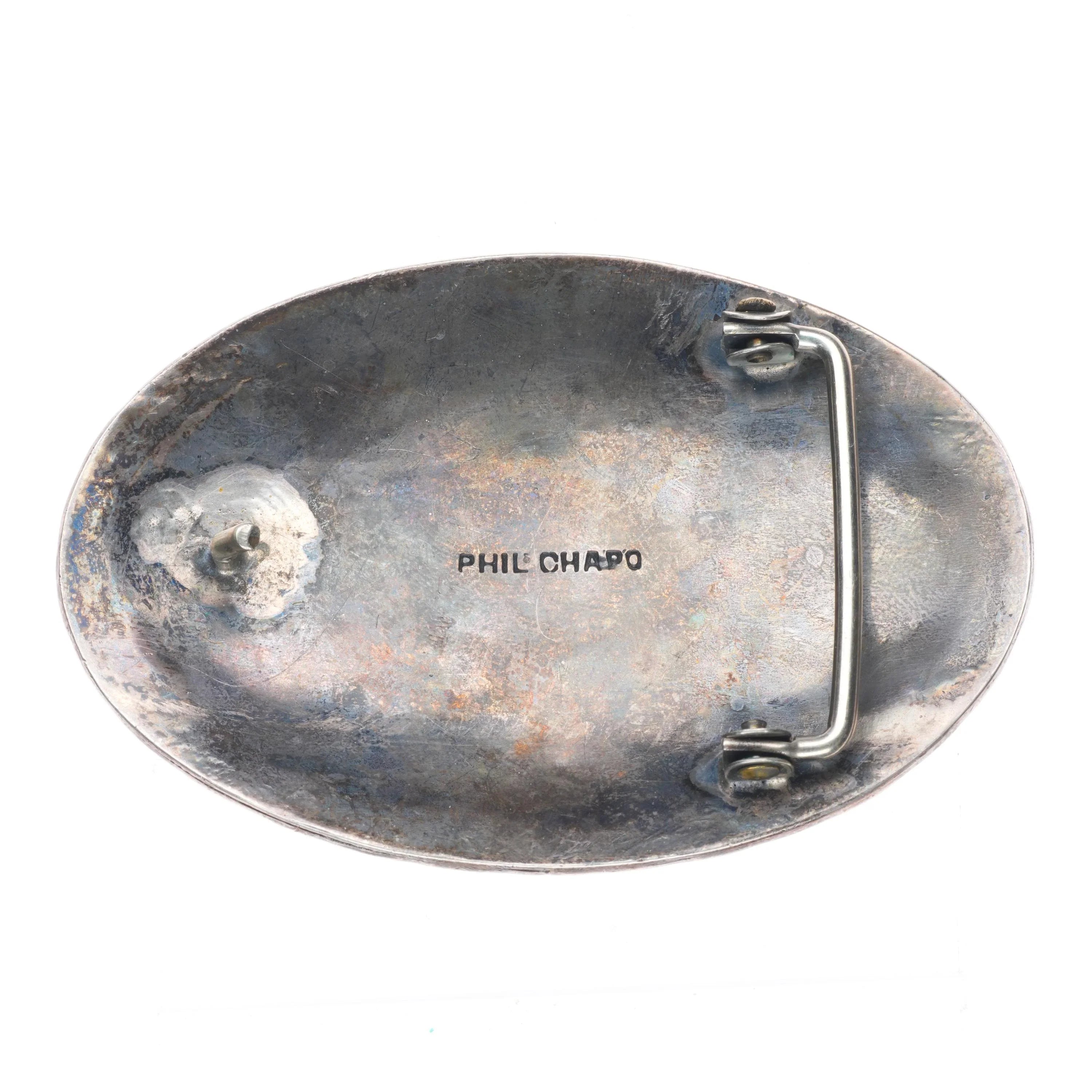 Vintage Phil Chapo Navajo sterling silver 3 stone turquoise belt buckle