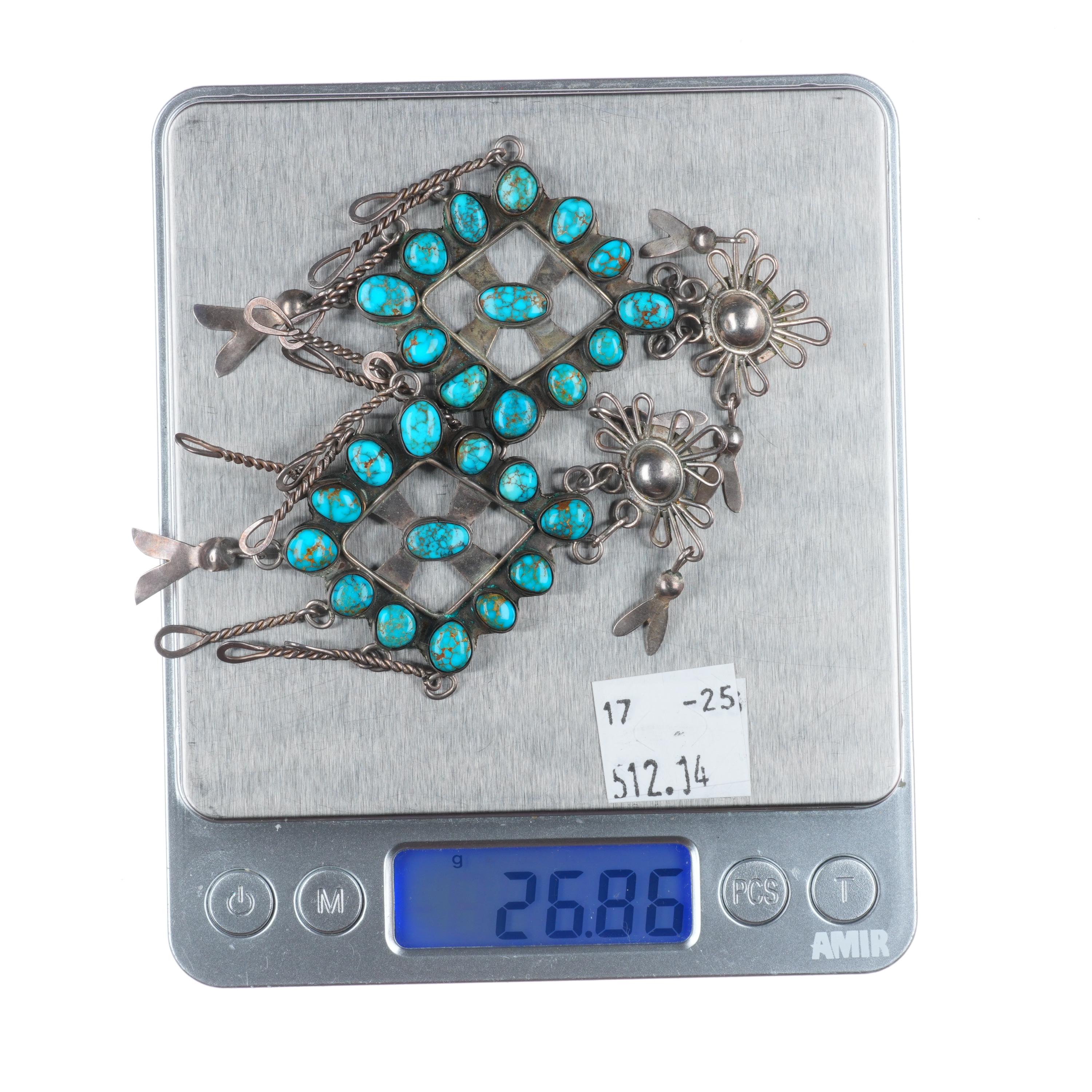 Vintage Puebloan Lone Mountain turquoise sterling silver chandelier earrings. Great earrings with no issues, tested and guaranteed solid sterling silver, any marks detected, weight, and measurements will be shown in the pictures.
