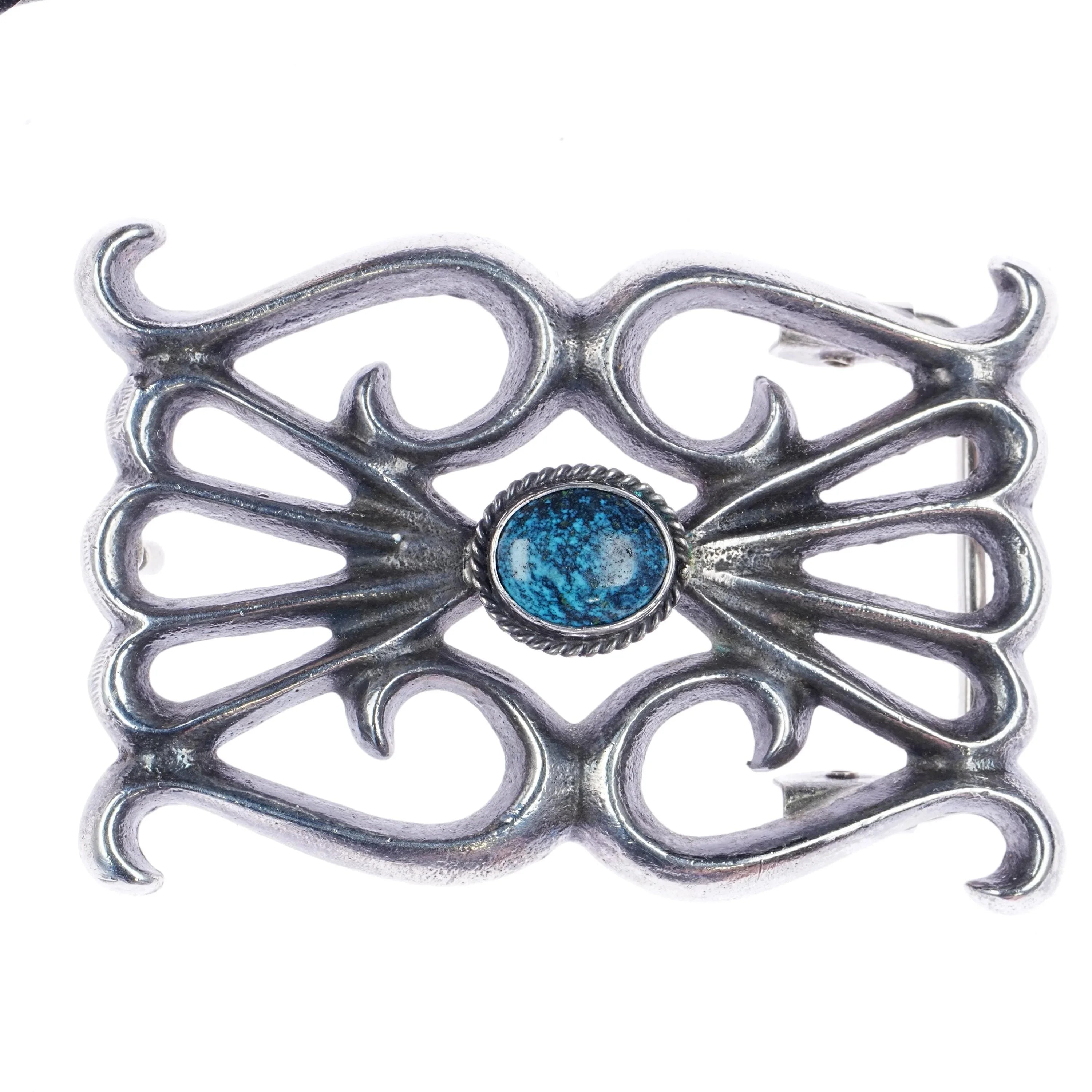 Vintage Rose Chee Navajo Cast silver and turquoise belt buckle