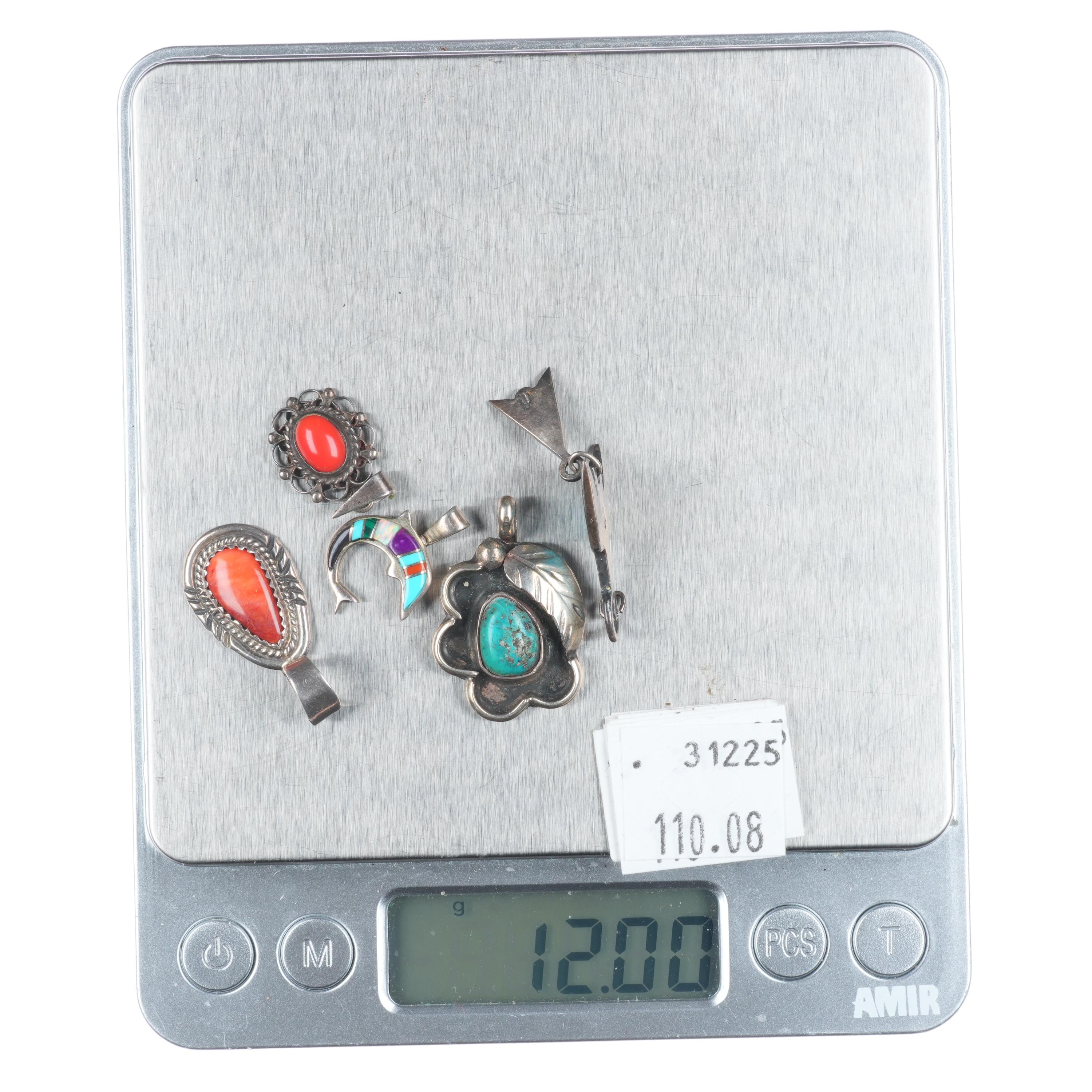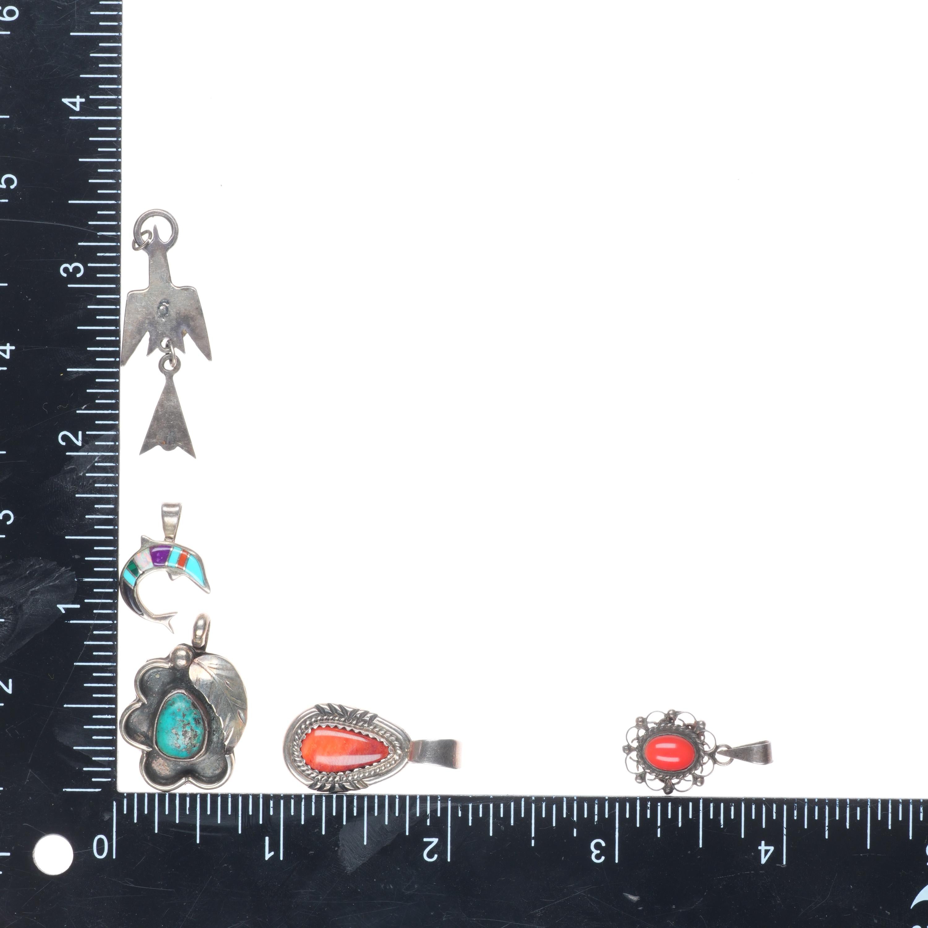 Vintage Southwestern/Navajo sterling silver pendant lot turquoise/spiny oyster