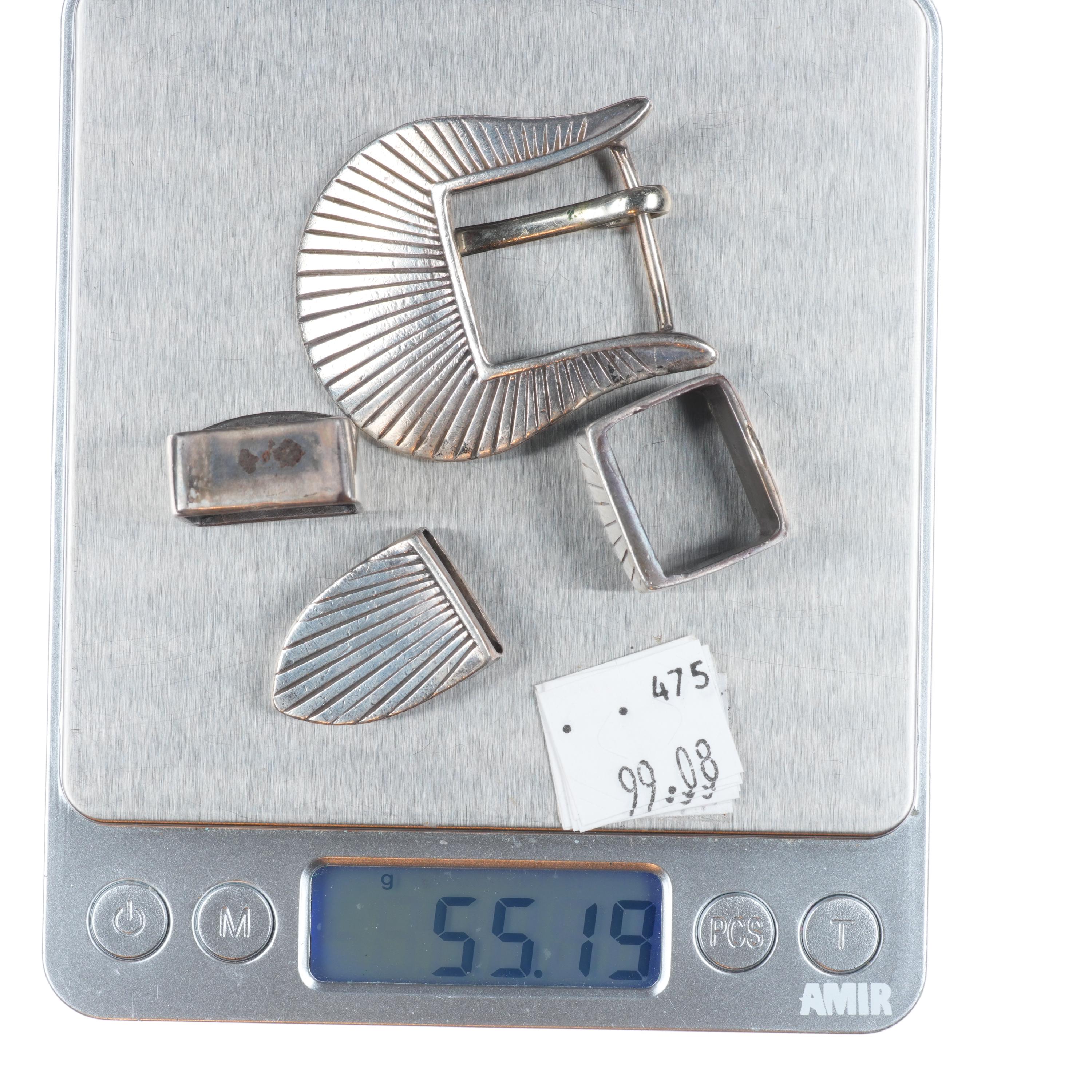 Vintage southwestern sterling silver 3/4" ranger belt buckle set. Solid sterling silver (tested) with weight and measurements in pictures.. Fits a 3/4" belt. No issues, some expected wear. Ranger belts are typically wider and taper down to 3/4" where the buckle and tip go on.