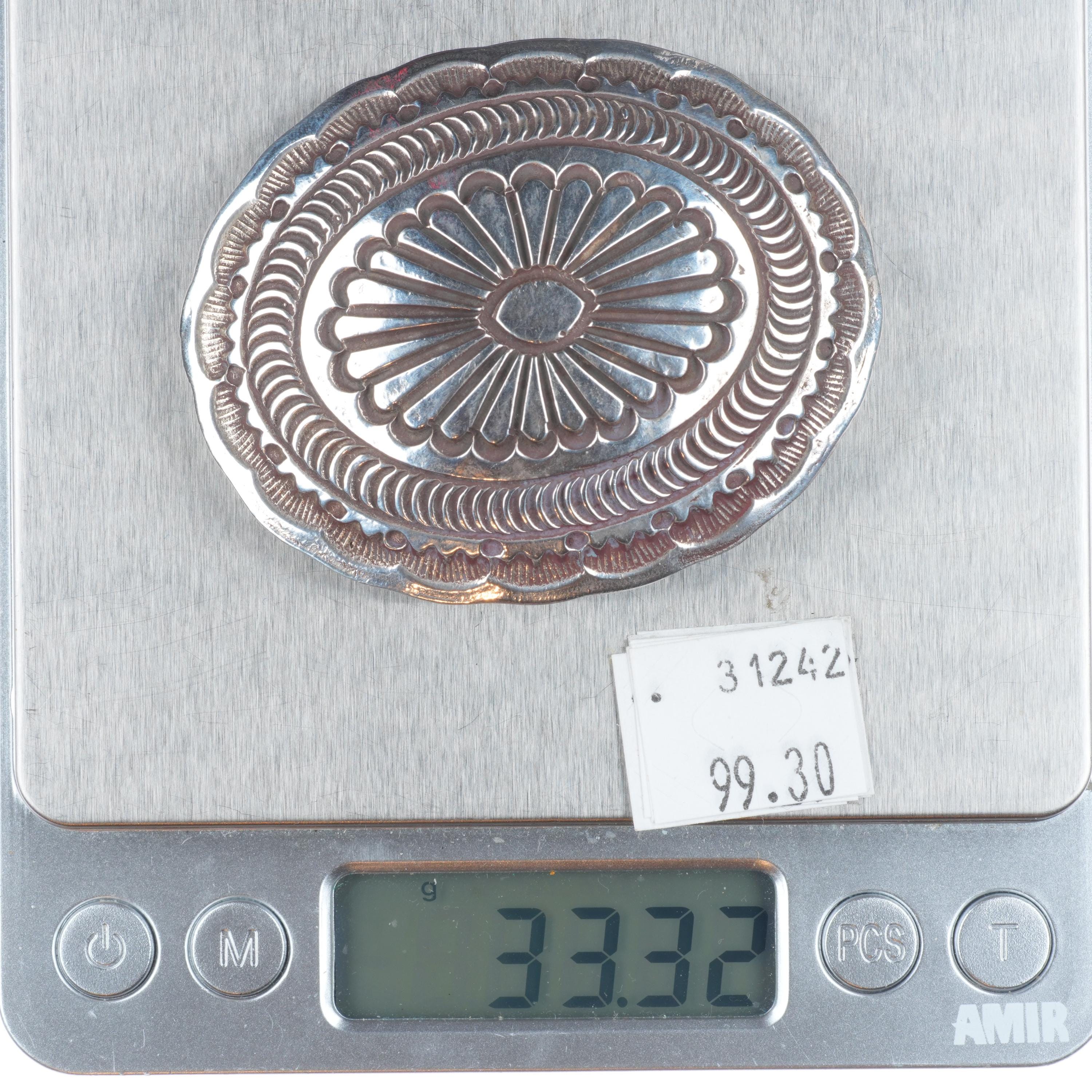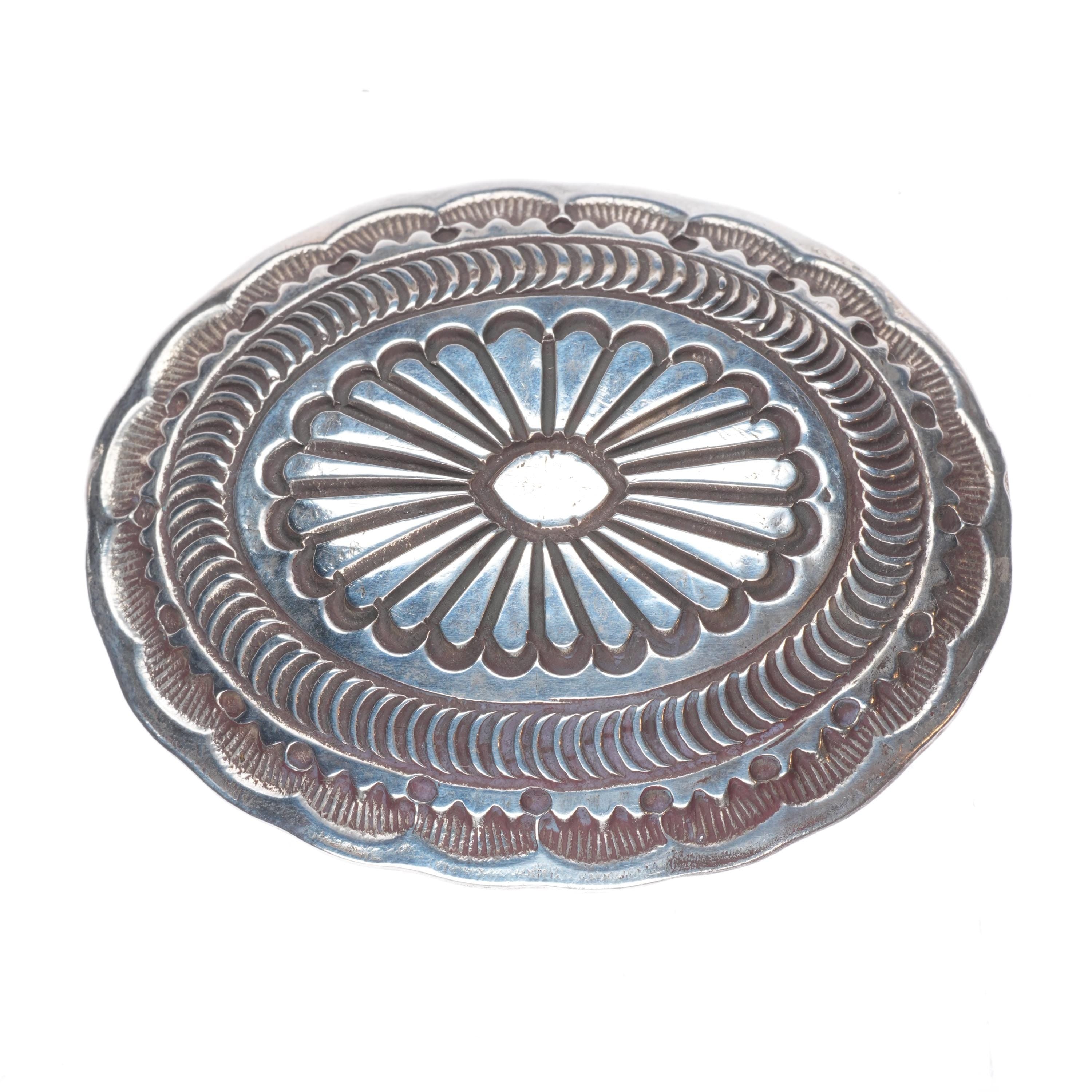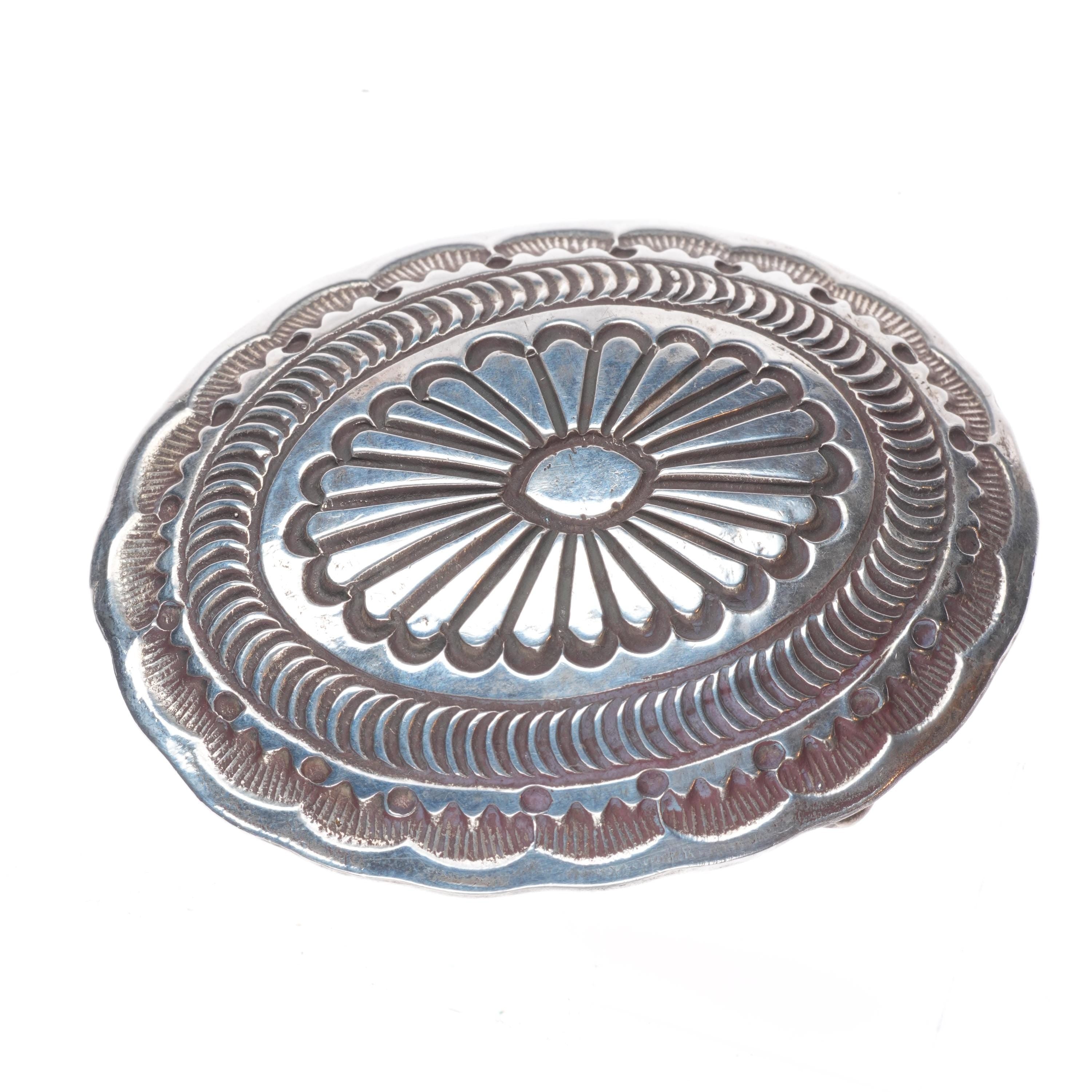 Vintage stamped sterling silver Navajo belt buckle concho style