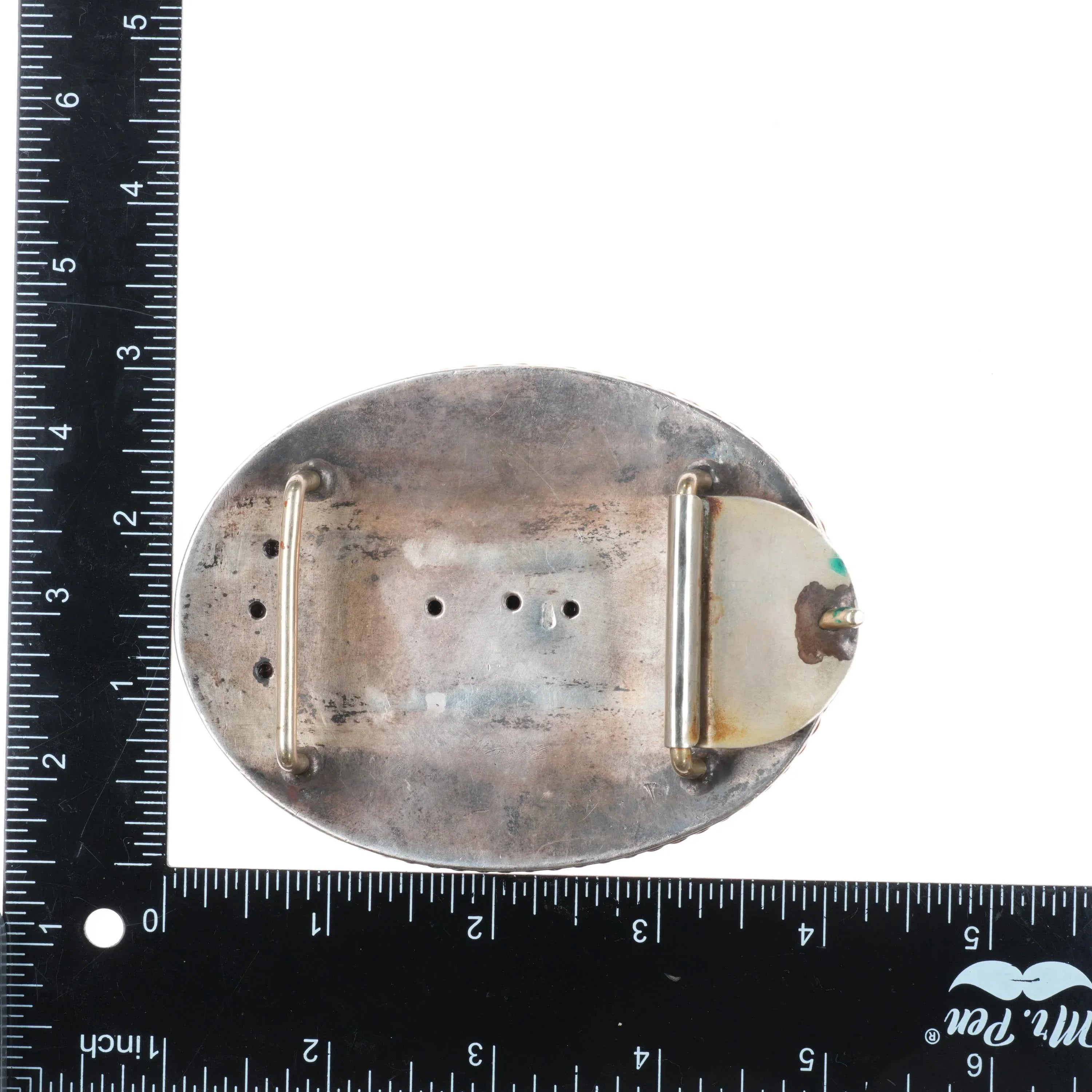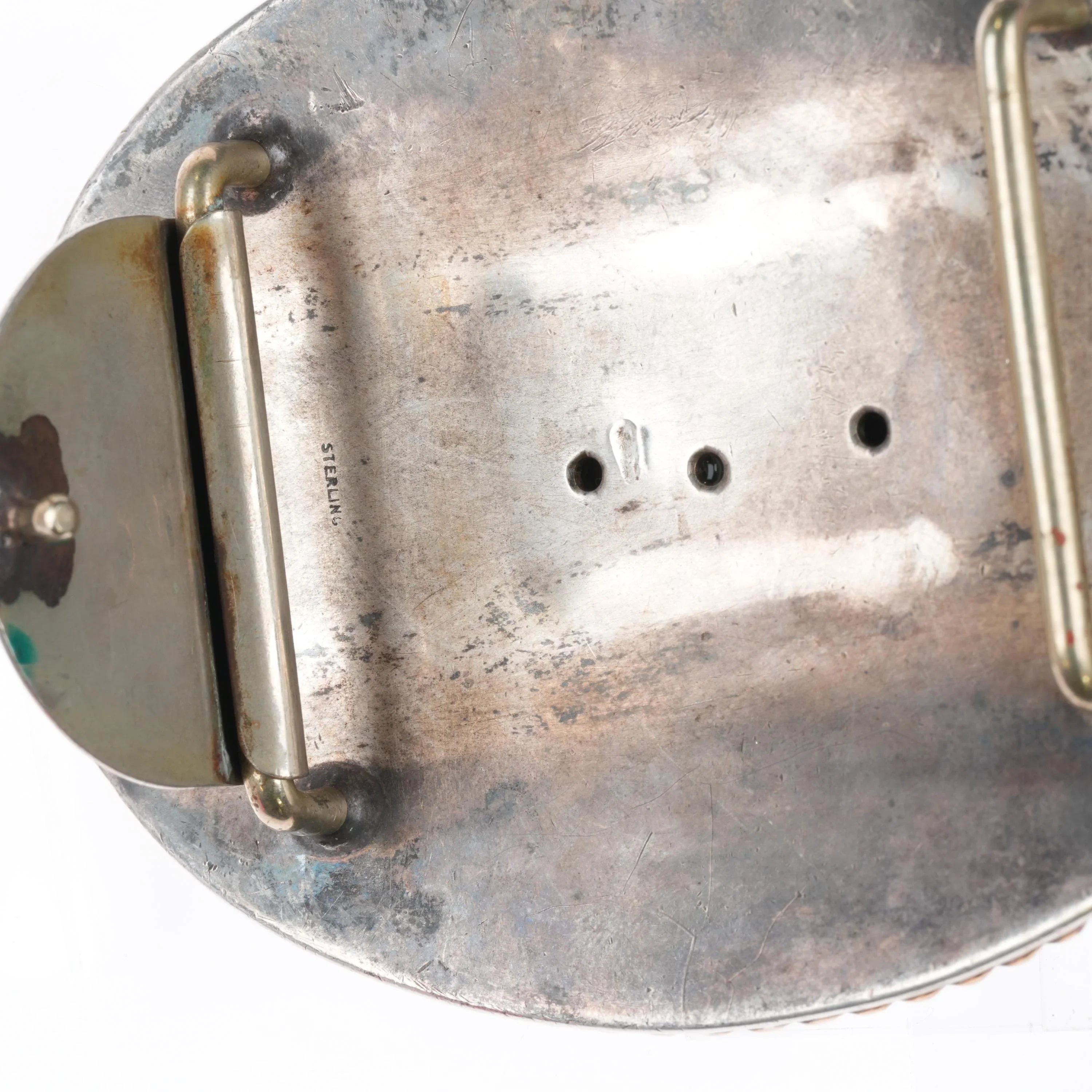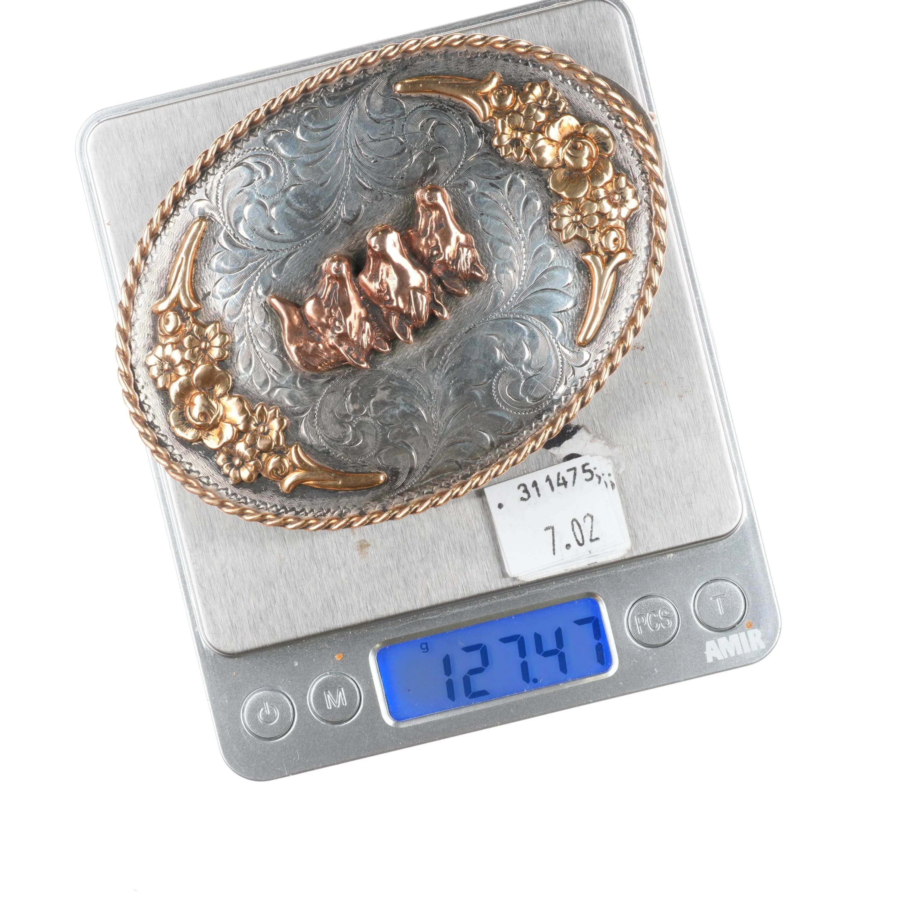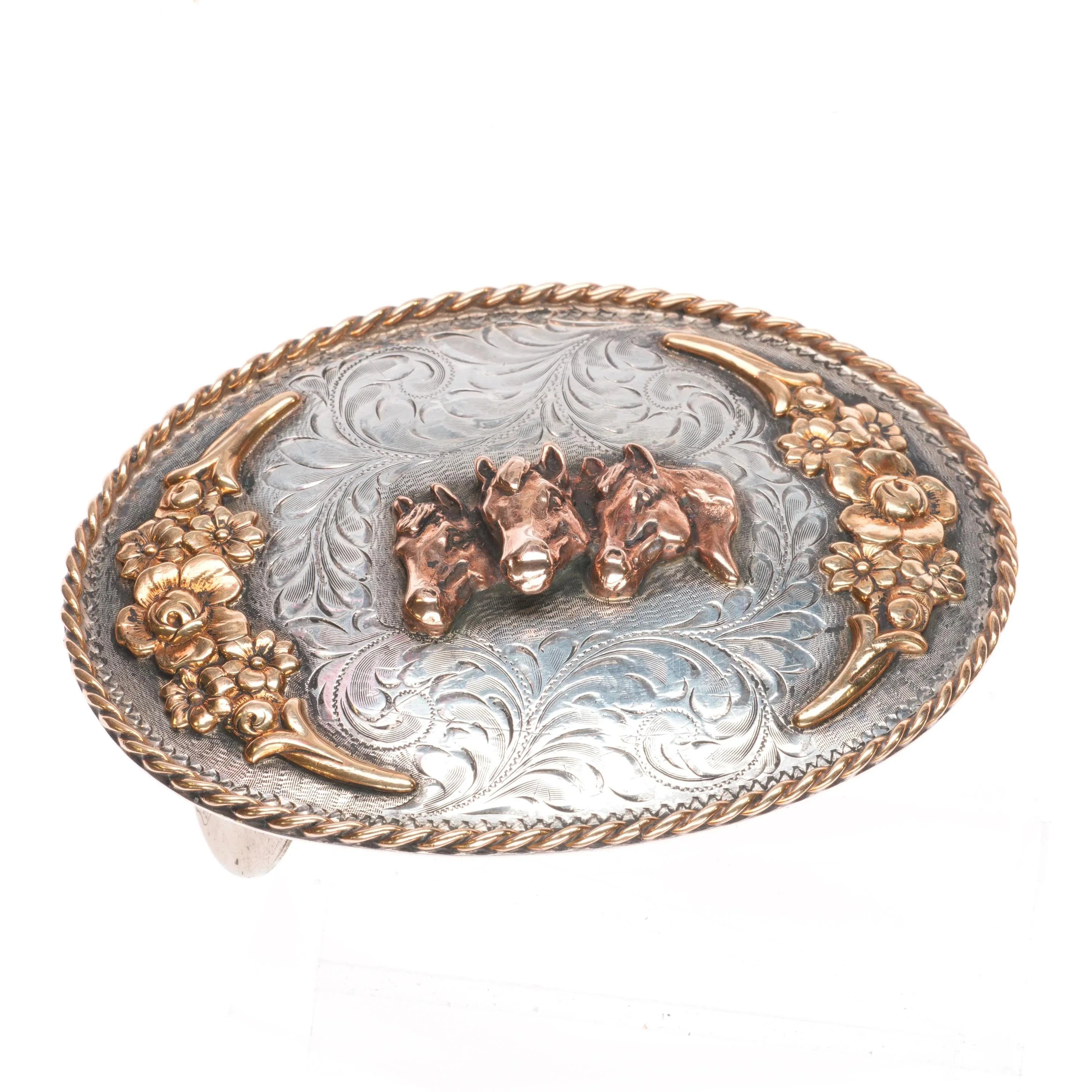 Vintage Sterling silver Diablo Big hand engraved horse heads trophy belt buckle