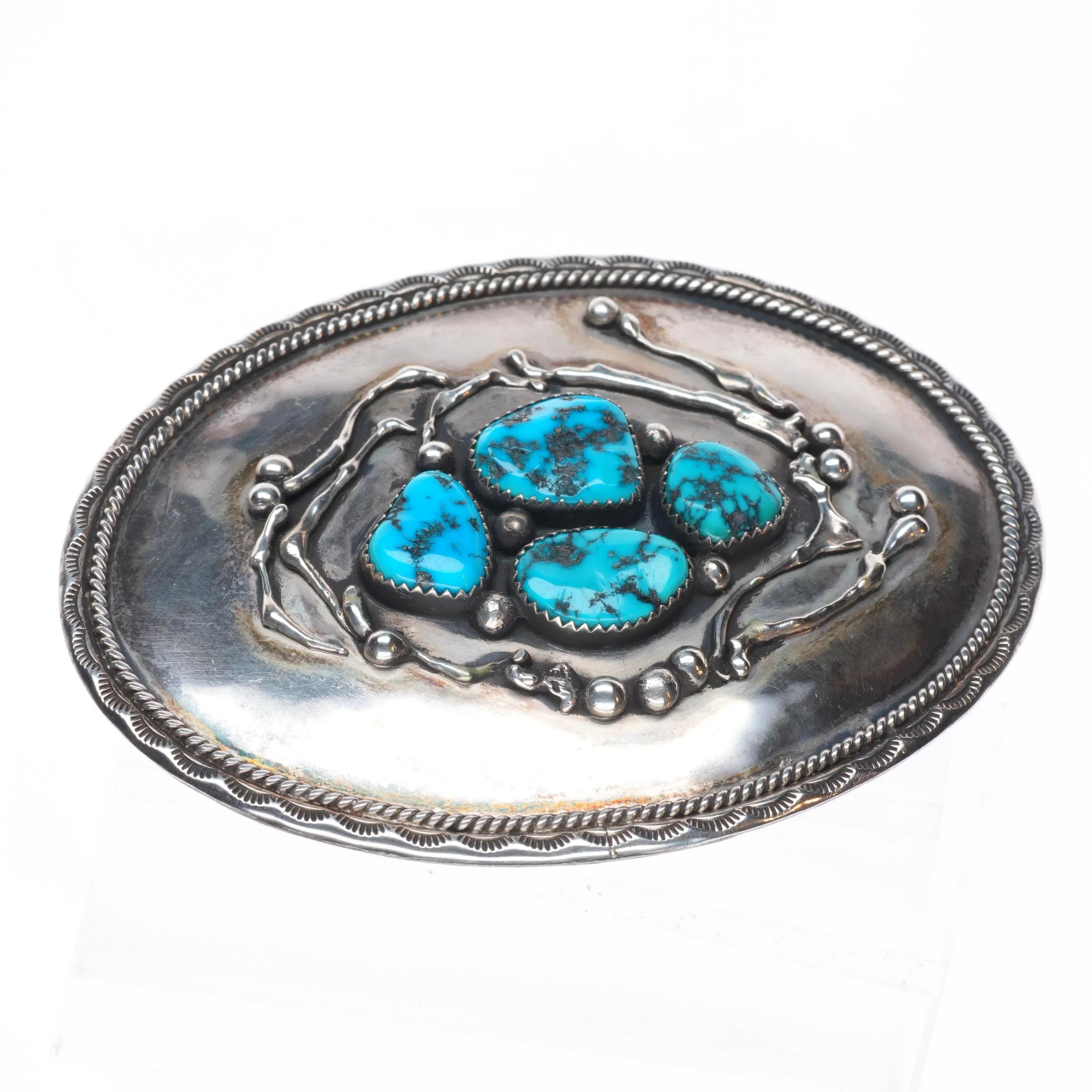 Vintage Ted Guerro Navajo sterling silver turquose cluster belt buckle