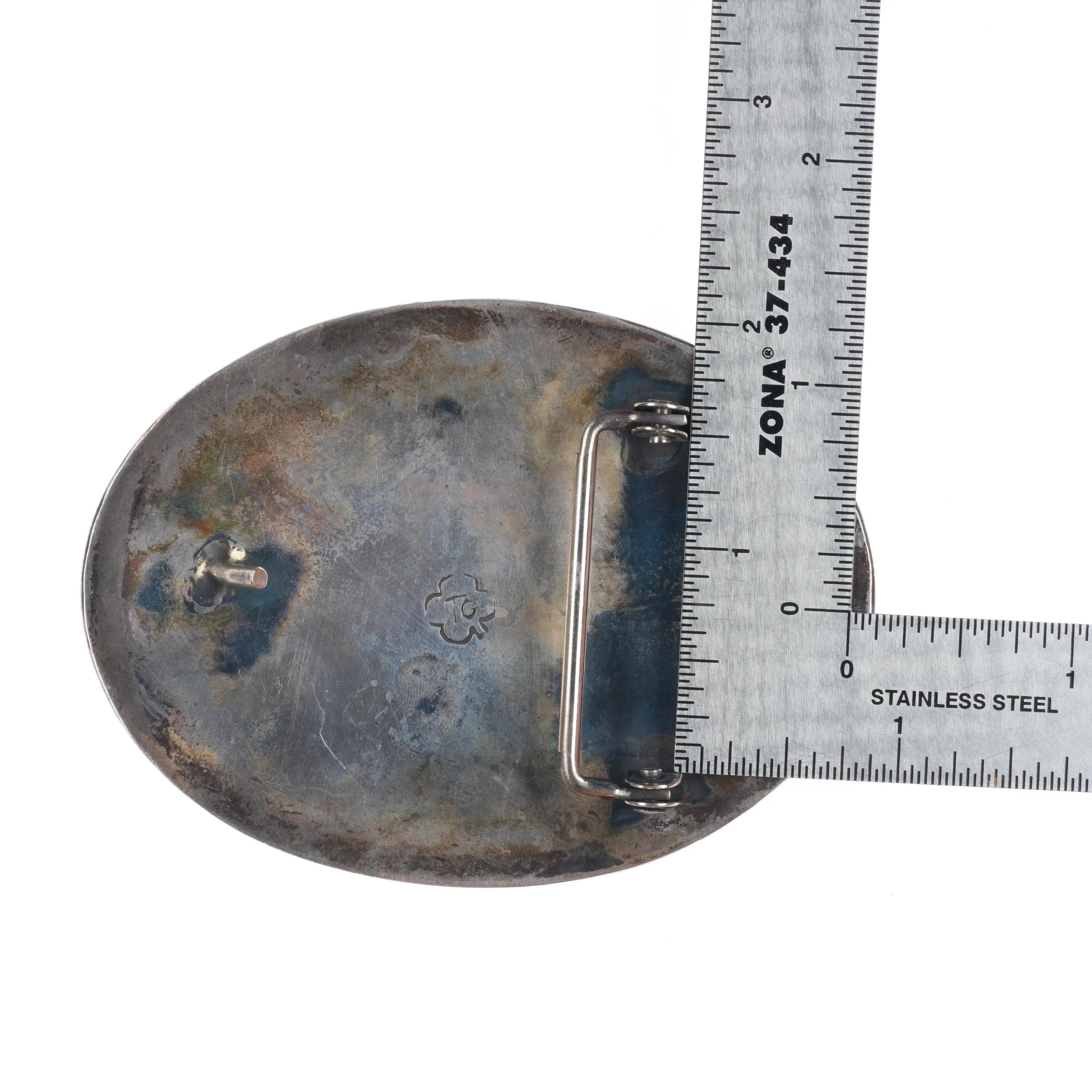Vintage Ted Guerro Navajo sterling silver turquose cluster belt buckle, fits up to a 1.5" wide belt. Tested and guaranteed solid sterling silver. Weight and measurements in pictures, circa last quarter of the 20th century.