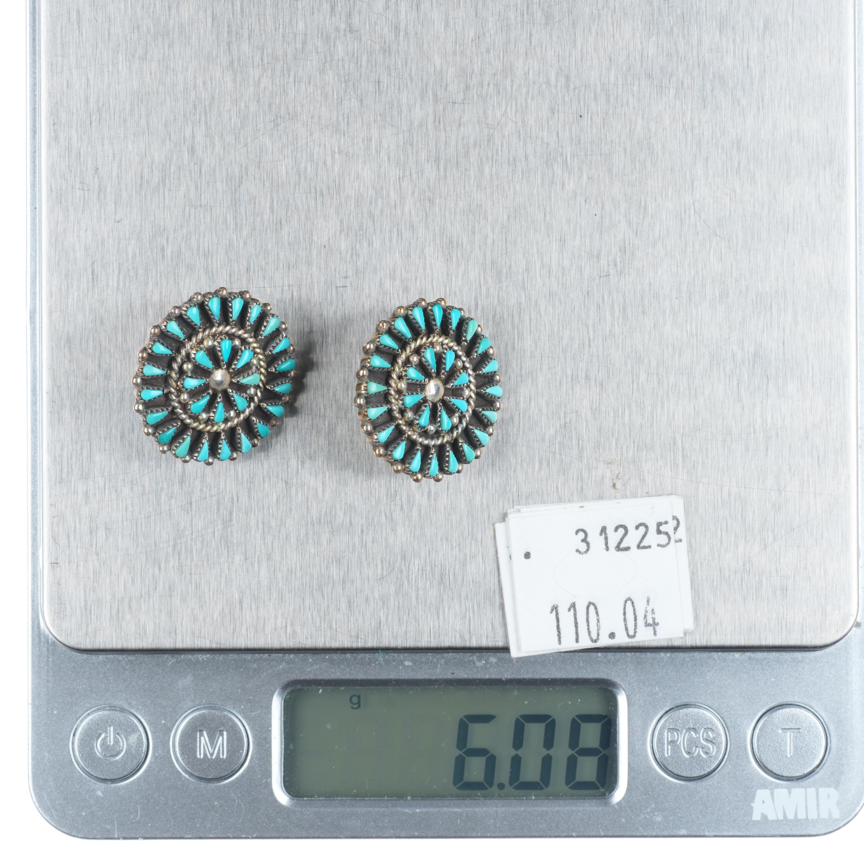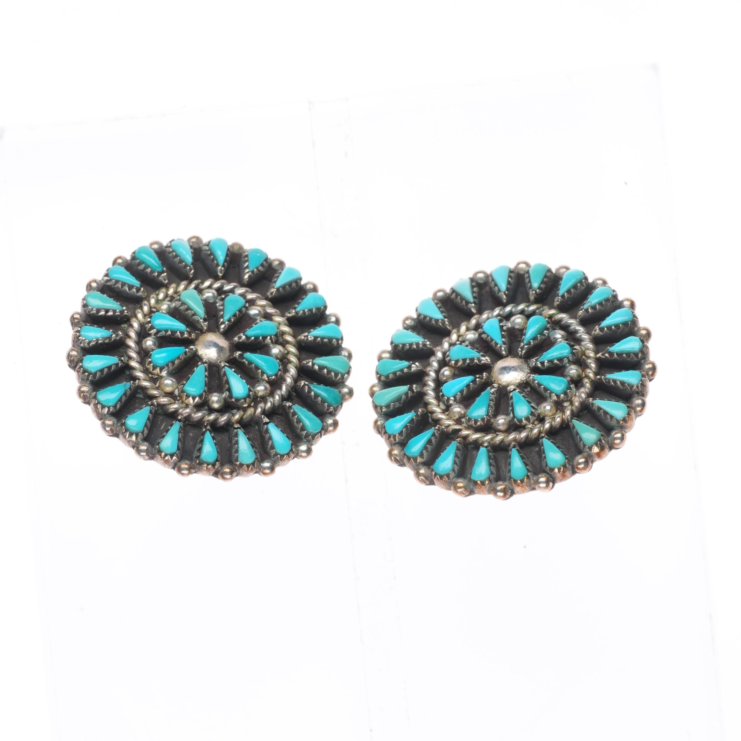 Yatsattie Zuni sterling silver petit point turquoise earrings. Great earrings with no issues, tested and guaranteed solid sterling silver, any marks detected, weight, and measurements will be shown in the pictures. Circa last quarter of the 20th century.