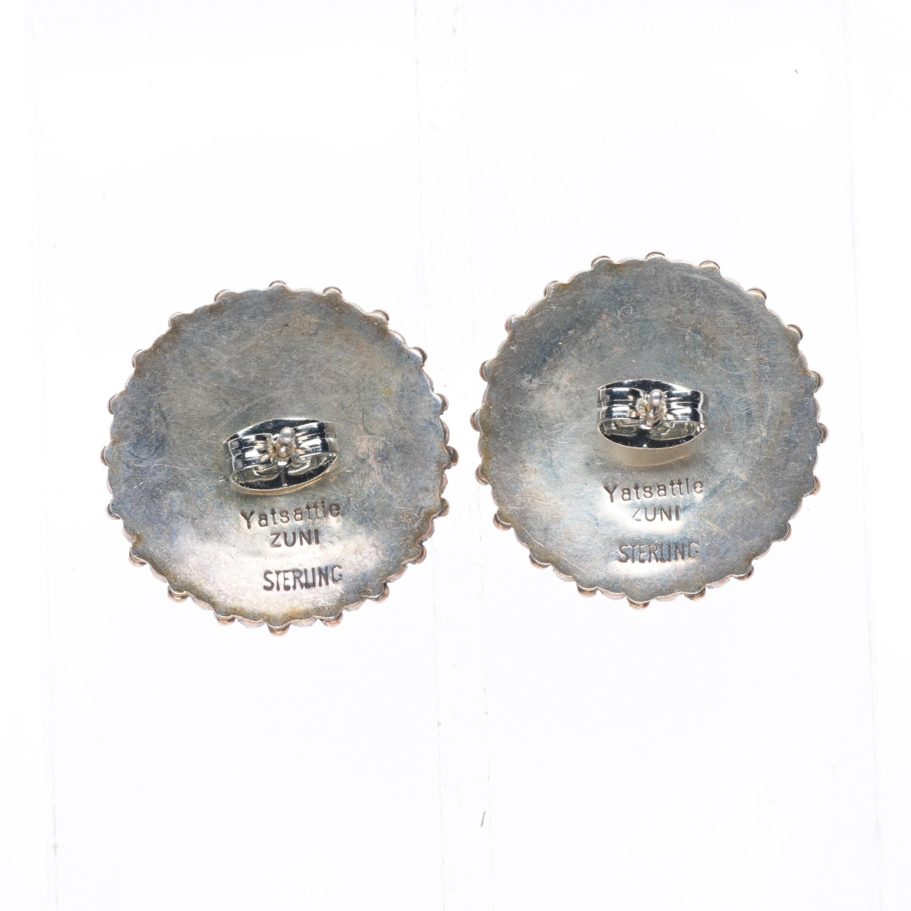 Yatsattie Zuni sterling silver petit point turquoise earrings